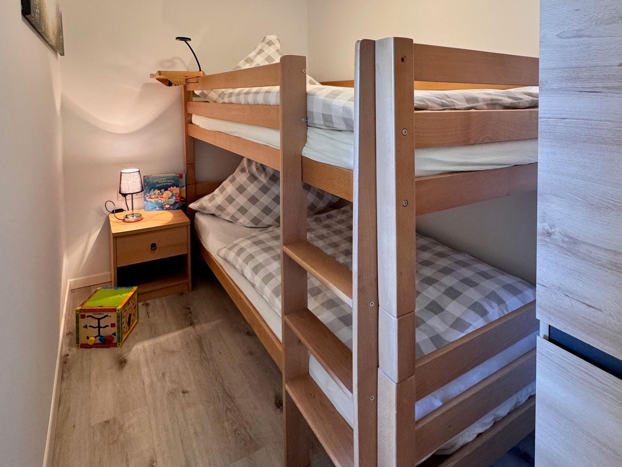Die Ferienwohnung Hase bietet auf 39 Quadratmetern Platz für bis zu 4 Personen. Sie verfügt über ein Schlafzimmer mit einem Doppelbett und einem Etagenbett, welche durch eine Trennwand mit seitlichem Durchgang voneinander abgegrenzt sind. Der offene Wohnbereich verfügt zudem über TV, DAB-Radio mit Bluetooth und einen Kamin. Die Einbauküche ist mit Kühlschrank, Tiefkühlfach, Geschirrspülmaschine, Dunstabzugshaube, 2-Felder-Ceranfeld, Mikrowellenbackofenkombination, Dunstabzugshaube, Kaffeemaschine, Toaster, Wasserkocher, Eierkocher, Brotschneidemaschine voll ausgestattet. Das Tageslichtbad verfügt über Dusche, WC, Waschbecken und einen Handtuchheizkörper. Die gesamte Wohnung wird zentral über eine Fußbodenheizung beheizt. Die Bettwäsche und Handtücher sind inklusive. WLAN und Parkplatz sind kostenfrei vorhanden. Es gibt auch eine kostenfreie Abstellmöglichkeit für Ski, Fahrräder & Co. Es handelt sich um eine Nichtraucherwohnung.