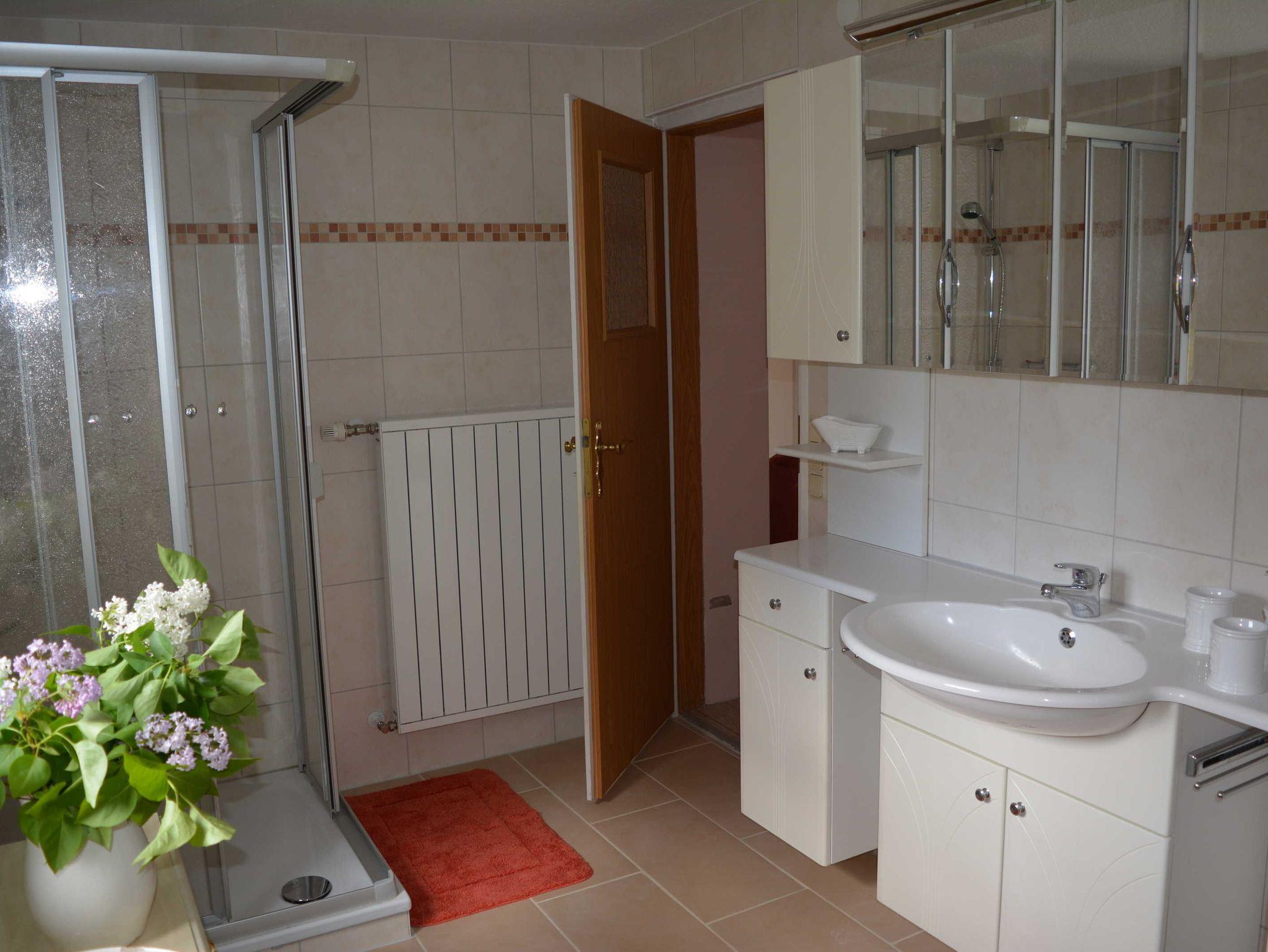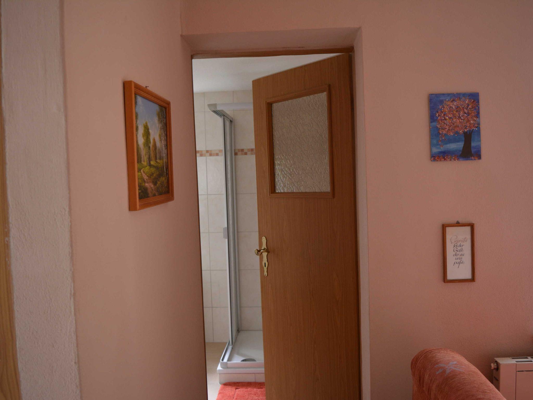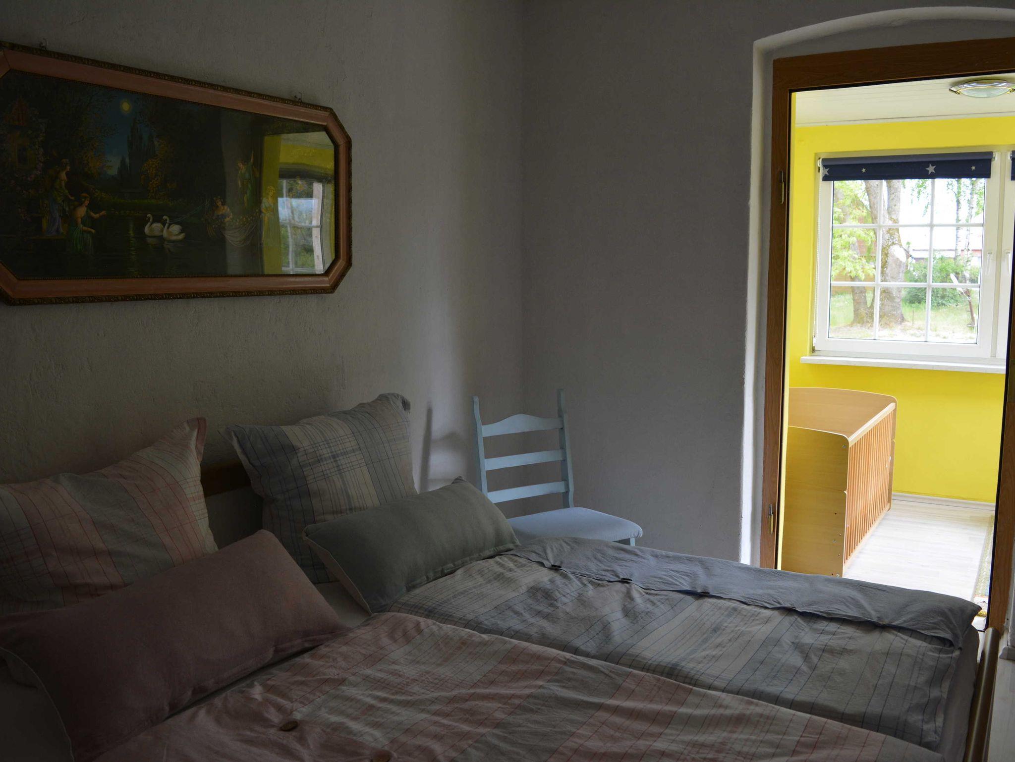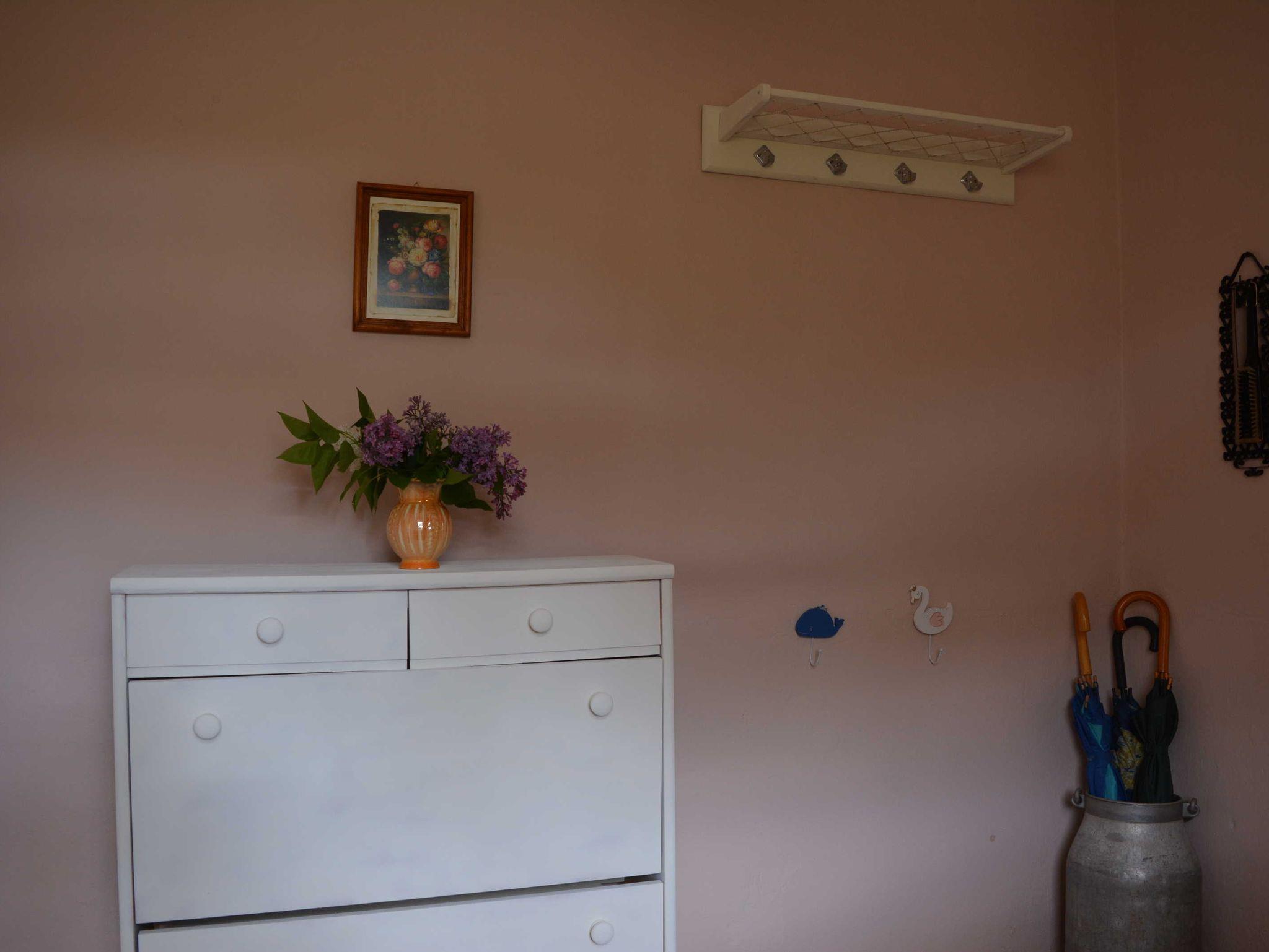 Ferienhaus in ruhiger Ortslage Wohnfläche 73 m² für 1-4 Personen; Büroarbeitsplatz und Kinderspielecke; Wohnküche (Ceranfeld, Backofen, Geschirrspüler, Mikrowelle, Kaffeemaschine, Kaffeevollautomat, Toaster, Kühl-Gefrierkombination, große Couch, Esstisch, WLAN, Satelliten-TV); ein Schlafzimmer mit Doppelbett, anliegend Büroarbeitsplatz; ein weiteres Schlafzimmer für 2 Personen mit 2 Einzelbetten, Kleiderschrank, Bügelbrett und Bügeleisen; Garderobe mit Ottomane; Badezimmer mit WC, Waschmaschine, Waschbecken, Duschkabine und Haartrockner; Baby-Essstuhl; Terrasse mit Sonnenschirm, gemütlichen Gartenmöbeln und Holzkohlegrill; 2 PKW Stellplätze; Zentralheizung