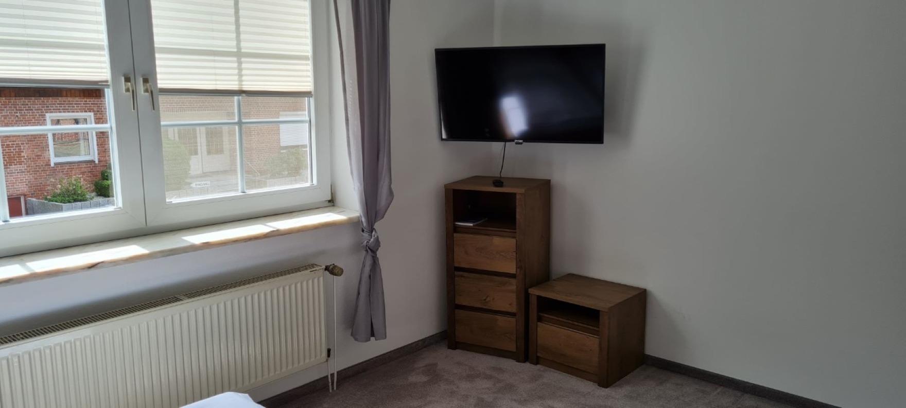 Die Wohnung befindet sich in dem gegenüberliegendem Gebäude vom Hotel im 1. Stock. Es erwartet Sie ein großzügiges Wohnzimmer mit Flachbild-TV und Sitzecke. Highlight ist die Dachterrasse, die mit Tisch, Stühlen und Sonnenschirm ausgestattet ist. Die Wohnung ist ausgestattet mit einem Gäste-WC , einem Badezimmer mit Badewanne und zwei Waschbecken, ein Schlafzimmer mit Schrank und Doppelbett sowie ein weiteres Schlafzimmer mit Einbauschränken und einem breitem Einzelbett (1,40m) und eine voll ausgestattete Küche. Beide Schlafzimmer sind ebenfalls mit einem Flachbild-TV ausgestattet. Rauchen ist nur auf der Dachterrasse erlaubt und W-LAN ist in der gesamten Wohnung kostenfrei verfügbar. Flur und Abstellraum sowie eigener EIngang sind ebenfalls vorhanden. Sie können das Frühstücksbuffet im Hotel zum Preis von 7,50 EUR pro Person/Tag oder einen Brötchenservice in Anspruch nehmen. Das Restaurant "Amme's Landhaus" mit idyllischem Speisegarten ist Mittwochs bis einschl. Freitags ab 16.00 Uhr geöffnet und Samstag/Sonntag mittags und abends ab 17.30 Uhr geöffnet (Montag/Dienstag Ruhetage). Hier erwartet Sie frische, deutsche Qualitätsküche mit saisonalen Spezialitäten.