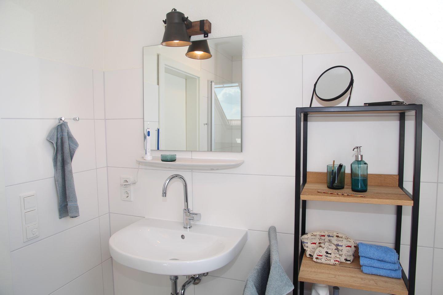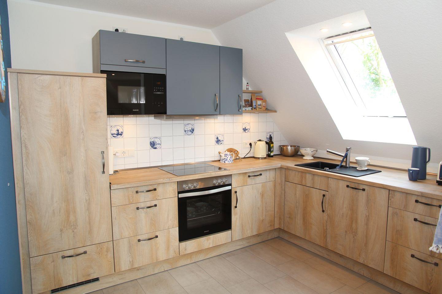 Diese schöne ca. 80qm große Wohnung liegt in Eilsum (5km bis Greetsiel) direkt am Kanal und überzeugt mit einem wunderschönen Blick über Wasser und Wiesen. Im Obergeschoss finden Sie den großzügigen Wohnbereich mit Essbereich, Kaminofen, Sofa, Sessel und TV, sowie dem Durchgang direkt auf den möblierten Balkon mit traumhaftem Wasserblick. Für den Balkon ist auch ein Elektrogrill vorhanden. Direkt angrenzend befindet sich die voll ausgestattete große Küche, die u.a. Cerankochfeld, Kühlschrank mit Gefrierfach, Mikrowelle, Spülmaschine, Filterkaffeemaschine, Wasserkocher, Toaster und einen Handmixer zu bieten hat. Auf gleicher Etage befindet sich auch ein Schlafzimmer mit Doppelbett (einzelne Matratzen), Kleiderschrank und Kommode, sowie das schöne Badezimmer mit bodentiefer Dusche, großem Dachflächenfenster, Waschmaschine, WC, Waschbecken und Fön. Im Abstellraum sind Staubsauger, Wäscheständer und weitere Reinigungsutensilien vorhanden.