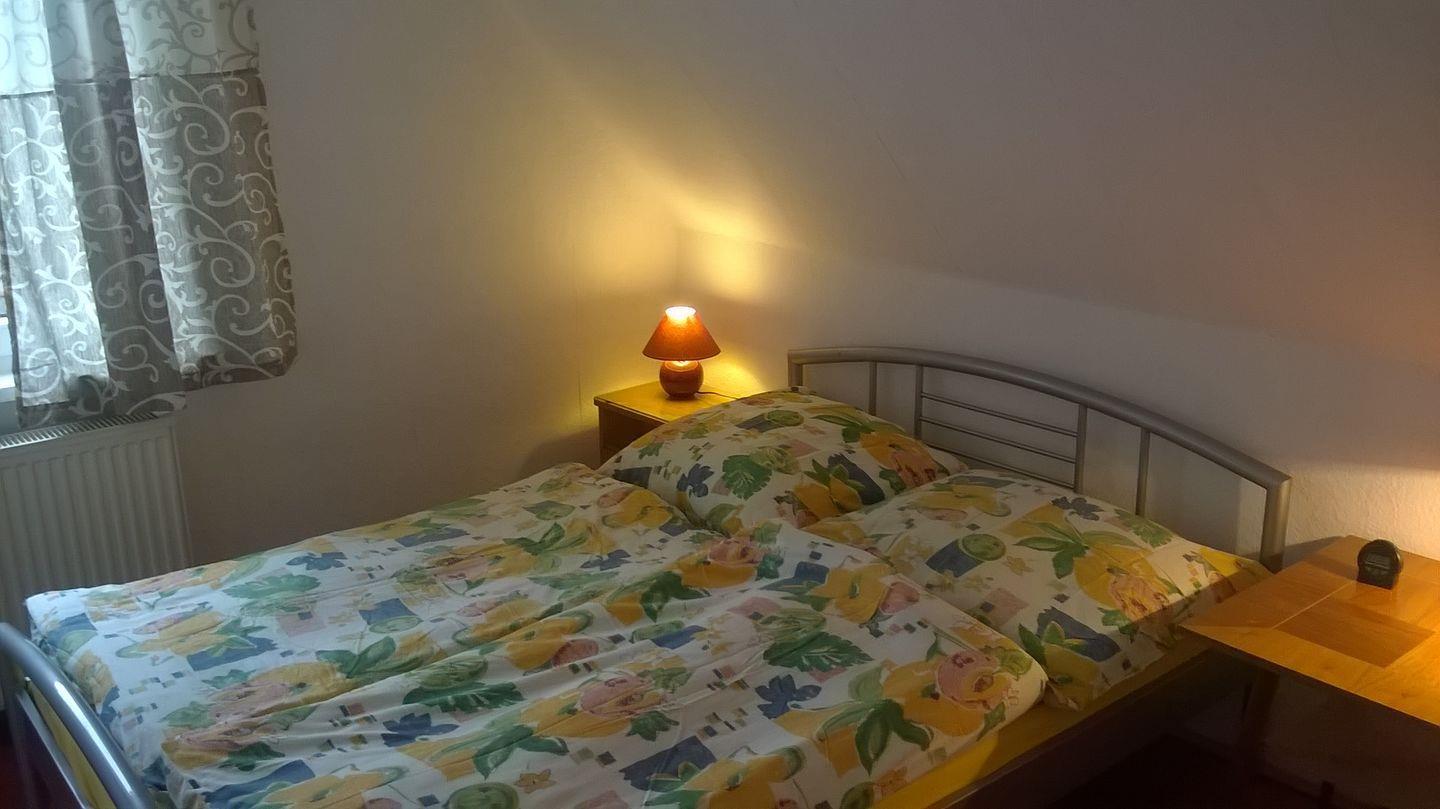 In der oberen Etage ist ein „Elternschlafzimmer“ (1 Bett mit 1,40 m Breite und ein normales Bett). Ein weiteres Schlafzimmer ist vorrangig als Kinderzimmer mit Fernseher eingerichtet (1 Doppelstockbett für Kinder, 2 normale Betten, die nicht nur von Kindern benutzt werden können). Ausgehend vom „Elternschlafzimmer“ befindet sich eine Stube mit Ecksofa und Fernseher. Im Flur der oberen Etage ist noch eine kleine Teeküche mit Spüle, Wasserkocher, Induktionsplatte, kleinem Kühlschrank und Schränkchen mit Geschirr und Gläsern untergebracht. Dadurch kann die oben wohnende Familie auch mal separat ohne die unteren Gäste zu stören sich versorgen.