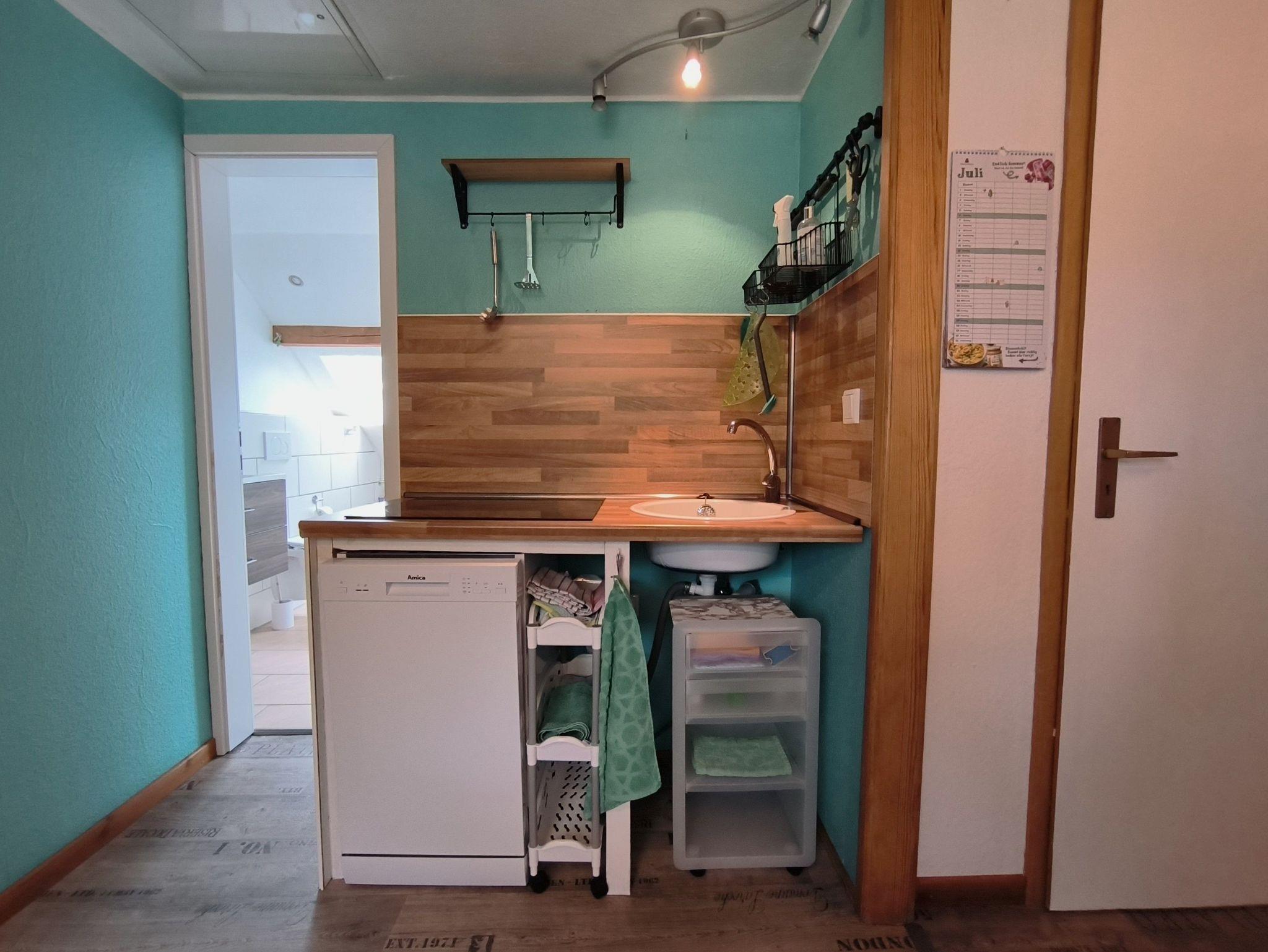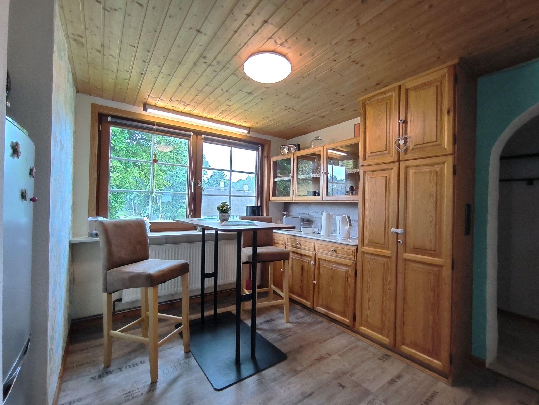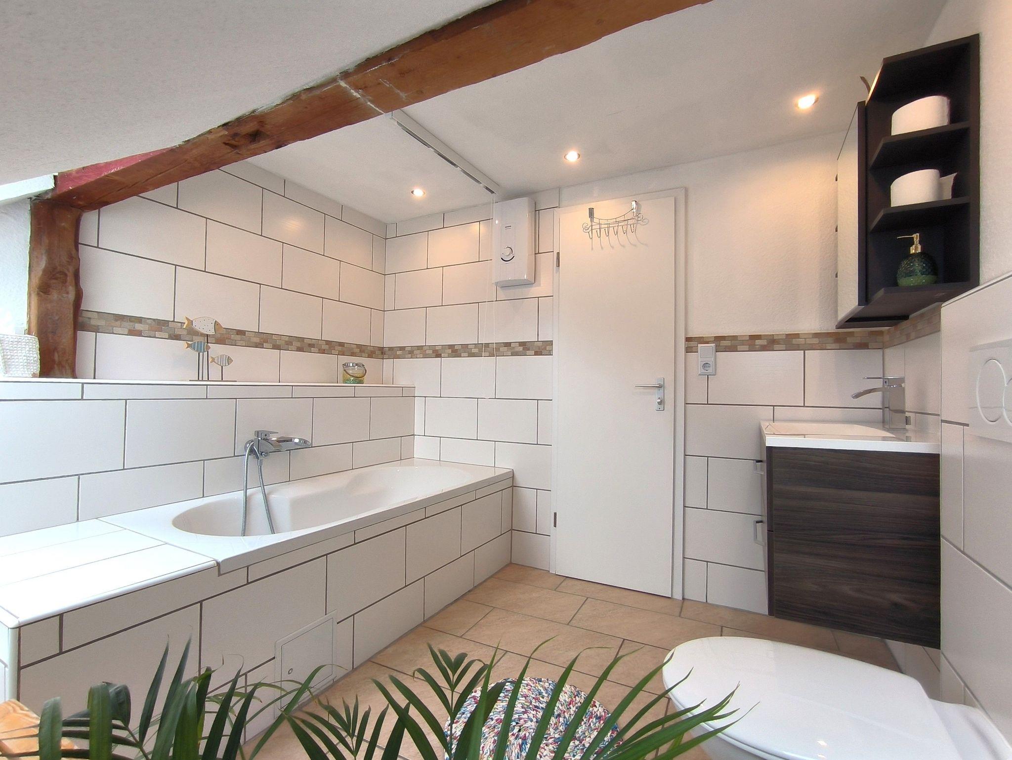 In der Ferienwohnung Hinz können Sie sich rundum wohlfühlen: im Wohnzimmer laden das Sofa, der Esstisch und weitere Sitzgelegenheiten zum Entspannen ein, die Küche ist mit Geschirrspüler, Kühl-Gefrierkombination und einem Mikrowelle/Backofenkombi-Gerät ausgestattet. Das moderne Badezimmer hat Tageslicht und eine Badewanne.