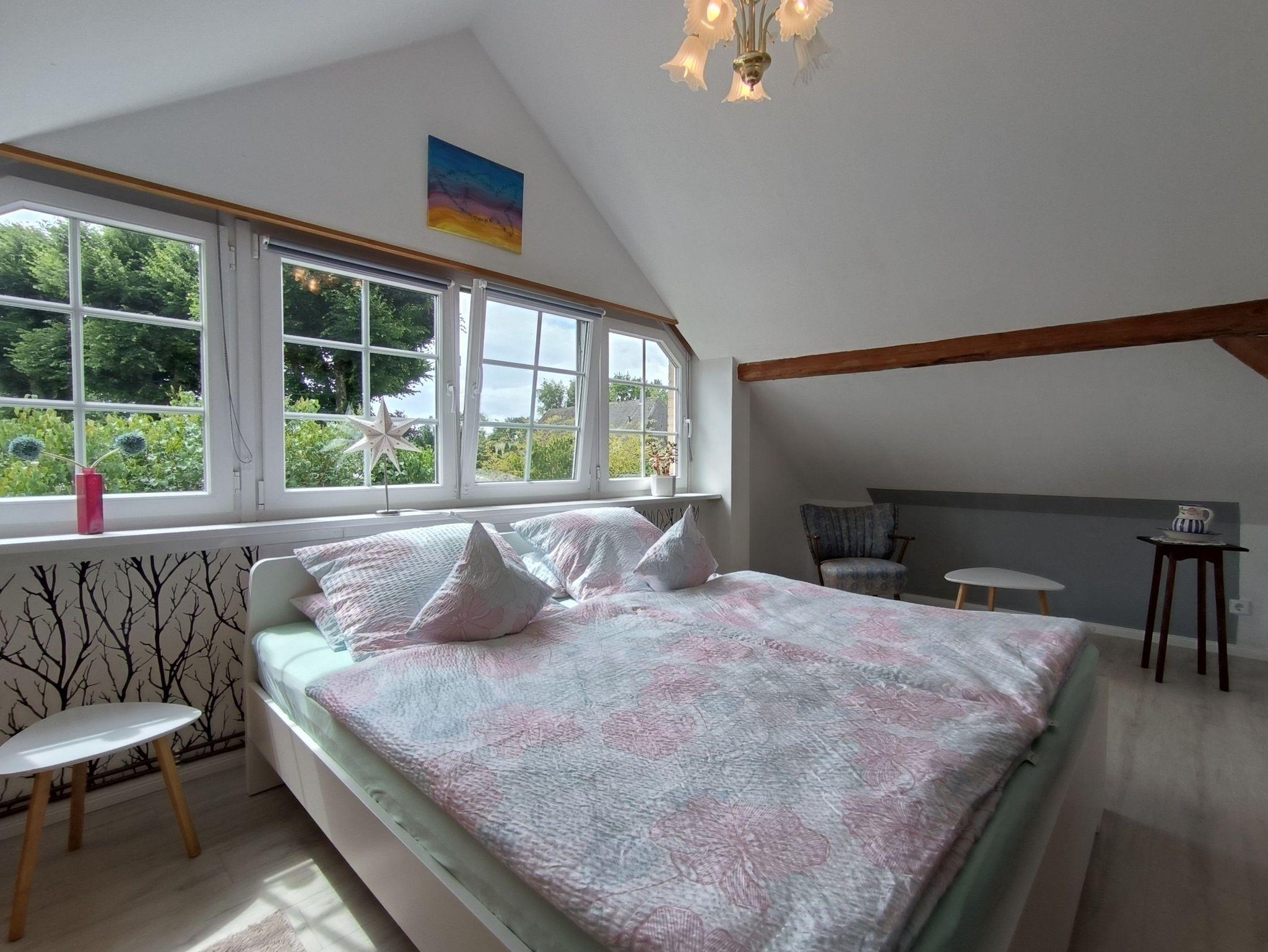 Die gemütliche Ferienwohnung auf 80 qm Fläche befindet sich im Obergeschoss eines Doppelhauses im Dörfchen Ellingstedt, inmitten des Grünen Binnenlandes von Schleswig-Holstein. Die Wohnung besteht aus einem großen und gemütlichen Wohnzimmer mit Sofa, TV und Esstisch, einem Schlafzimmer mit Doppelbett und Schrank, einer offenen Küche mit Frühstücksbar und einem modernen Badezimmer mit Badewanne.