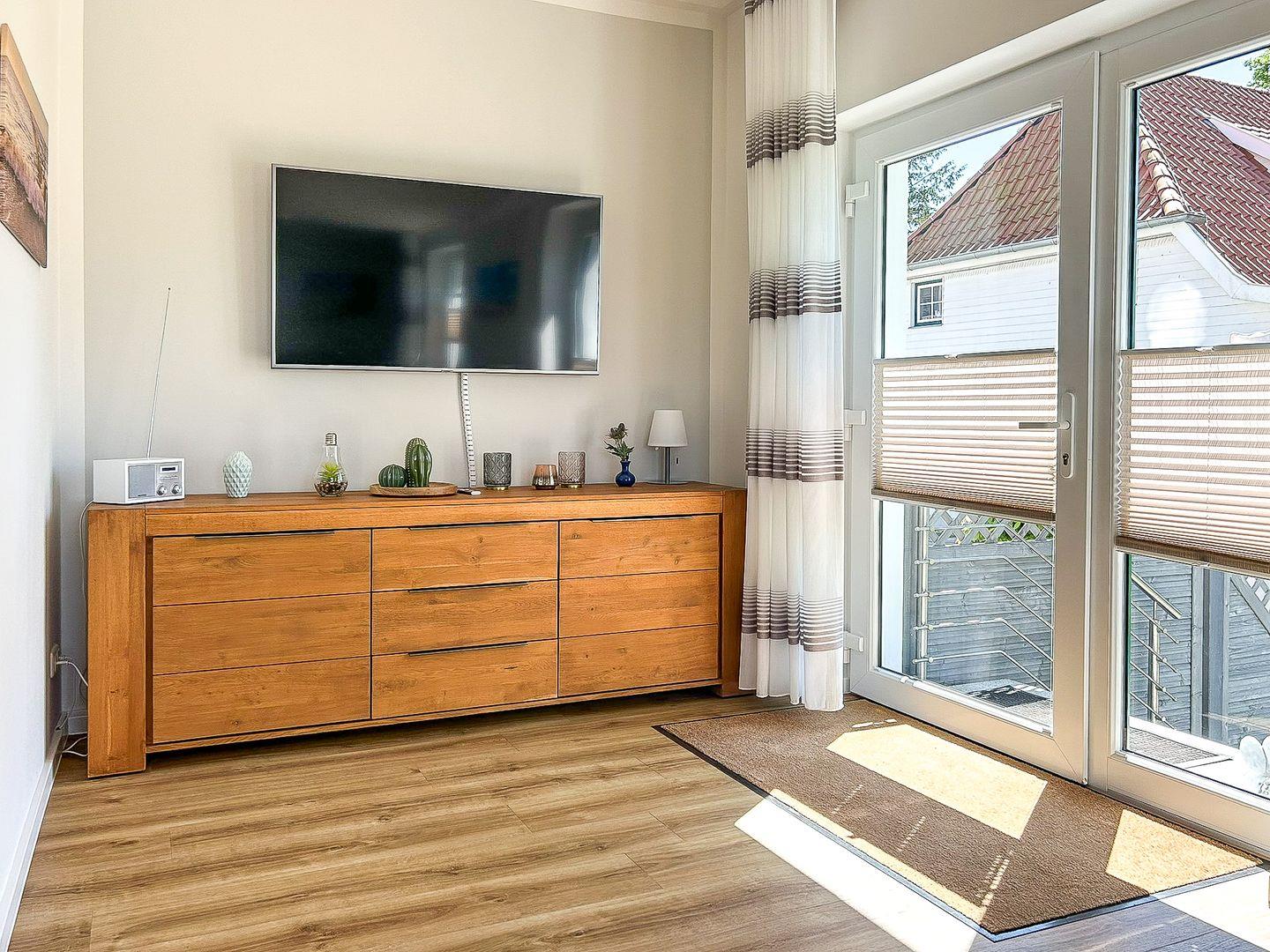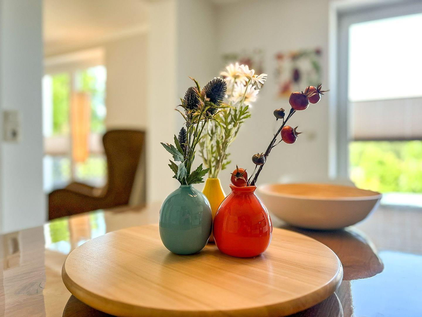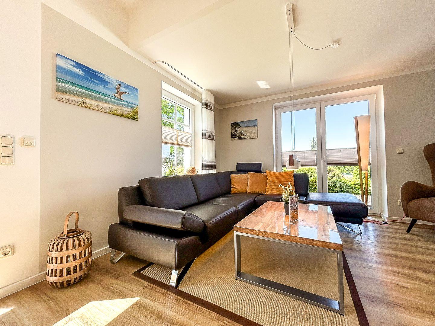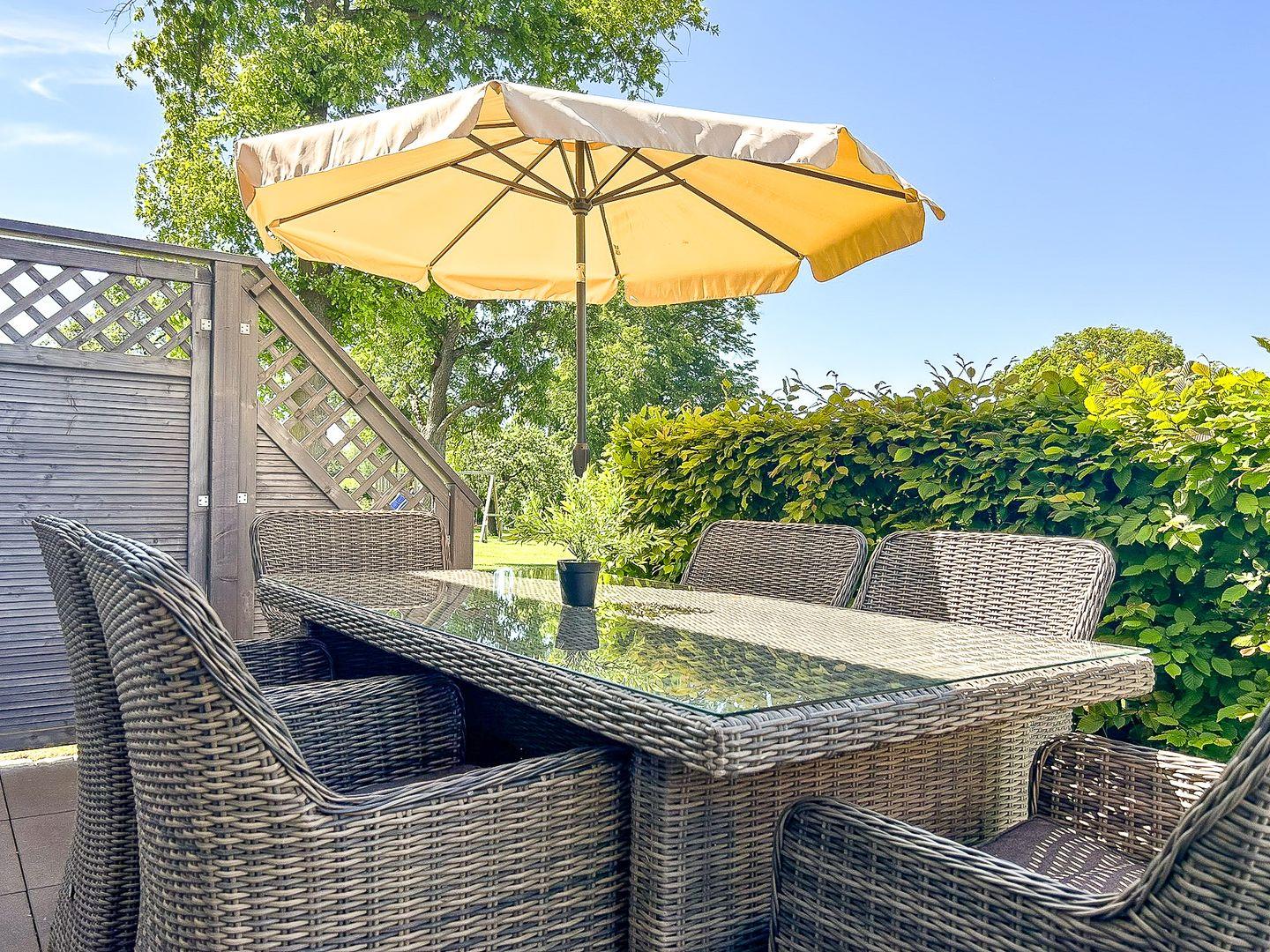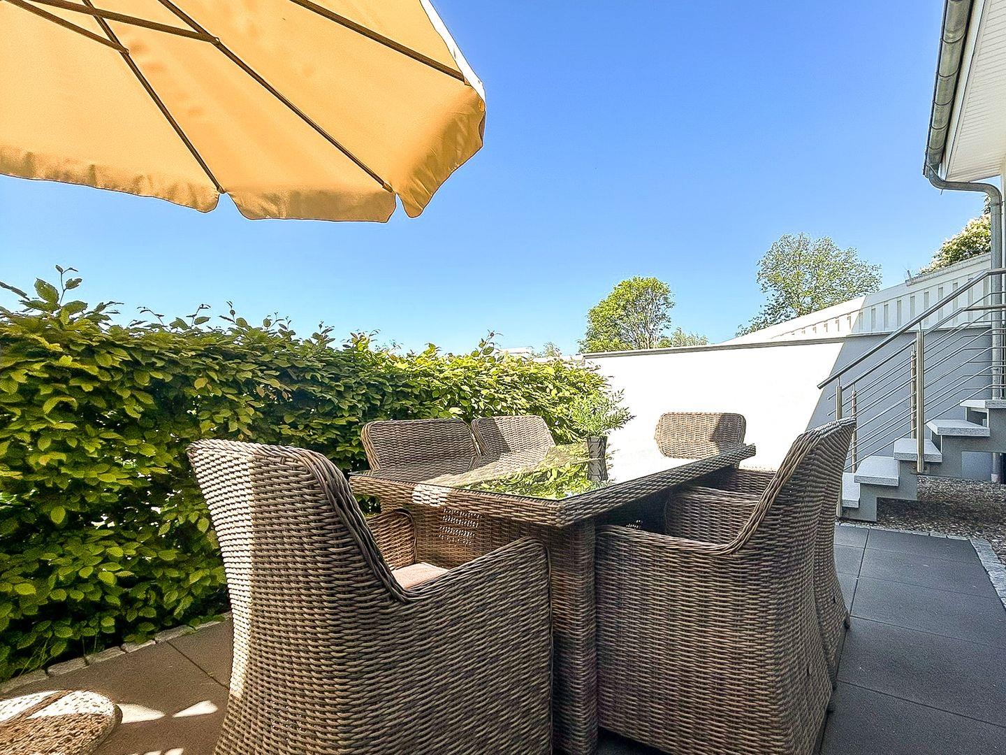 Vom Herzen der Ferienwohnung aus gelangst du auf die großzügige, mit komfortablen Sitzgelegenheiten, westlich ausgerichtete Terrasse. Von hier kannst du ausgiebig die Sonnen- und Abendstunden genießen.