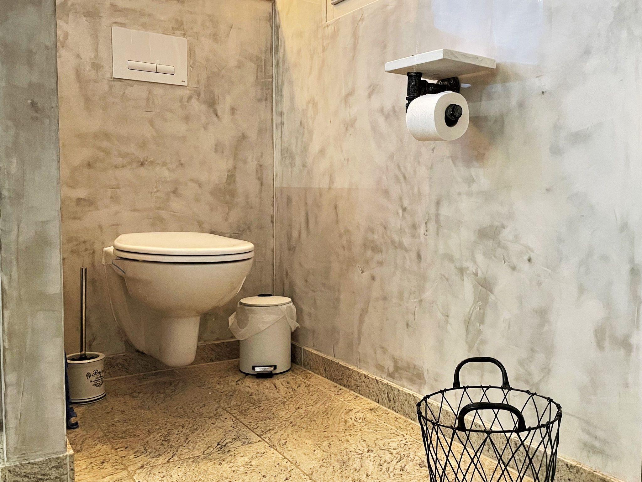 Die große, offene Küche ist modern eingerichtet und lädt zum Verweilen ein. Ausgestattet ist diese mit Kühlschrank sowie Gefriermöglichkeit, Backofen im Retrostyle und einem Geschirrspüler. Zu weiteren Annehmlichkeiten zählten Kaffeemaschine, Wasserkocher, Toaster und ein Weinkühlschrank. Ein Kamin sorgt für wohlige Wärme.
