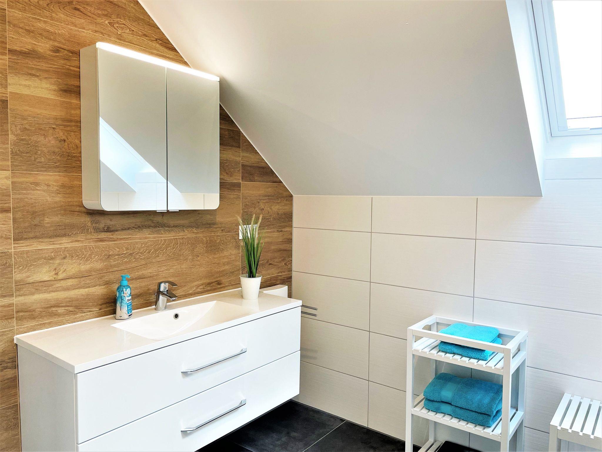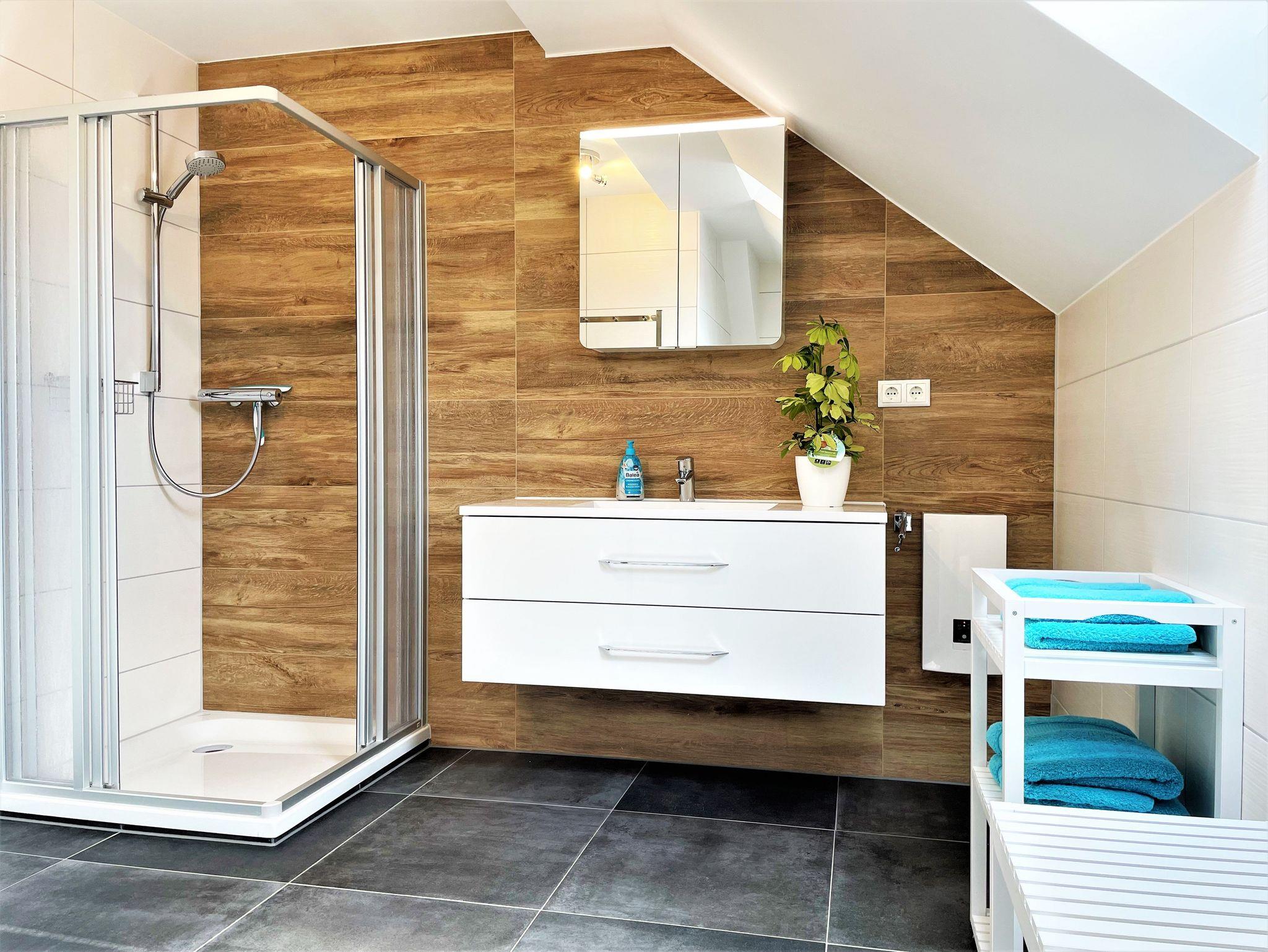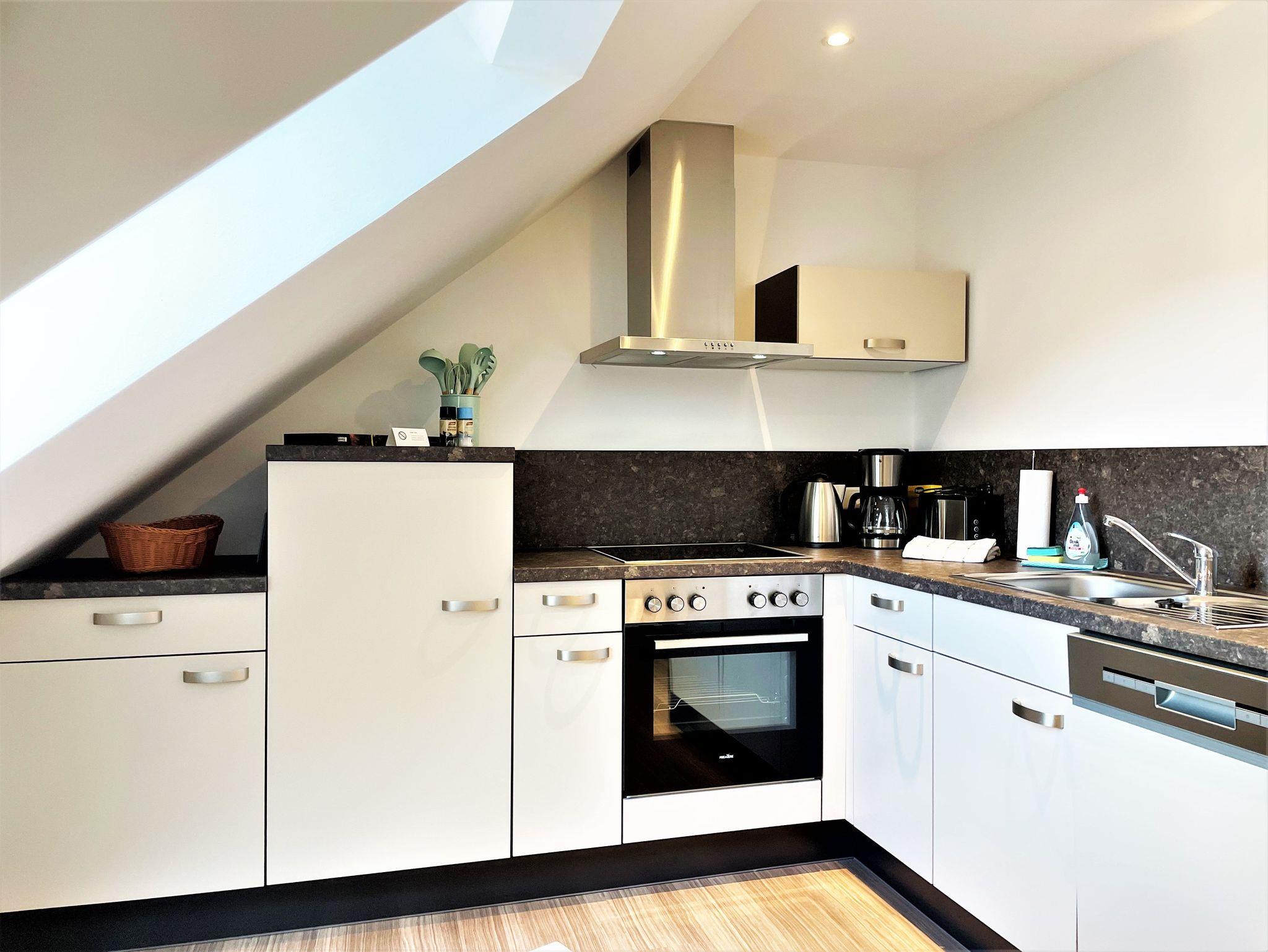 Eine separate, gut ausgestattete Küche ist Bestandteil der geräumigen Ferienwohnung. Das Badezimmer ist mit einer Dusche, einem modernen Waschtisch und WC ausgestattet. Eine eingebaute Fußbodenheizung sorgt im Winter für eine wohlige Wärme und im Sommer kühlt diese die Raumtemperatur herunter.