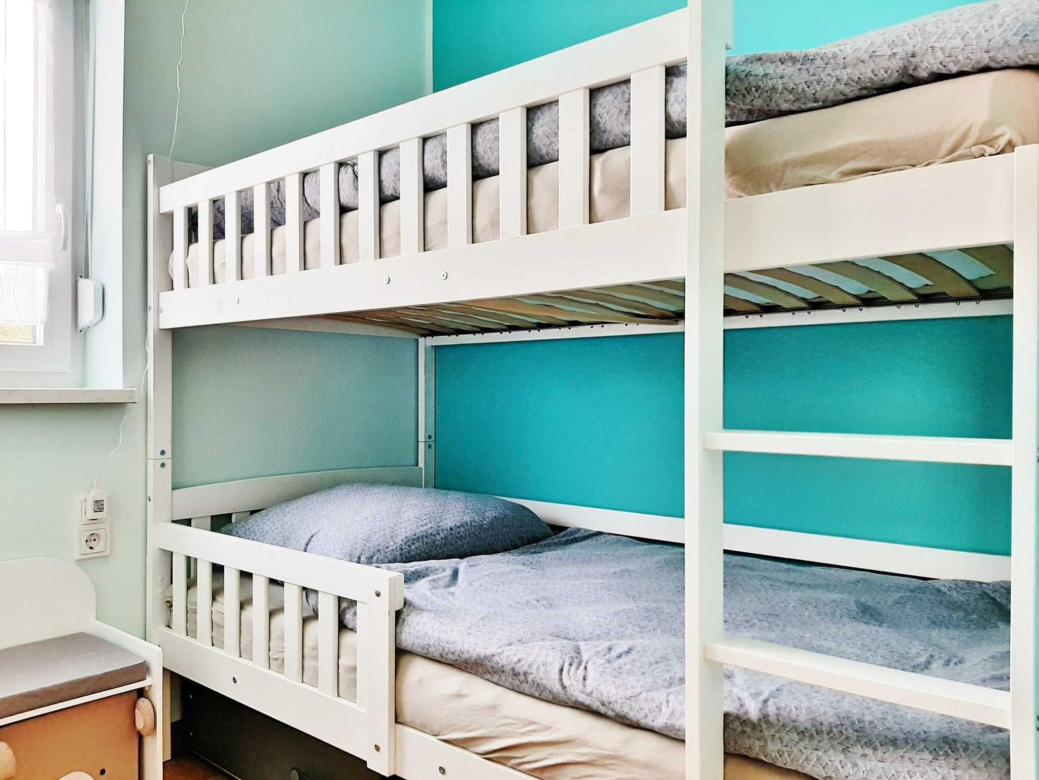 Das Nichtraucher-Familienzimmer (19 m²) ist mit einem Doppelbett (1,80 × 2,00 m), TV-Flachbildschirm und Fußbodenheizung ausgestattet. In einem kleinen separaten Kinderzimmer (4 m²), eingerichtet mit einem Etagenbett (0,90 × 1,90 m) fühlen sich Kinder wohl und finden Platz zum Spielen. Im Bad finden Gäste ein WC und eine Dusche. Eine Terrasse mit Sitzmöbeln steht Gästen für den Aufenthalt zur Verfügung.
