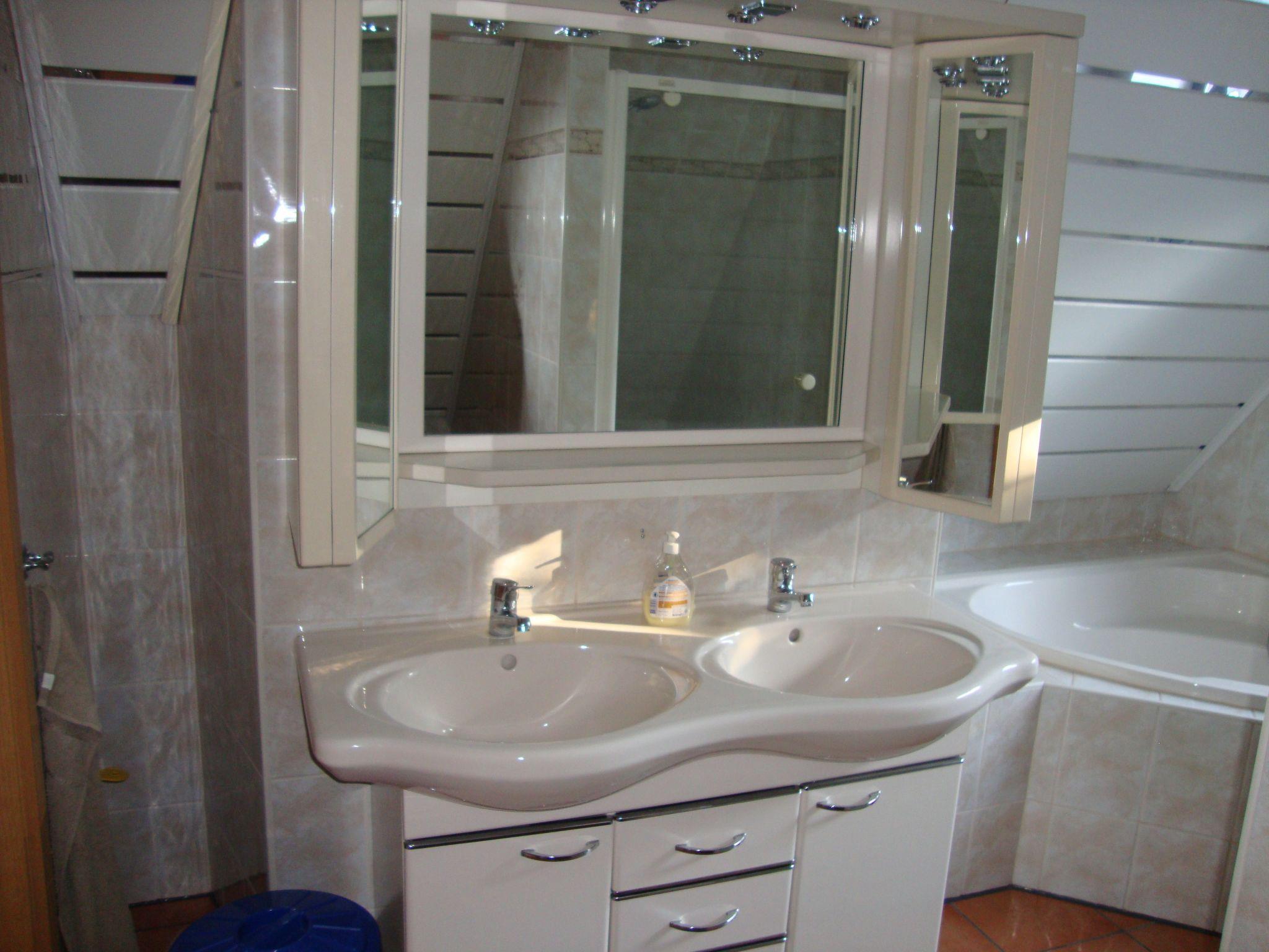 The rooms in the apartment with 120m² of living space occupy a complete half of the house and can accommodate a maximum of eleven people comfortably. On the living level there are the kitchen, living room and a toilet. The built-in kitchen is fully-equipped with all the necessary modern electrical appliances and also includes a dishwasher and a dining space. The spacious living room (35m²) provides quality furnishing. Three large panoramic windows ensure a good view out. Apart from the comfortable suite, there is a large dining table with space for everyone. The attic level comprises four bedrooms furnished in a rustic style and bathroom with a corner bath, shower cubicle, double washbasin and a toilet. A large window provides ample light and fresh air. The first bedroom is furnished with a double bed (180 x 200cm), a single be (90 x 200cm) and a cot. The second bedroom has a single bed (90 x 200cm) and a folding bed (90 x 200cm), while the third has two further single beds (90 x 200cm). The fourth bedroom was furnished with 3 single beds (90cm x 200cm). The interior of the apartment is a non-smoking zone.