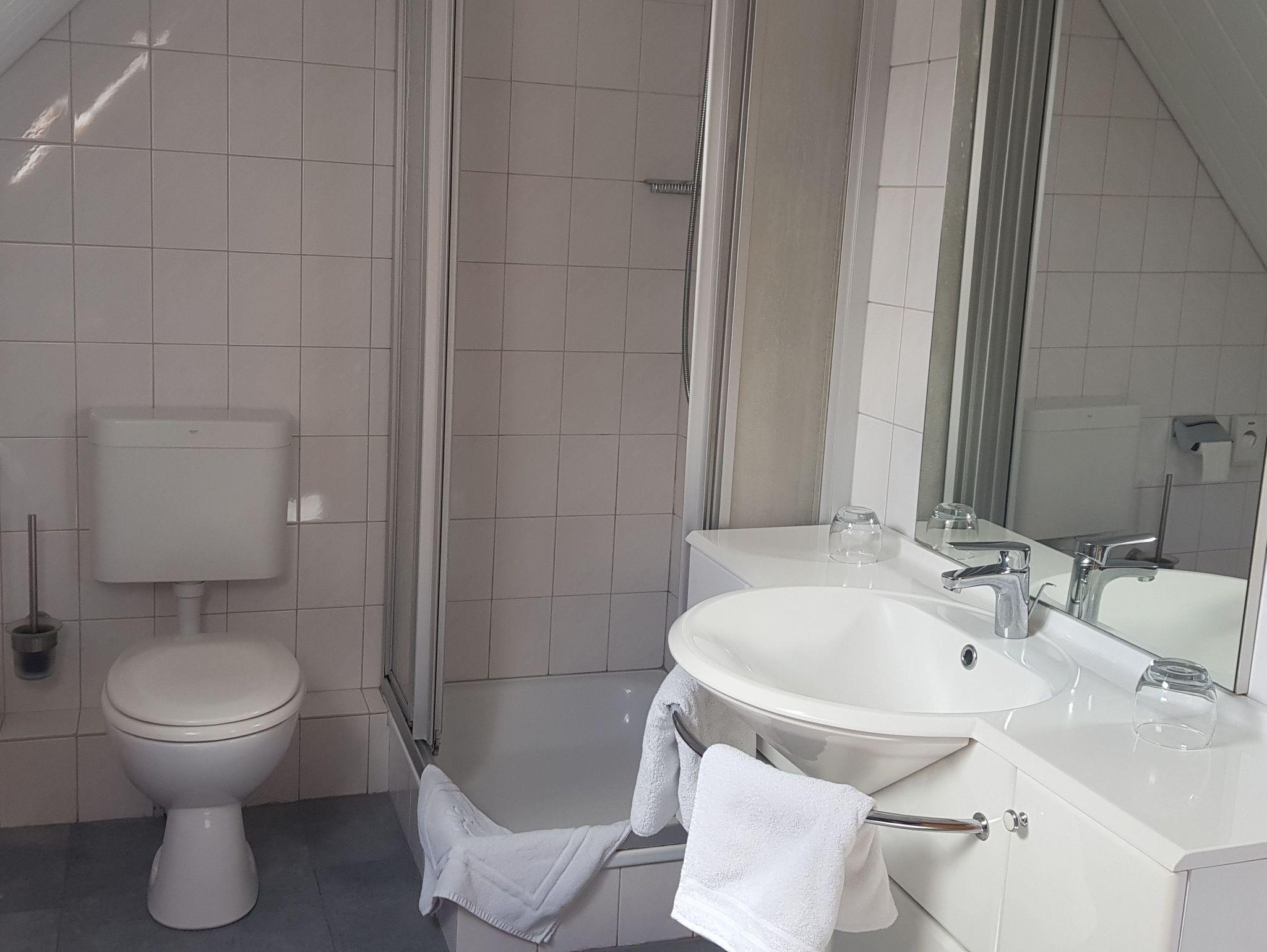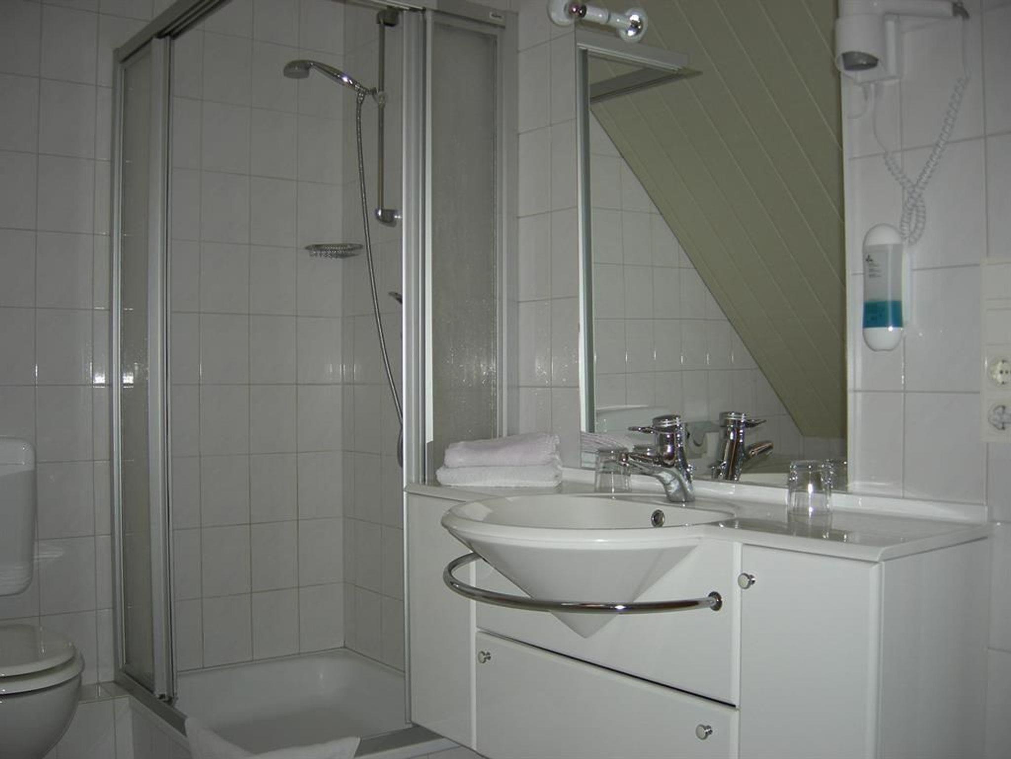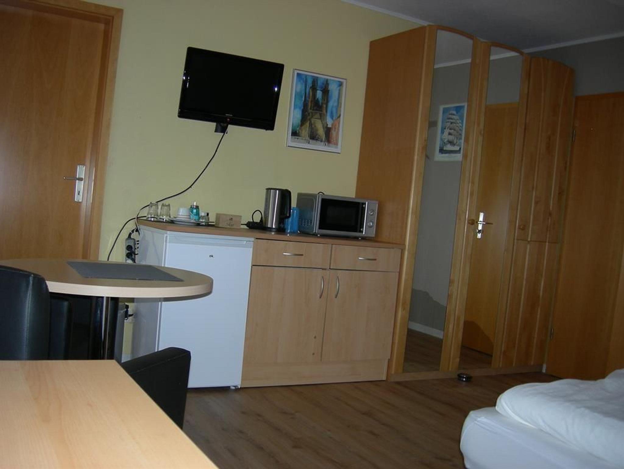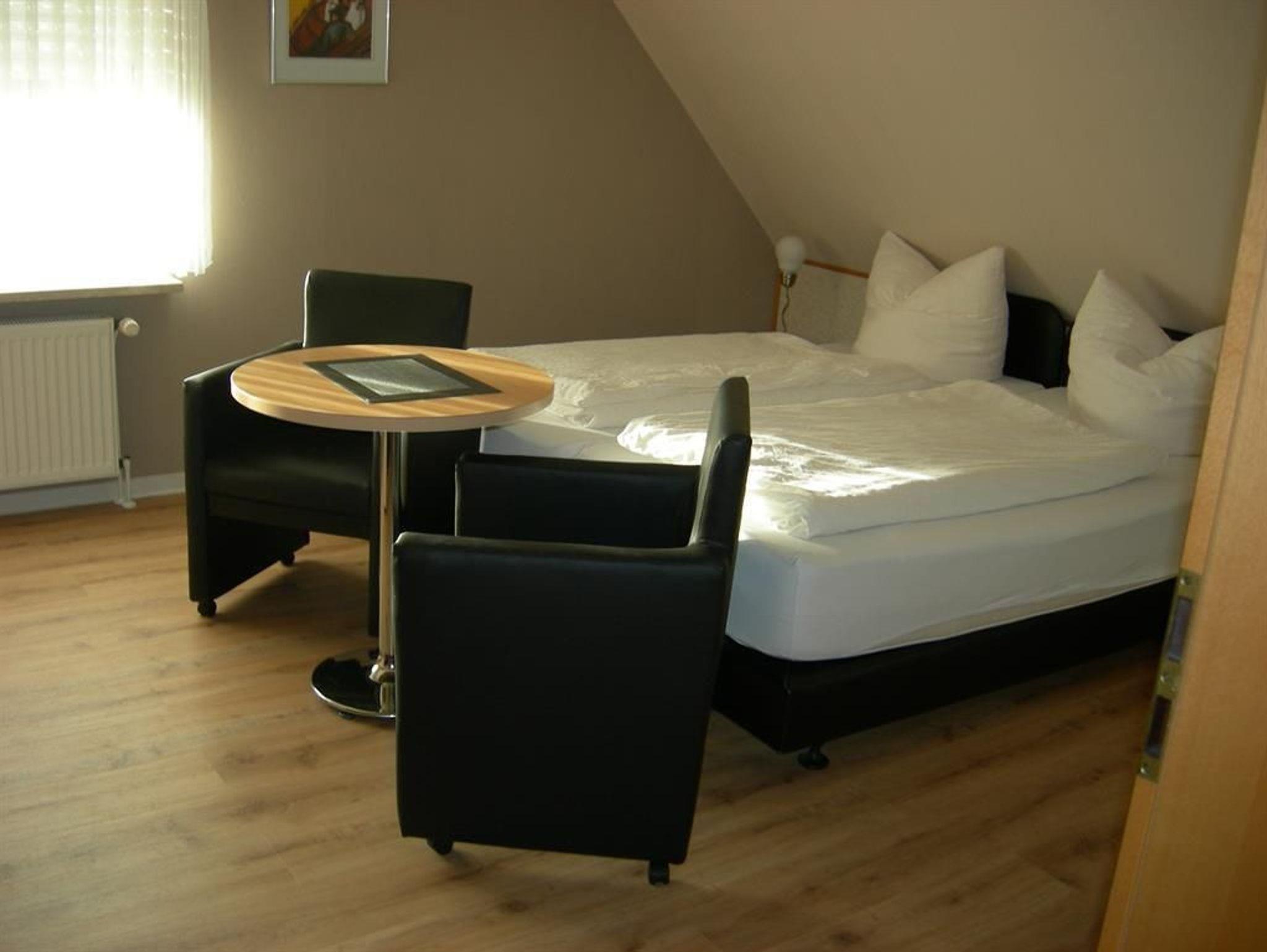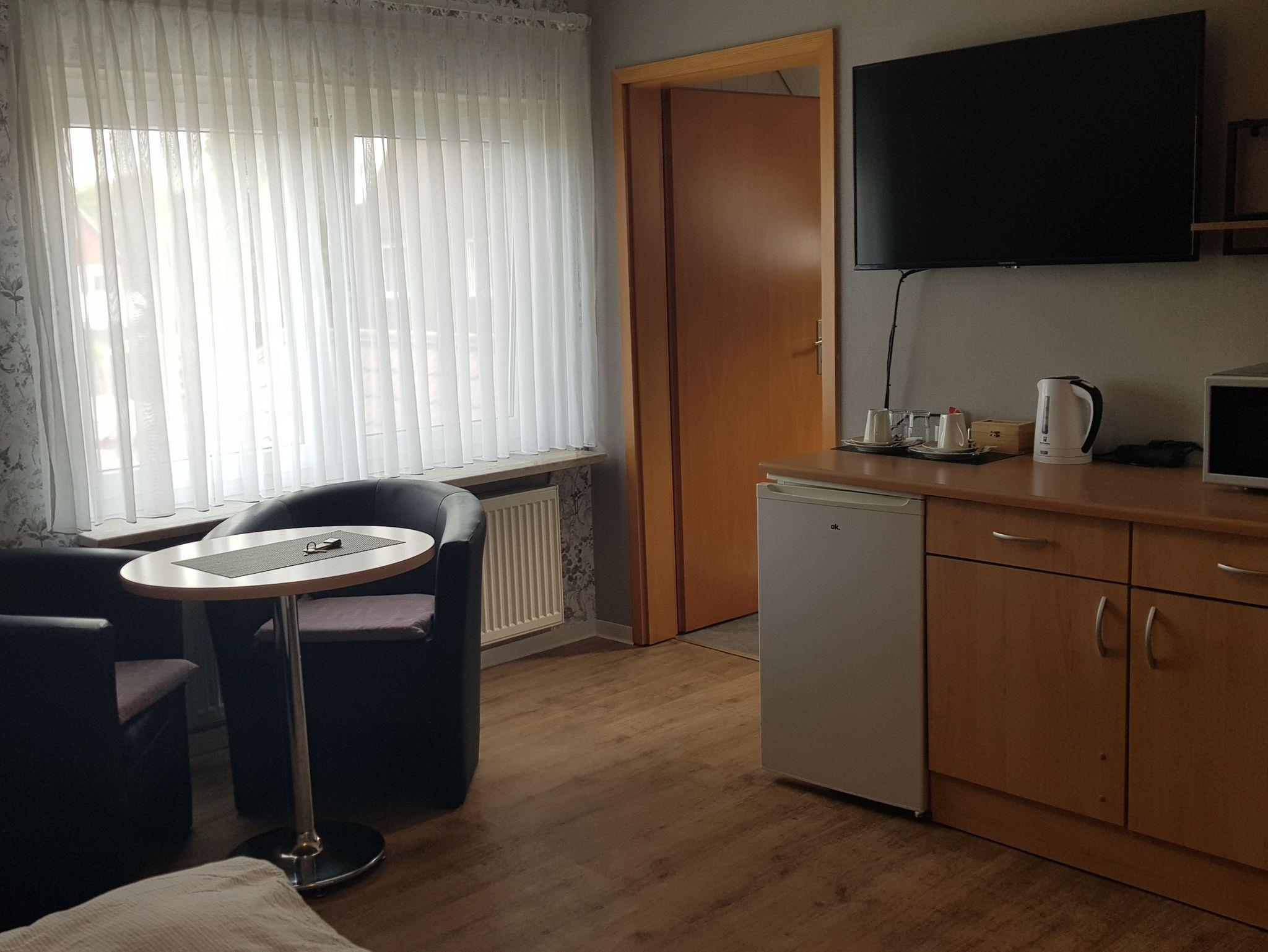 Renovierte Doppelzimmer mit Dusche und WC. Die Zimmer sind ca. 20 qm groß und befinden sich im Obergeschoss. Im Zimmer finden Sie einen Schreibtisch, W-Lan und eine Küchenzeile.