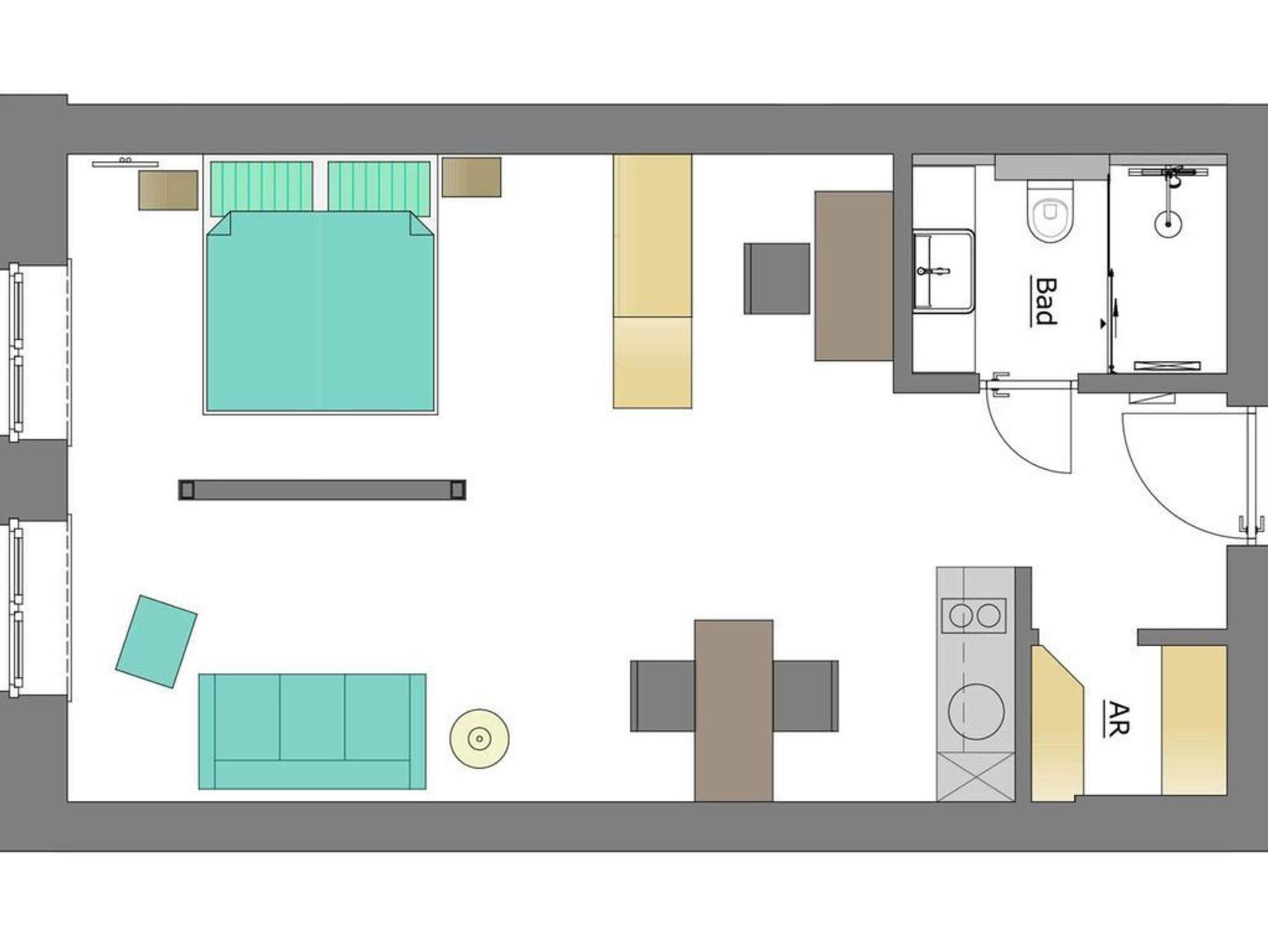 Die Komfort Plus Appartements sind für bis zu zwei Personen konzipiert und bieten eine optimale Kombination aus Großzügigkeit und stilvollem Design. Ein separater Wohn- und Schlafbereich sorgt für Privatsphäre und schafft eine angenehme, wohnliche Atmosphäre. Die durchdachte Raumaufteilung macht dieses Appartement ideal für Paare oder Geschäftsreisende, die etwas mehr Komfort suchen. Die voll ausgestattete Küche gibt Ihnen die Möglichkeit, Ihre Mahlzeiten flexibel und individuell zu gestalten, während der gemütliche Wohnbereich zum Entspannen oder Arbeiten einlädt. Ein modernes Bad mit Dusche ergänzt das Appartement und sorgt für den perfekten Abschluss eines langen Tages.