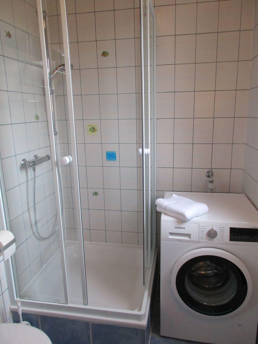 Im Erdgeschoß befindet sich ein Schlafzimmer, der große Wohn-/Essbereich, die Küche sowie ein Badezimmer. Das Schlafzimmer verfügt über ein Doppelbett (1,60m Liegefläche), im Badezimmer befindet sich eine Dusche. Vom Erdgeschoß gelangen Sie zudem hinten in den Garten und zur Seite zur Auffahrt.