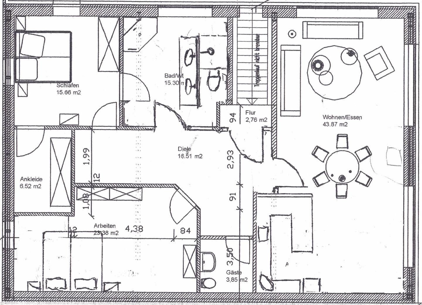 Der großzügige Flur ermöglicht direkten Zugang zu allen Räumen und sorgt für einen optimalen Grundriss der Wohnung. Neben den bereits genannten Räumlichkeiten verfügt die Wohnung über ein Badezimmer, einen kleinen Abstellraum sowie ein Gäste-WC.