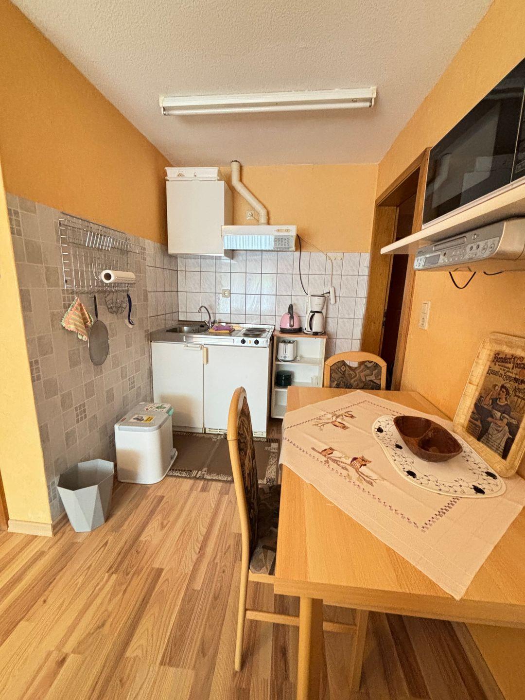Die Wohnung hat eine Größe von 25m² und ist unterteilt in Wohn-/Schlafzimmer, Kochecke sowie einem Badezimmer. Sie ist für max. 2 Personen ausgestattet. Die Betten im Schlafzimmer verfügen über 90x200cm Liegefläche. In der Küchenecke stehen Elektrogeräte wie z. B. Kaffeemaschine, Wasserkocher, Mikrowelle, Toaster sowie eine Kochgelegenheit (mit 2 Herdplatten) zur Verfügung. Selbstverständlich ist auch ein TV und ein Radio vorhanden. Es handelt sich hierbei um eine Nichtraucher-Unterkunft und Haustiere sind leider nicht erlaubt.