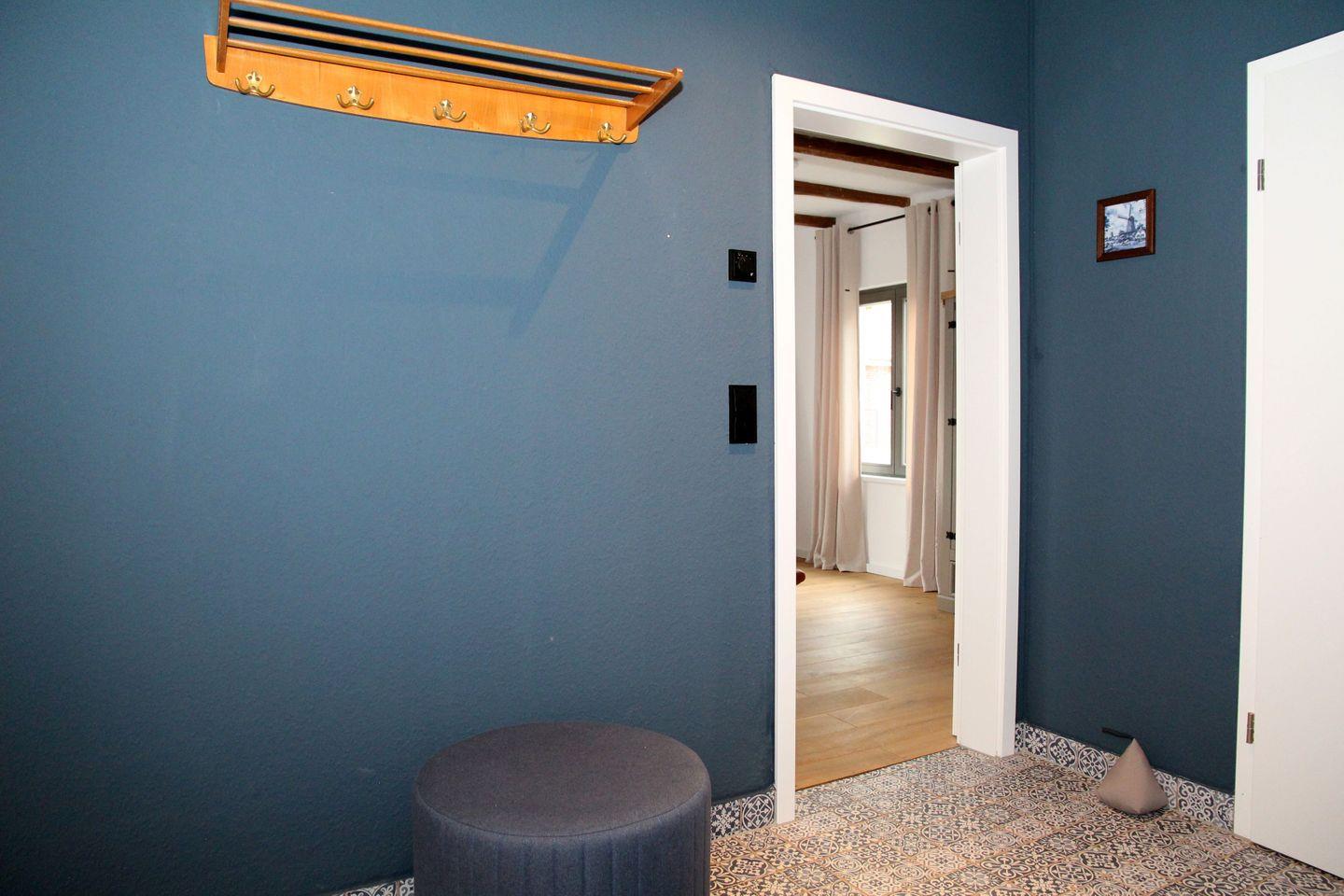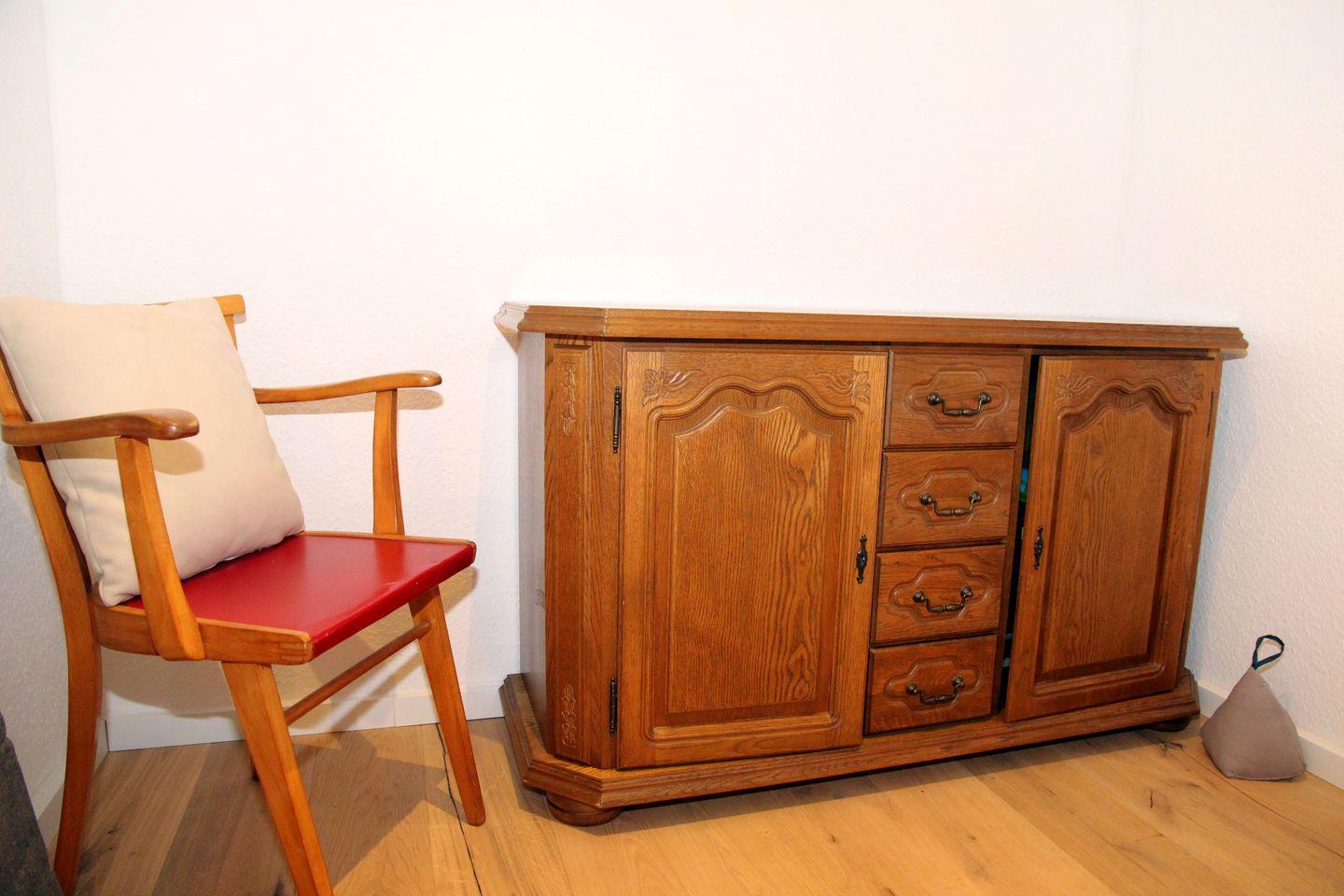 Darüber hinaus verfügt das Haus über einen Kinderhochstuhl (Tripp-Trapp) und im Keller (steile Treppe und noch nicht saniert) über eine Waschmaschine mit Wäscheständer. Im gesamten Haus ist Echtholzboden (in den Badezimmern, im Flur und in der Küche Fliesen) mit Fußbodenheizung verlegt. Die wichtigsten Fenster sind mit Fliegengittern ausgestattet.