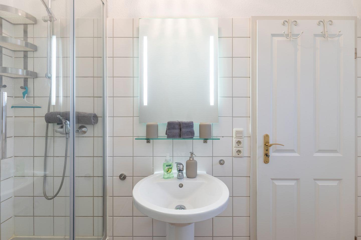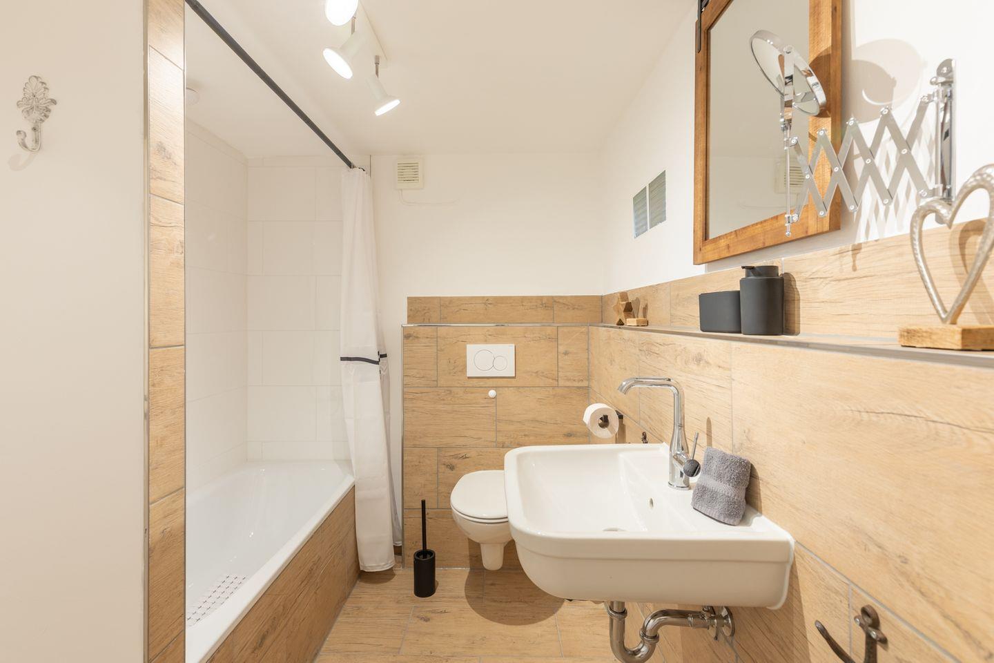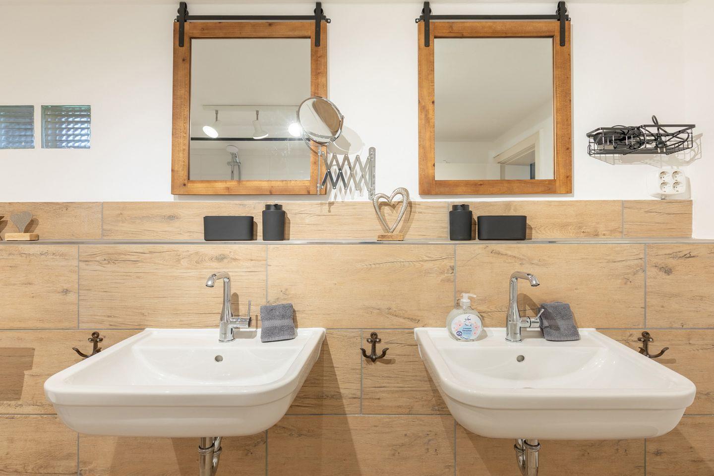 Zwei Duschbäder (eines im Obergeschoss, eines im Erdgeschoss) runden das Bild ab. Zusätzlich steht eine Waschmaschine und ein Trockner für Sie bereit.