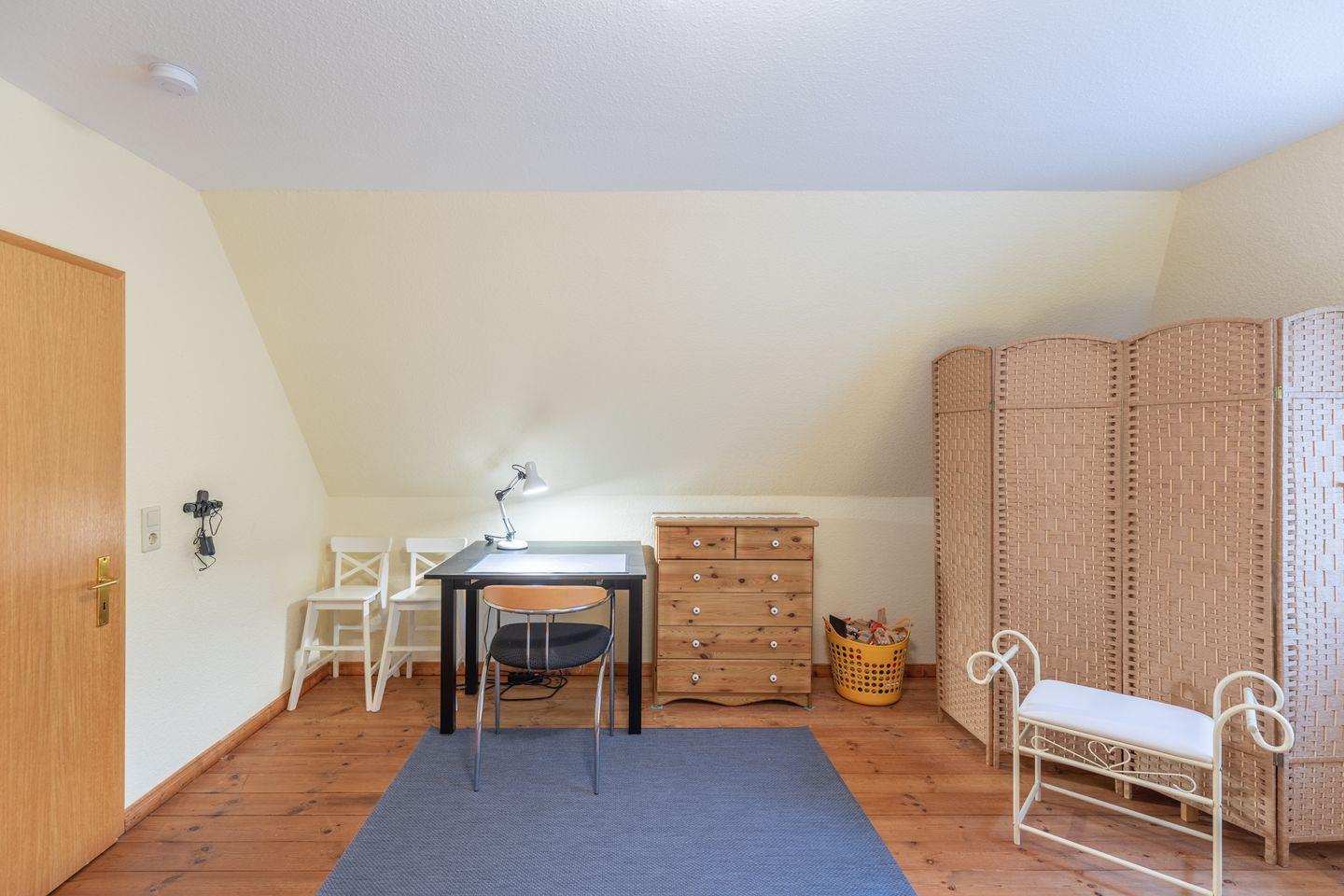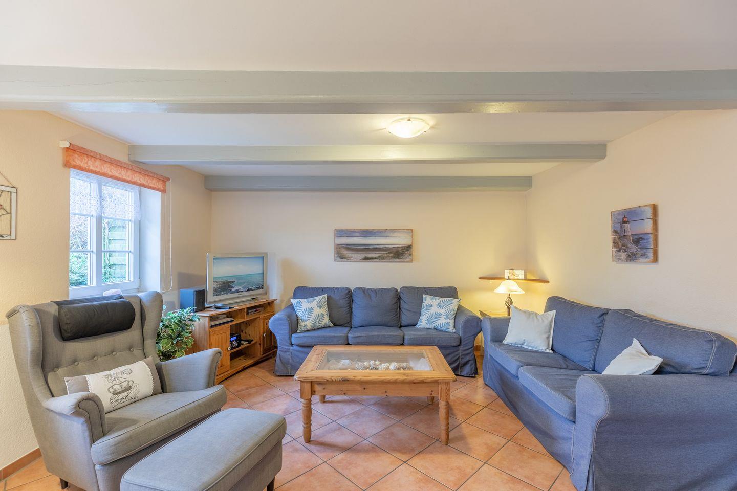Innerhalb des Hauses befindet sich im EG ein kleines separates Appartement. Dieses bietet den Luxus, mit Oma und Opa, Freunden oder Nachbarn gemeinsam Urlaub machen zu können. Hier ist man räumlich getrennt und doch ganz nah, eben genau so viel, wie man möchte.