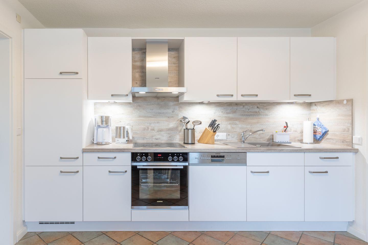 Zwei voll ausgestattete Küchen mit Essbereichen für je vier Personen.