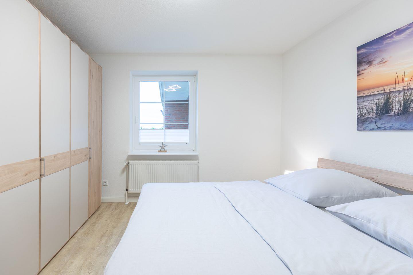 Ein Schlafzimmer im Erdgeschoss mit einem Doppelbett (180 x 200 cm).