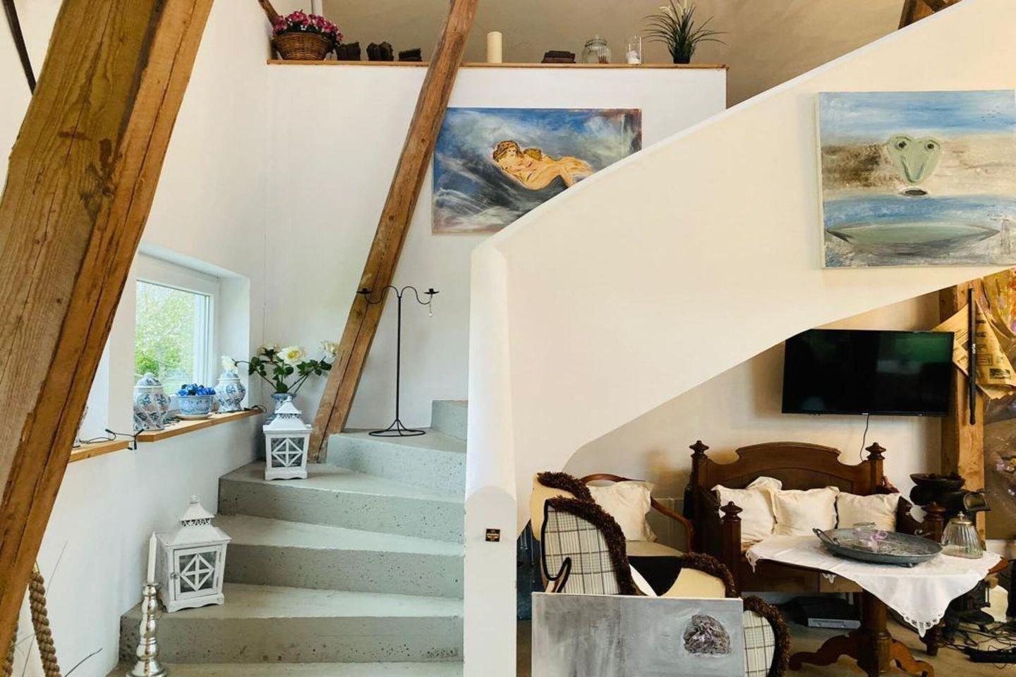 Die Außenanlage der Ferienwohnung lädt zu entspannten Momenten ein. Genießen Sie die frische Luft auf der Terrasse, wo Gartenmöbel und ein Grill bereitstehen. Sonnenliegen und ein Sonnenschirm sind ebenfalls vorhanden, sodass Sie ungestört die Sonne genießen können. Der Garten bietet zudem einen klaren Blick auf die umgebende Landschaft, die Ihnen einen beruhigenden Ausblick bietet. Unser Highlight ist der Platz im Strandkorb mit Ausblick über die Felder.