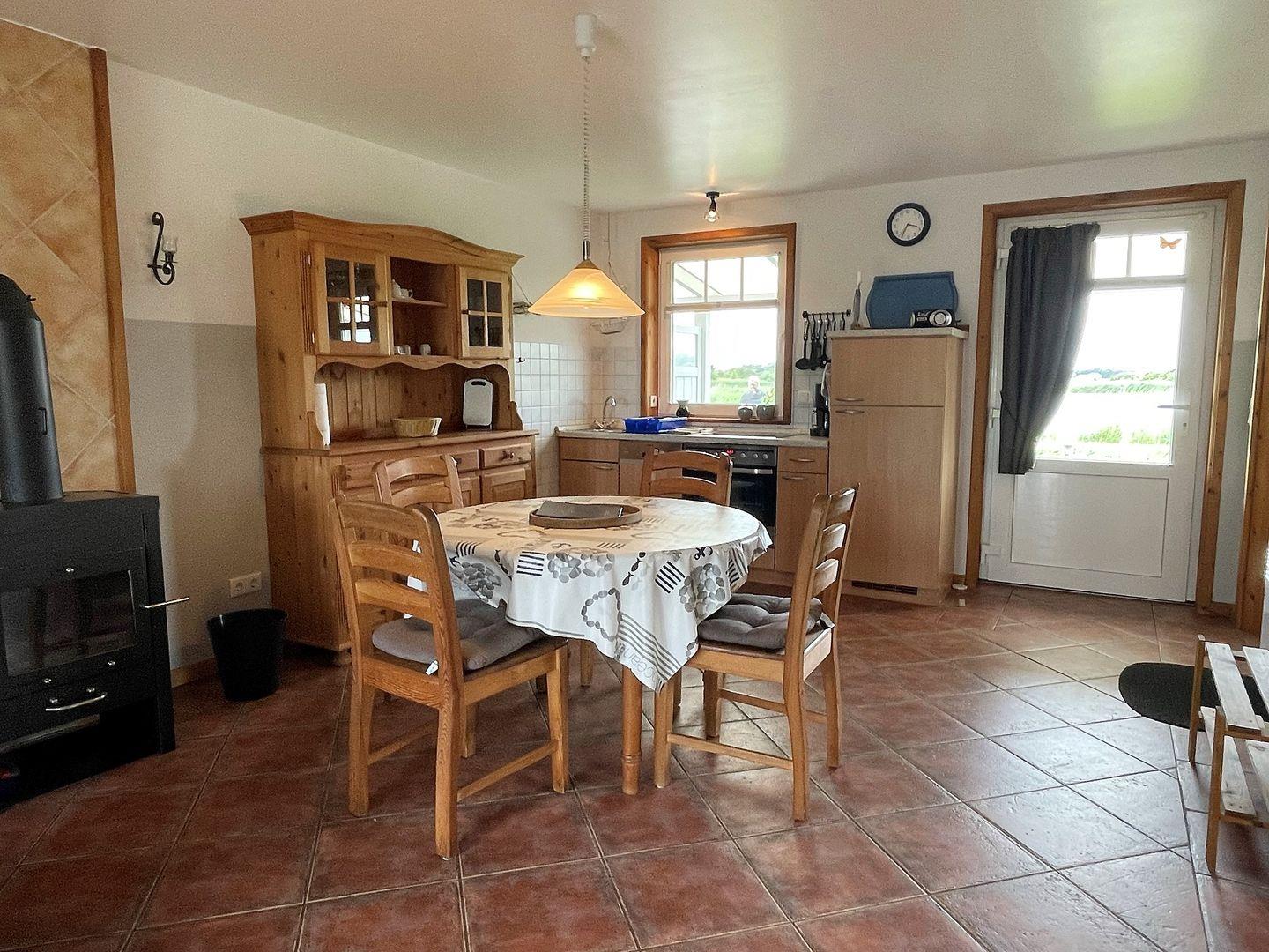 Die Küche ist vollständig ausgestattet und bietet Ihnen die Möglichkeit, Ihre eigenen Mahlzeiten zuzubereiten. Der Garten ist für Hunde (bis zu zwei Hunde heißen wir willkommen) mit einem Zaun von 0,90 Meter Höhe eingezäunt, so dass Ihre vierbeinigen Freunde sicher herumlaufen können. Das 4.000 Quadratmeter große Grundstück bietet viel Platz für Aktivitäten im Freien und lädt zum Entspannen ein. Für gemeinsame Abende steht ein kleiner Grill sowie ein Schwenkgrill zur Verfügung, so dass Sie köstliche Mahlzeiten im Freien zubereiten können.