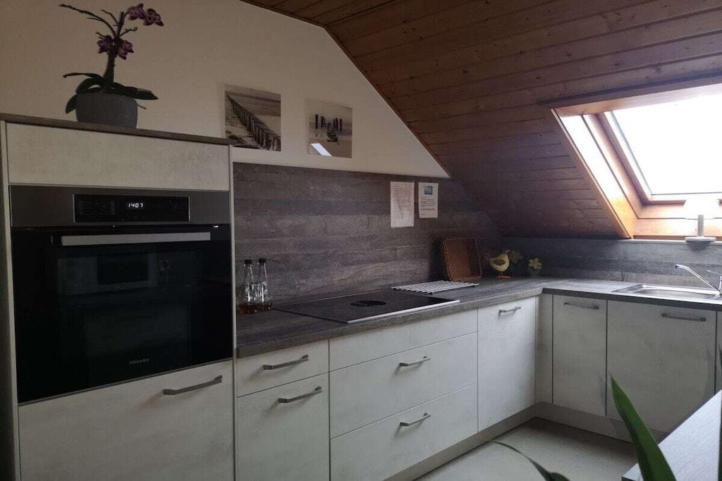Es gibt einen Kaminofen für schöne Abende mit Feuerschein, 3 Doppelzimmer und zwei Betten im Wohnzimmer auch als Sofa nutzbar. Je Bett berechnen wir zwischen 25,00 Euro und 30,00 Euro die Nacht. Wir legen Wert auf eine Nichtraucherwohnung, daher haben Raucher die Möglichkeit auf dem Balkon mit herrlichem Weitblick oder unter dem überdachten Eingangsbereich mit Sitzgelegenheit zu Rauchen. Die Ferienwohnung hat einen Kaminofen, Spülmaschine, Backofen mit Induktionskochfeld und TV-Flachbildschirm. Das moderne Bad ist mit Dusche und WC ausgestattet Wir freuen uns auf Sie!