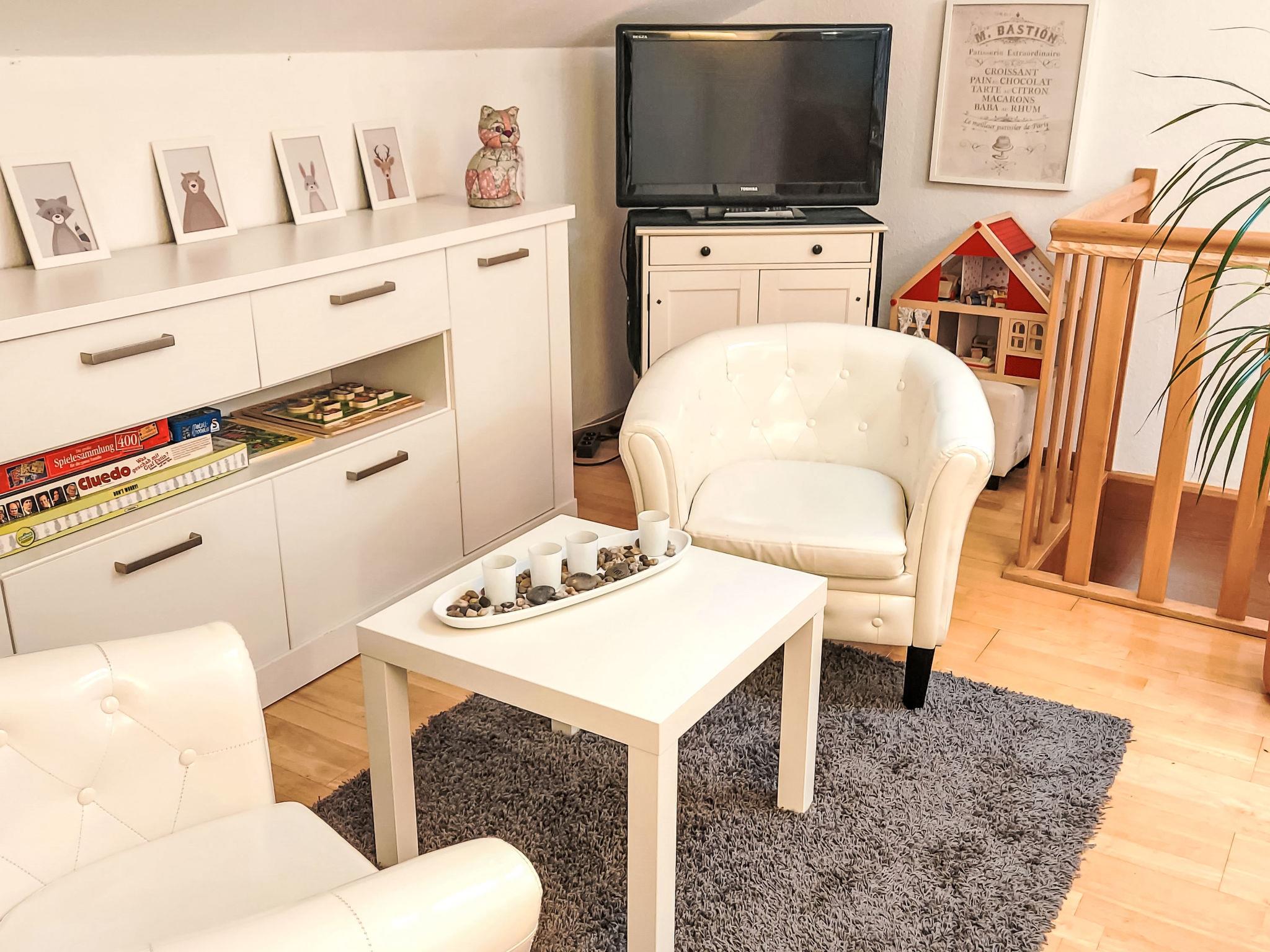 3-room semi-detached house 100 m2 on 2 levels. Tasteful and cosy furnishings: living/dining room with cable TV, flat screen and hi-fi system. 1 room with 1 double bed. Large kitchen (oven, dishwasher, 4 ceramic glass hob hotplates, toaster, kettle, microwave, freezer, electric coffee machine) with dining table. Upper floor: 1 room with 1 bed and 1 double bed. Open gallery with cable TV. Shower/WC. Gas heating. Terrace 25 m2, roofed. Terrace furniture, electric barbecue. Facilities: children's high chair, baby cot, hair dryer. Internet (WiFi, free). Please note: non-smokers only. Smoke alarm, fire extinguisher. Bookings accepted for holiday purposes only.