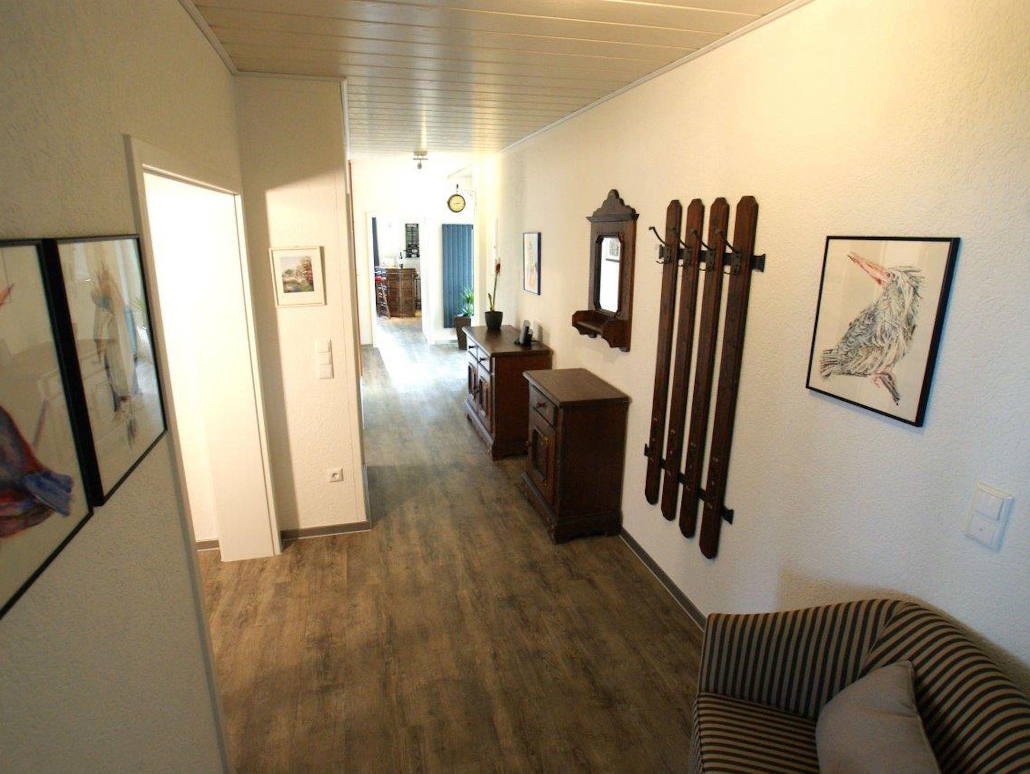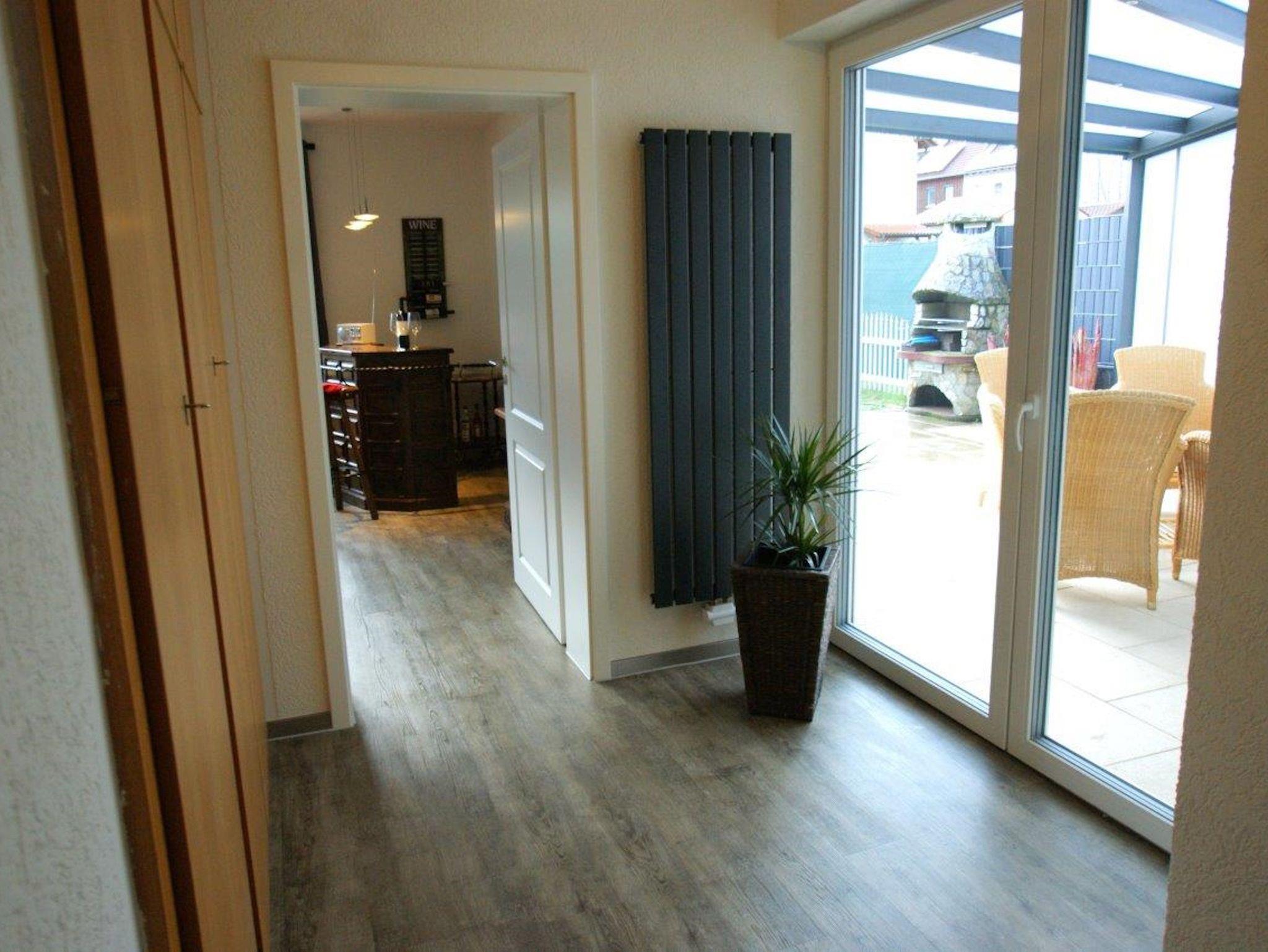 Treten Sie ein in den renovierten Bungalow. Ein Flur mit automatischer Beleuchtung und eine repräsentative Diele erwarten Sie.