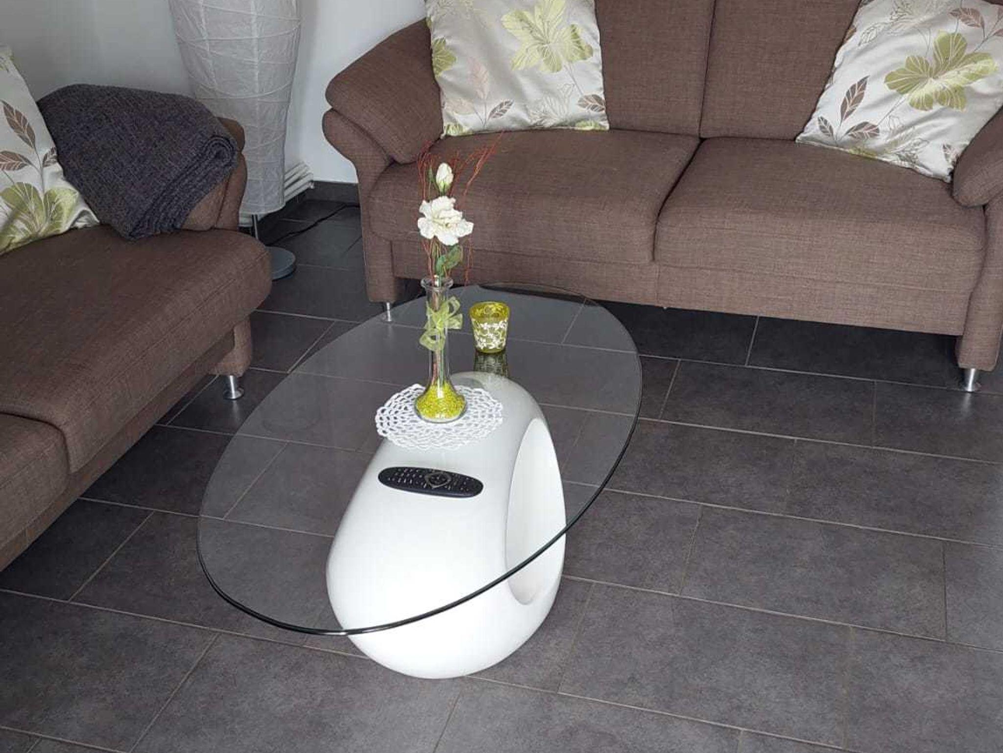 Das Badezimmer ist modern eingerichtet. Weiterhin gibt es eine separate Küche mit Backofen, Ceranfeld, sowie eine Kühl- und Gefrierkombi, Kaffemaschine, Wasserkocher, Toaster und einem Radio. In dem kleinen Abstellraum unter der Treppe kann man die Koffer und Reisetaschen, oder mitgebrachtes Spielzeug verstauen.