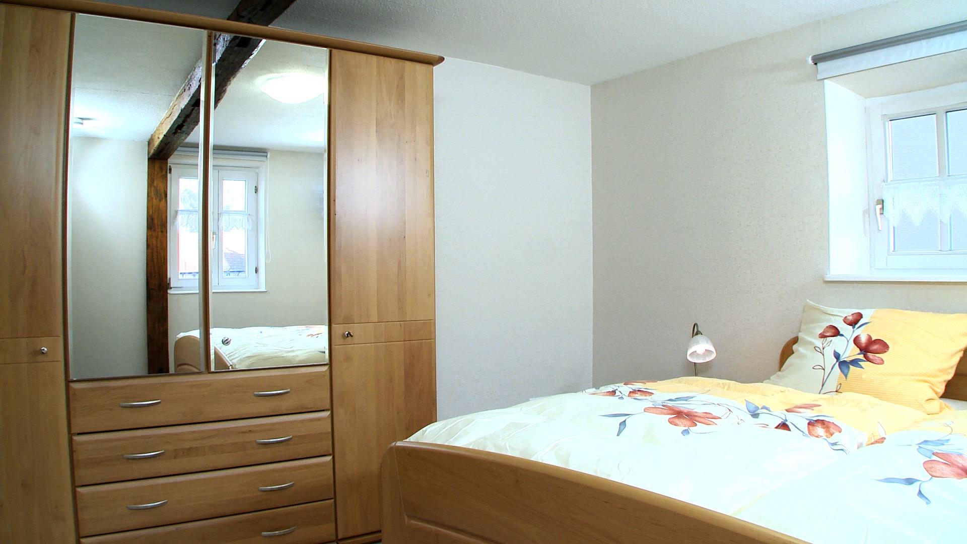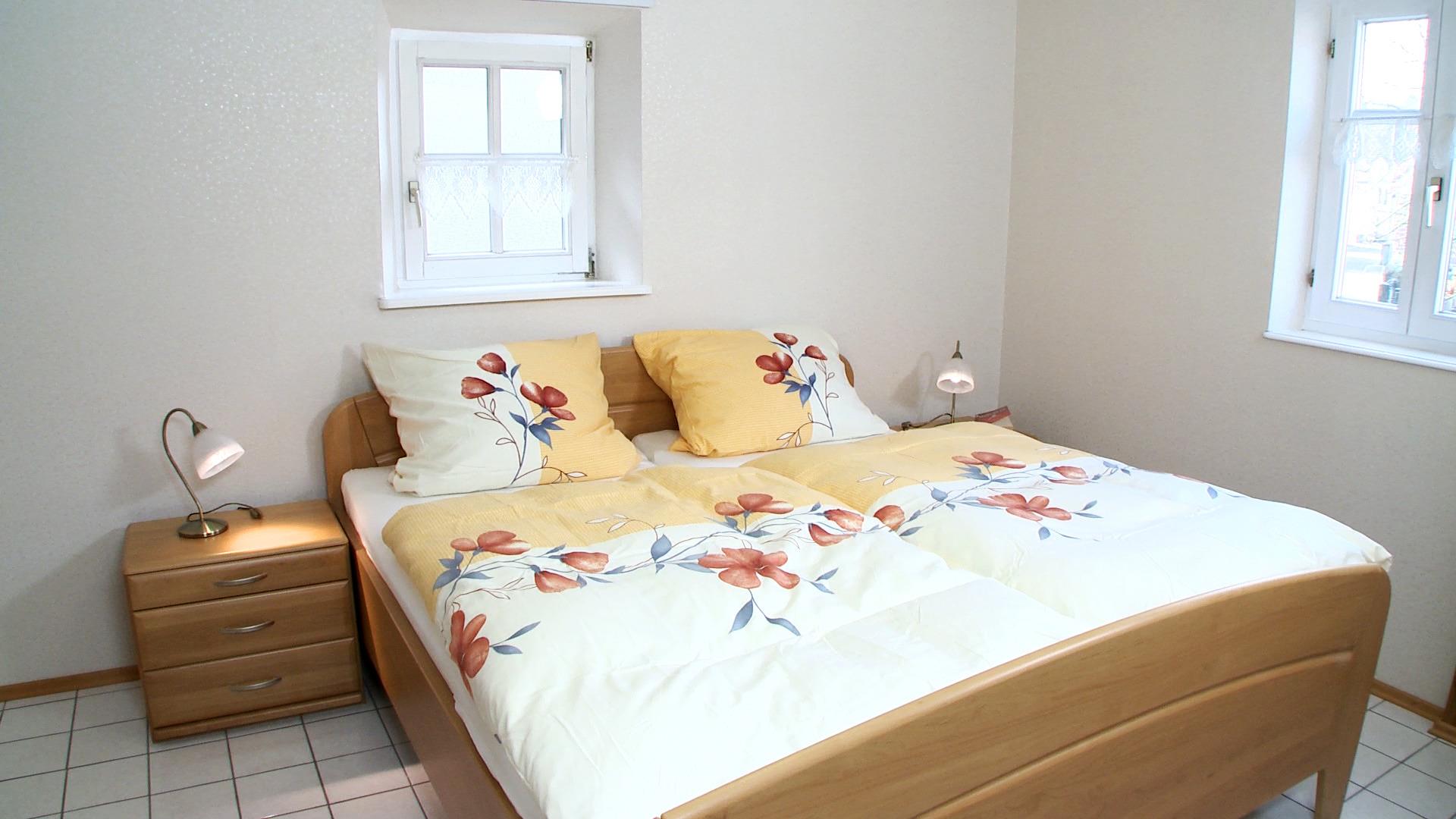 Das im Schlafzimmer befindliche Doppelbett kann mittels getrennt verstellbarem Lattenrost in der Höhe reguliert werden.
