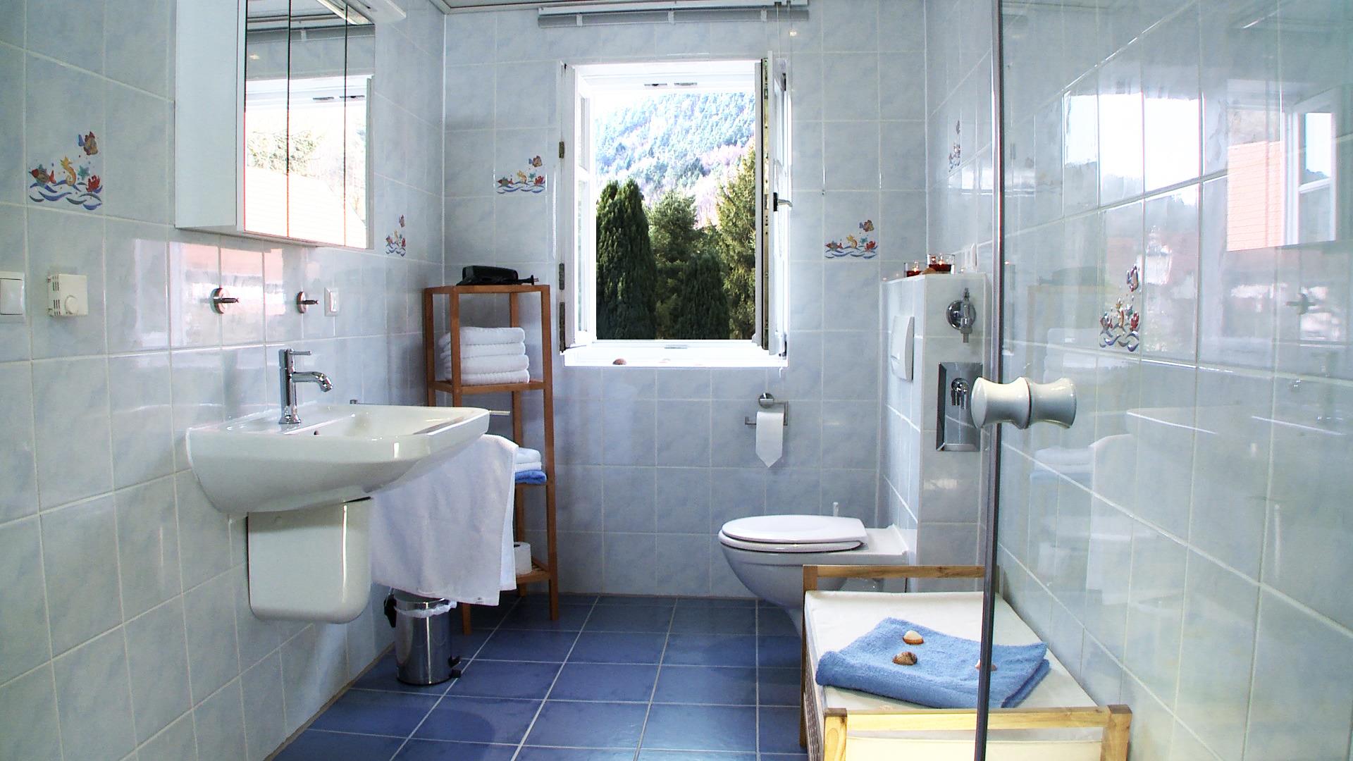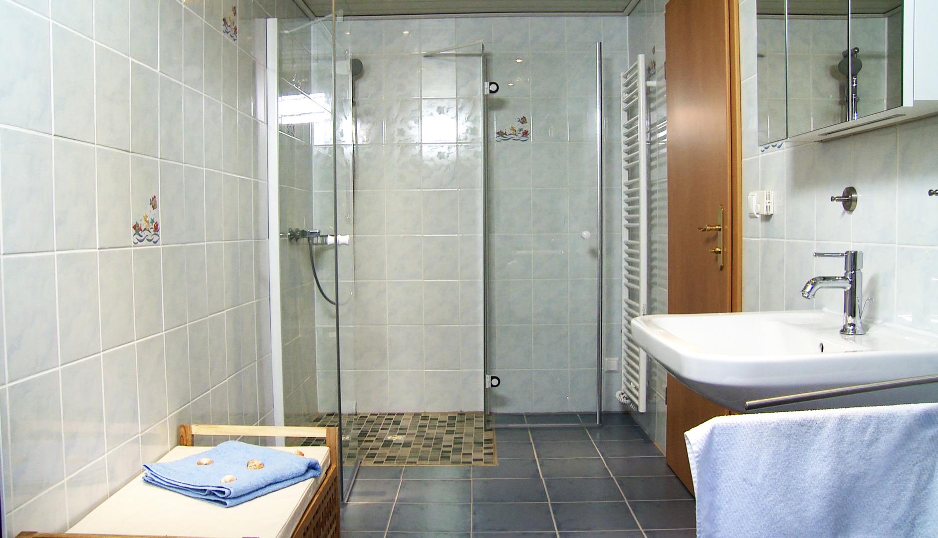 Das Tageslicht-Badezimmer ist mit einer Walk-In Dusche, WC und Waschbecken bestens ausgestattet. Ein Föhn, Bettwäsche und Handtücher werden Ihnen zur Verfügung gestellt. Isolierglasfenster und Fußbodenheizung in allen Räumen sind bei uns eine Selbstverständlichkeit.