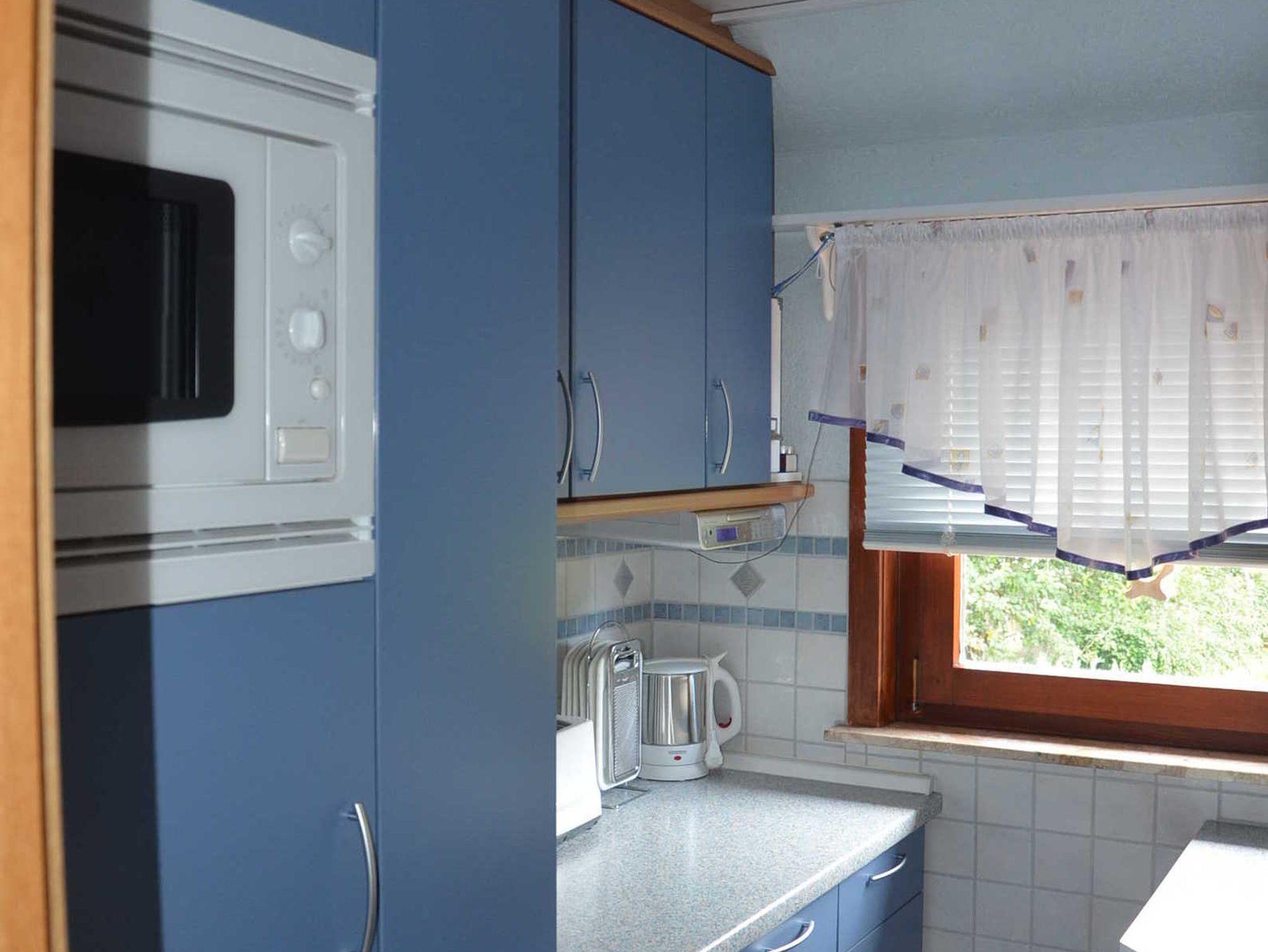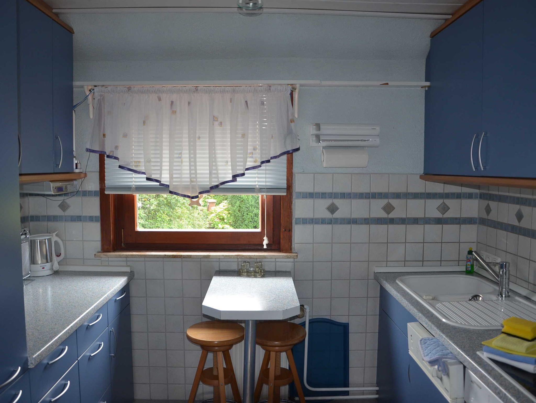 Die Ferienwohnung hat 3 Räume, davon 2 Schlafzimmer. 1 Wohn-, Esszimmer. Küche, Bad mit Dusche, WC und Waschbecken. Großer, teilweise überdachter Balkon mit Gartenmöbeln und E-Kugelgrill. Die Wohnung ist komplett eingerichtet, kinder- und familienfreundlich.