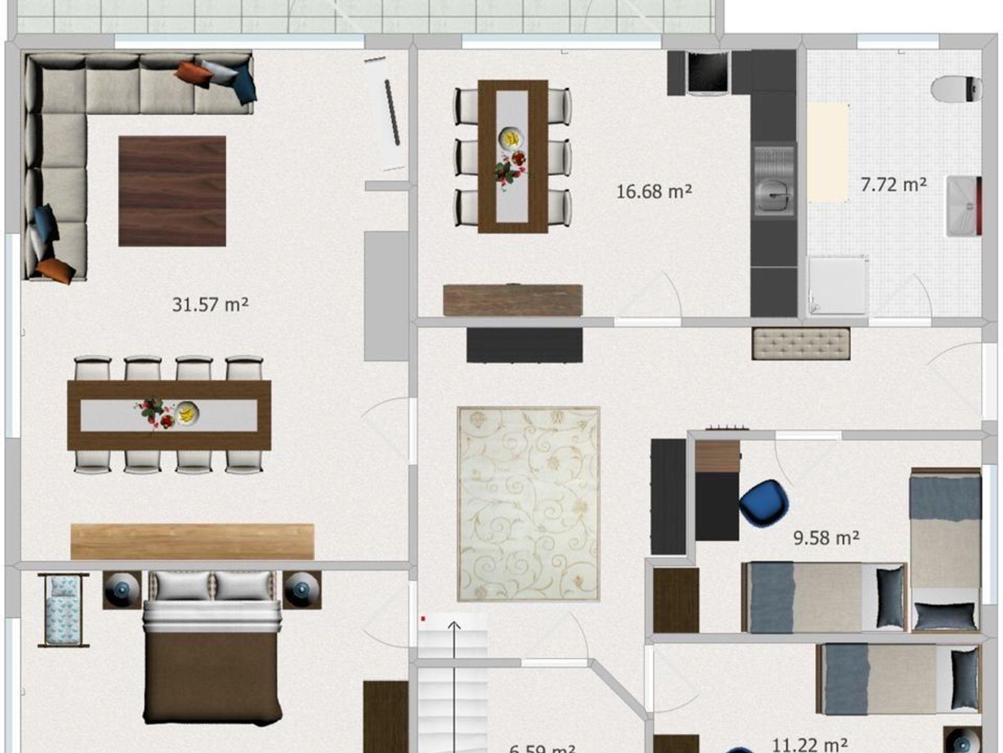 Diese einladende Erdgeschosswohnung auf 117 qm bietet optimalen Komfort und ist ideal für bis zu vier Erwachsene und zwei Kinder. Mit drei individuell gestalteten Schlafzimmern, eines mit Doppelbett, eines mit zwei Einzelbetten und ein Kinderzimmer mit zwei separaten Betten bietet die Wohnung ausreichend Raum für die ganze Familie. Auf Anfrage steht zudem kostenfrei ein Gitterbett für Kinder bis zu drei Jahren bereit.