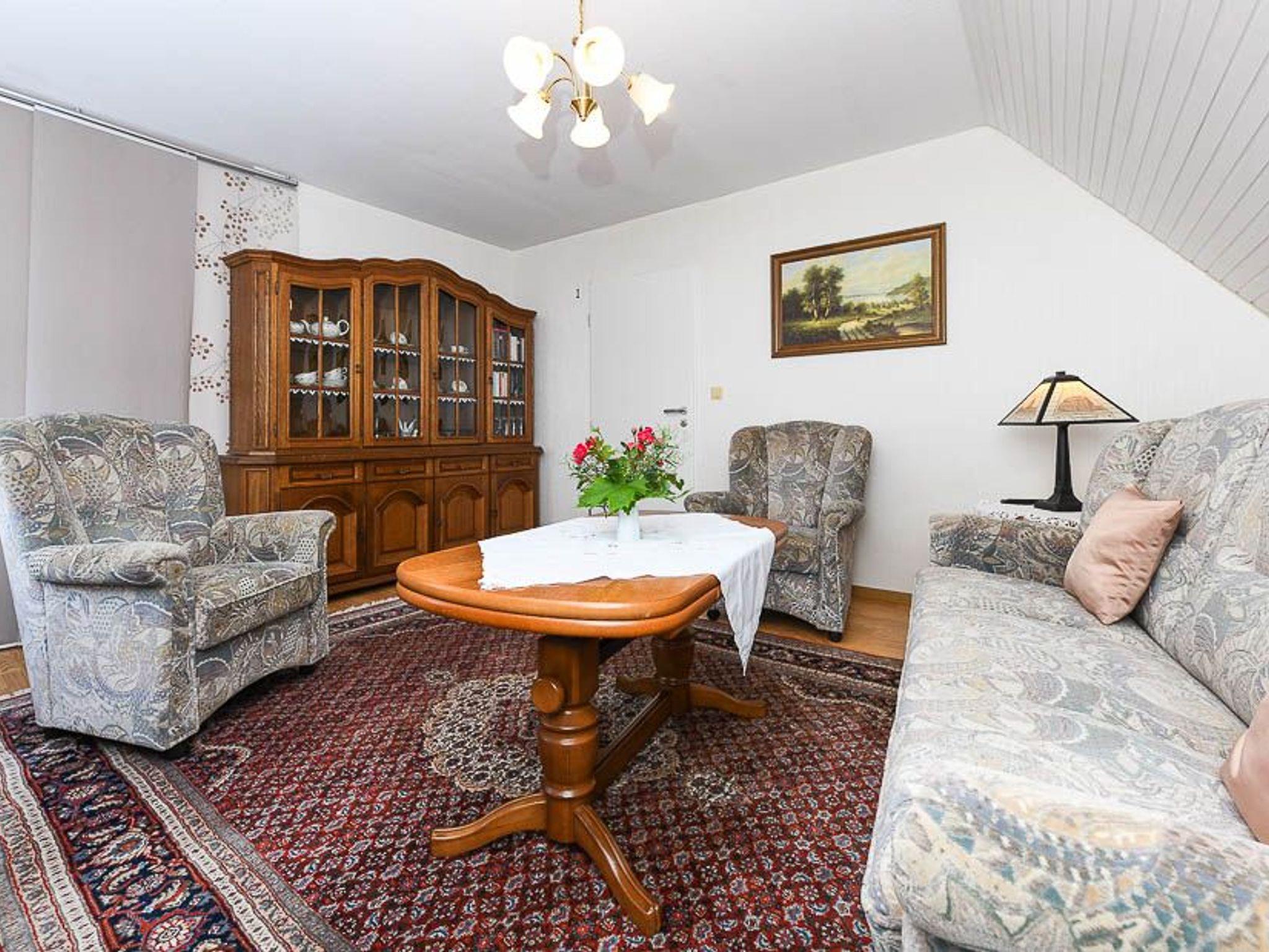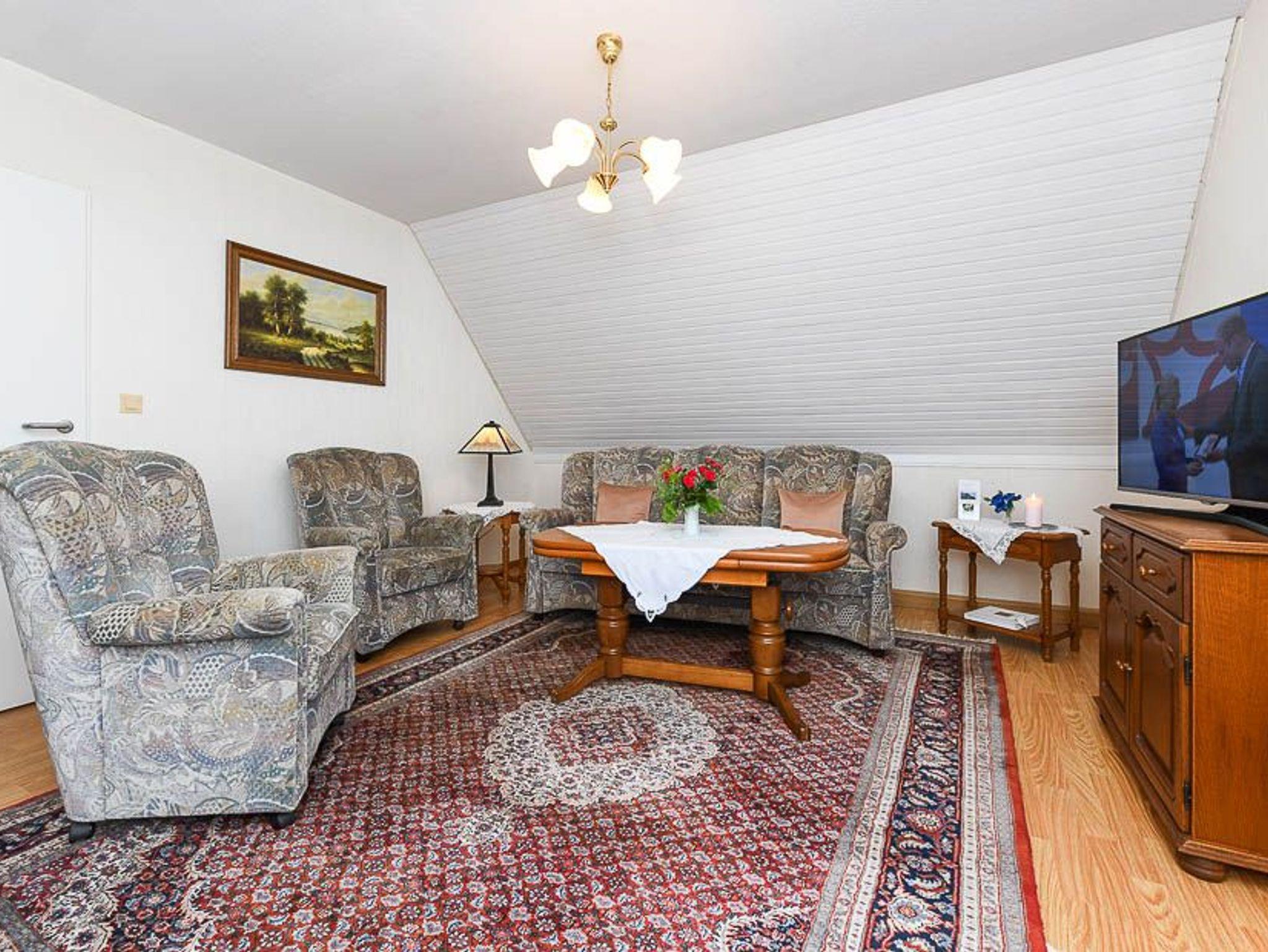Größe ca. 45 Quadratmeter, Wohnzimmer, Küche, Schlafzimmer, Badezimmer mit Dusche, Waschtisch und WC, Obergeschoss, Internetzugang über WLAN möglich, optimal für 1 bis 2 Personen.