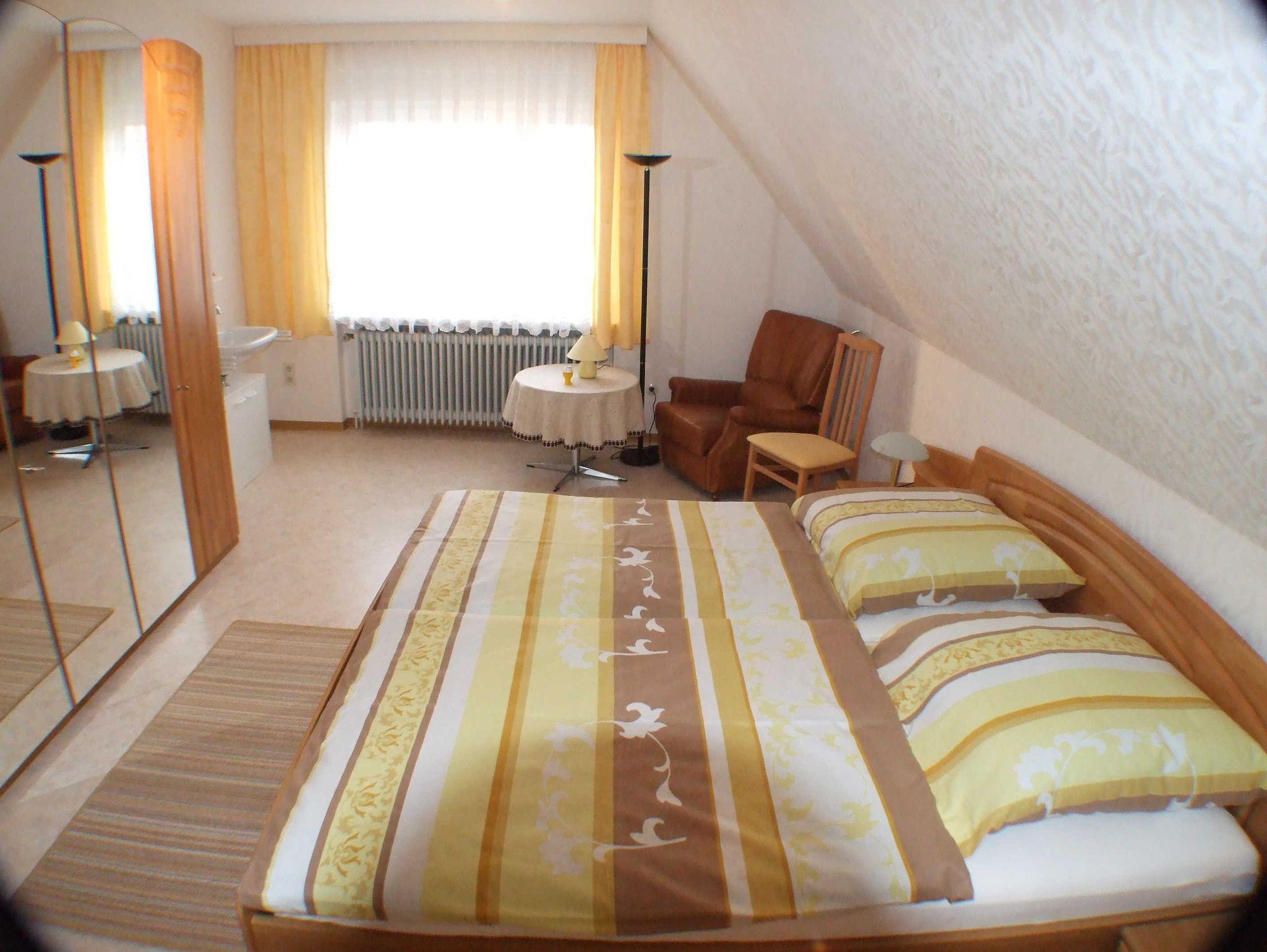 Unsere gemütlich modern und komfortabel eingerichtete Nichtraucher-Oberwohnung in ruhiger Sackgassenlage lädt zum Verweilen ein. Die Wohnküche mit komfortabler Einbauküche, sowie das separate Wohnzimmer, wie auch 2 gut ausgestattete Schlafräume, Dusche mit WC und der großen sonnigen Dachterrasse (50 qm) versprechen einen erholsamen Urlaub. Die Betten sind frisch bezogen und auch die Handtücher sind im Preis enthalten. Zur Mitbenutzung bietet sich das komplett eingerichtete Blockhaus incl. Grill, Tischfußball, Dart, etc. an. Hauseigene Erwachsenen-Fahrräder stehen in der Fahrradgarage zur Verfügung. Die Endreinigung ist im Preis enthalten. Internet, freies WLAN.