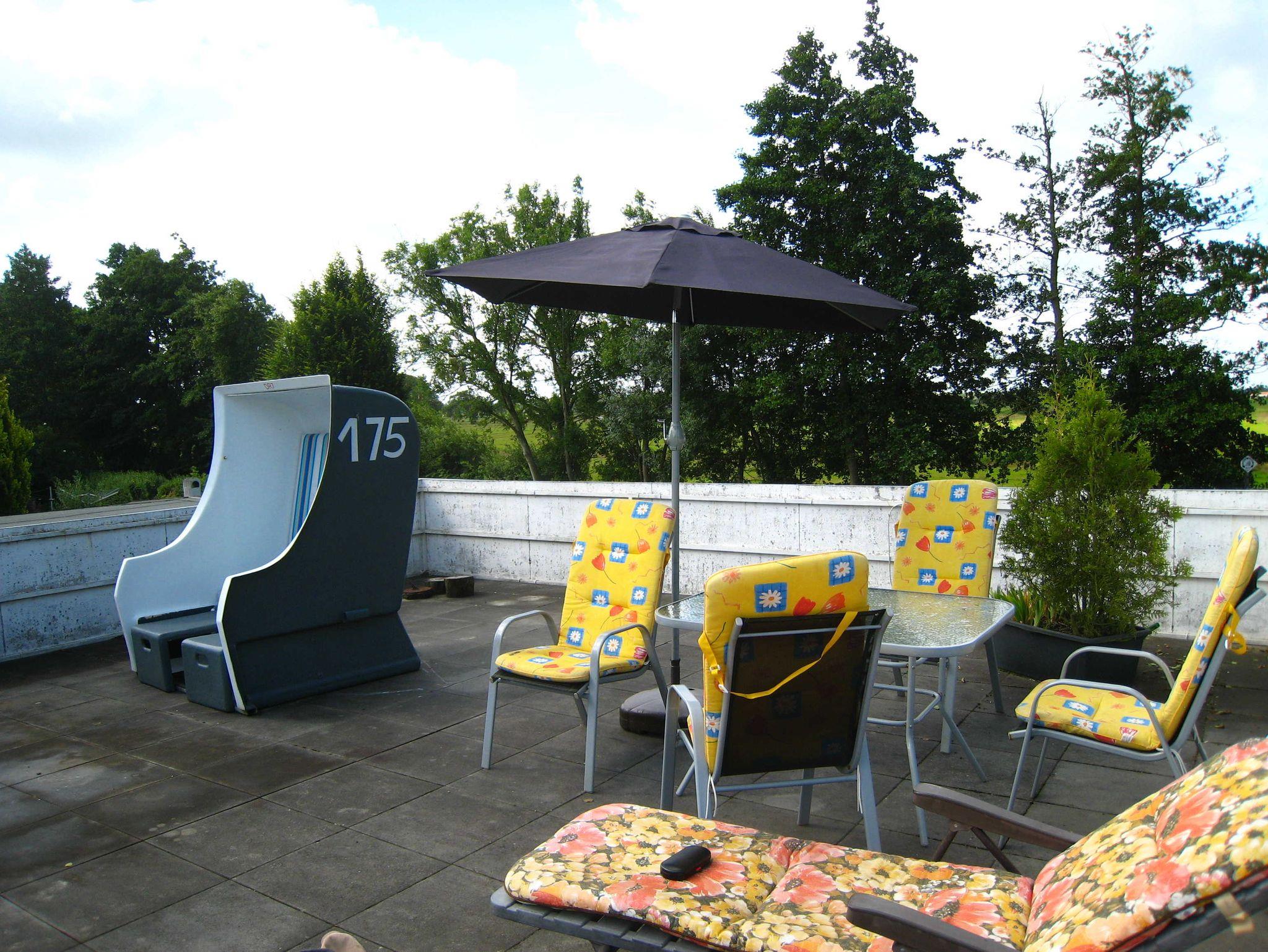 Die Ferienoberwohnung Nr. 03, Name Bensersiel, mit 70 qm Wohnfläche plus 50 qm Dachgarten (Südlage) ist bis zu 4 Personen geeignet. Die Wohnung besteht aus 2 großen Schlafzimmern, 1 Wohnzimmer, 1 Küche mit Einbauküche incl. Geschirrspüler und einer Dusche mit WC. Bei Anreise finden sie die Betten frischbezogen, auch sind je Person Handtücher vorhanden. Der Dachgarten ist mit Gartenmöbeln und einem Strandkorb ausgestattet.