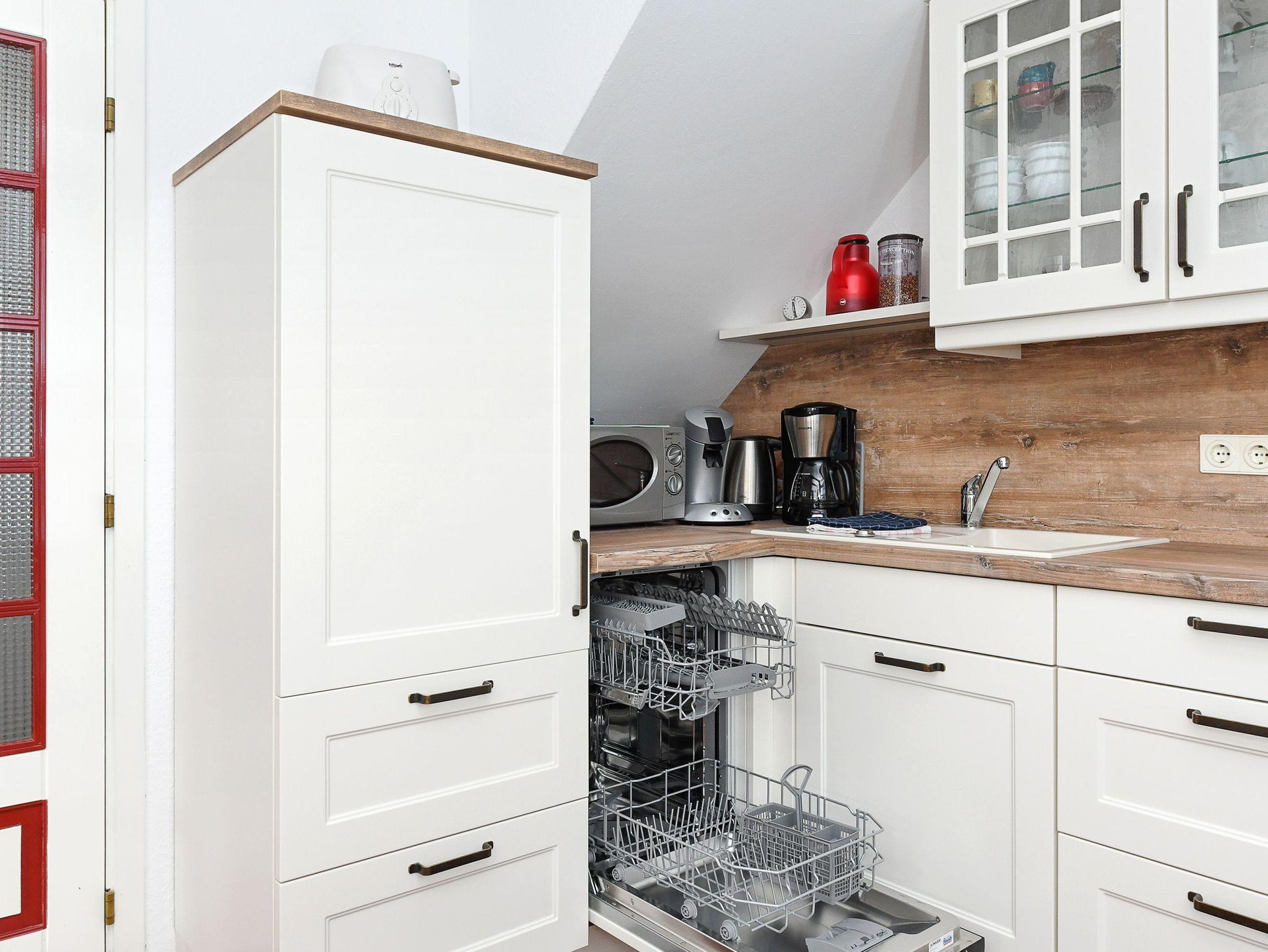 Die Ferienwohnungen sind geschmackvoll, hell und freundlich eingerichtet und technisch hochwertig ausgestattet. So gibt es zum Beispiel eine umfassend ausgestattete Küche und eine schöne Holzterrasse an der Wohnung „Kajüte“.