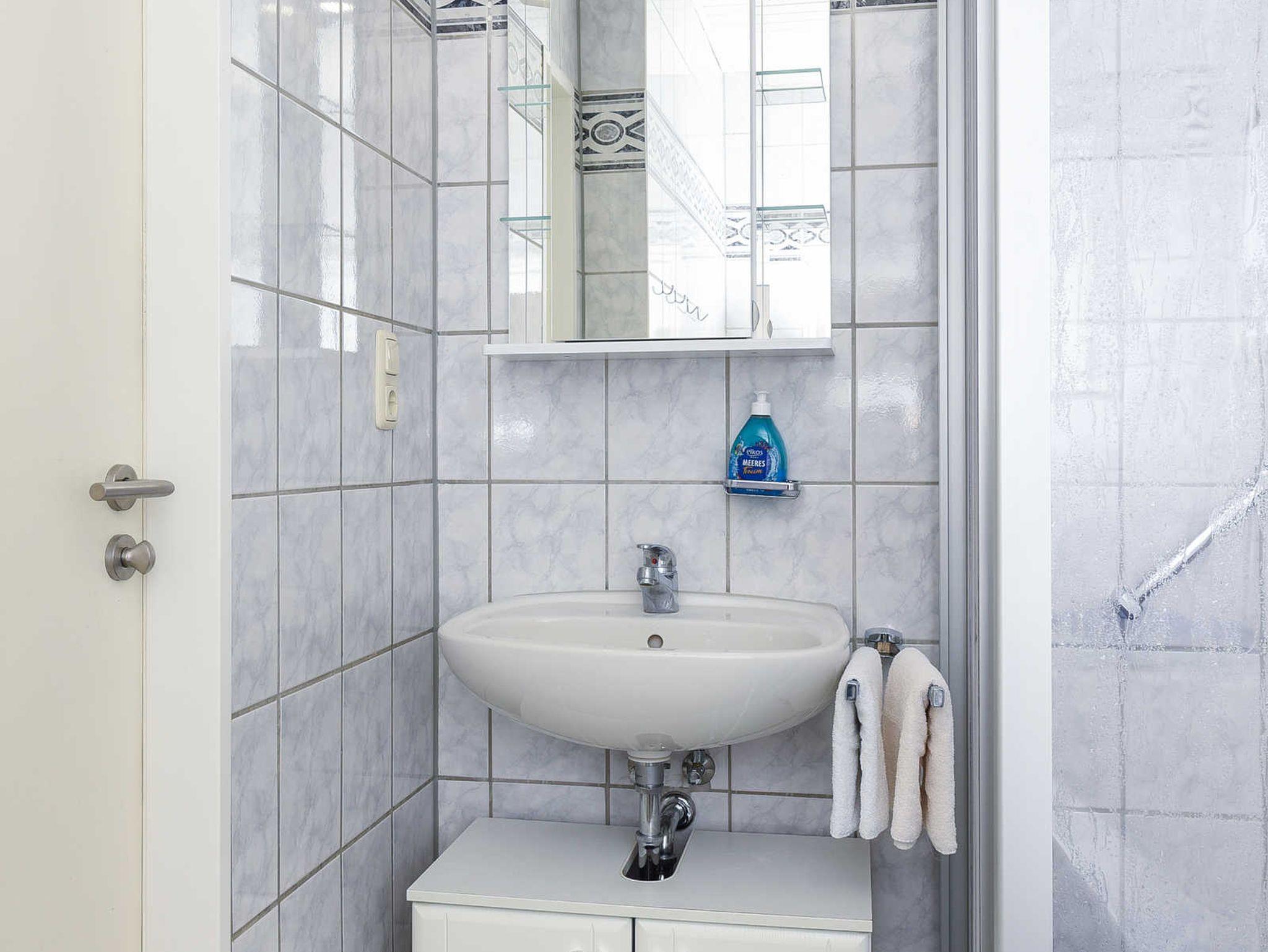 Badezimmer mit Dusche, Badewanne und Waschtisch