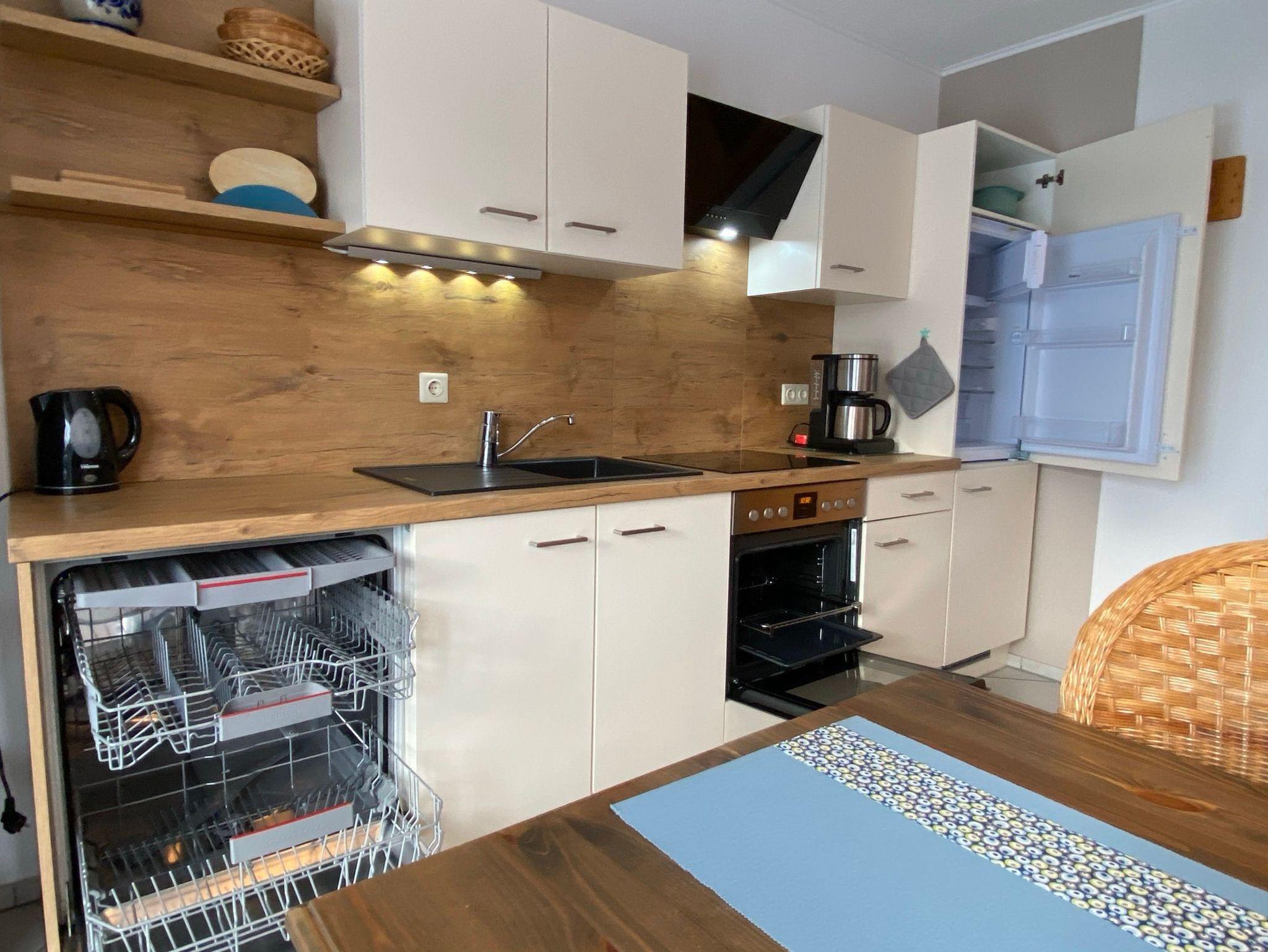 Geschirrspüler, Kühlschrank mit Gefrierfach, neuem Tageslicht-Bad mit