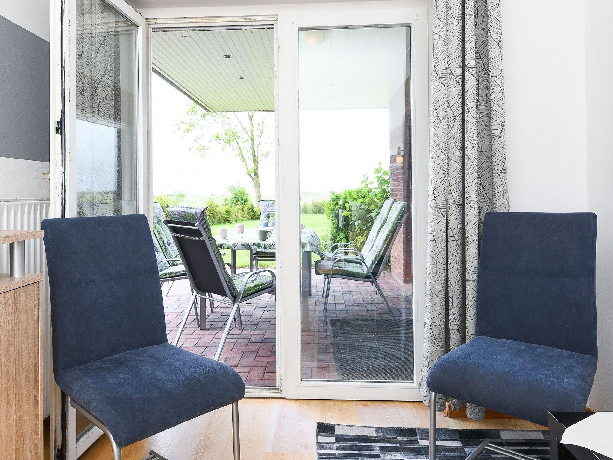 Die Ferienwohnung ist für Ihren Urlaub sehr gut ausgestattet. Aus der Wohnungen genießen Sie einen unverbauten Ausblick auf die ostfriesische Marsch und abends auf wunderschöne Sonnenuntergäng auf der großzügigen Terrasse.