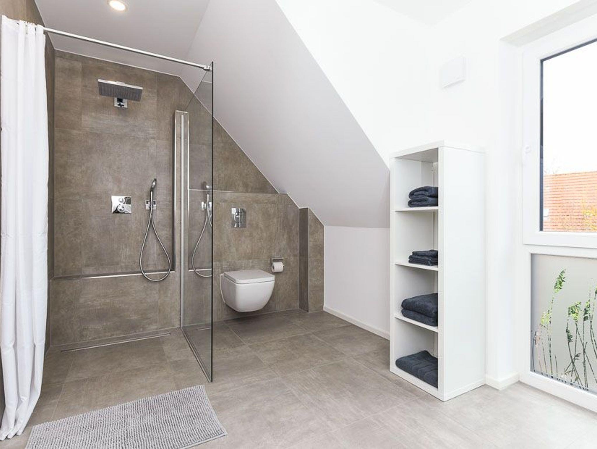 zweites Badezimmer mit Dusche, Waschtisch und WC