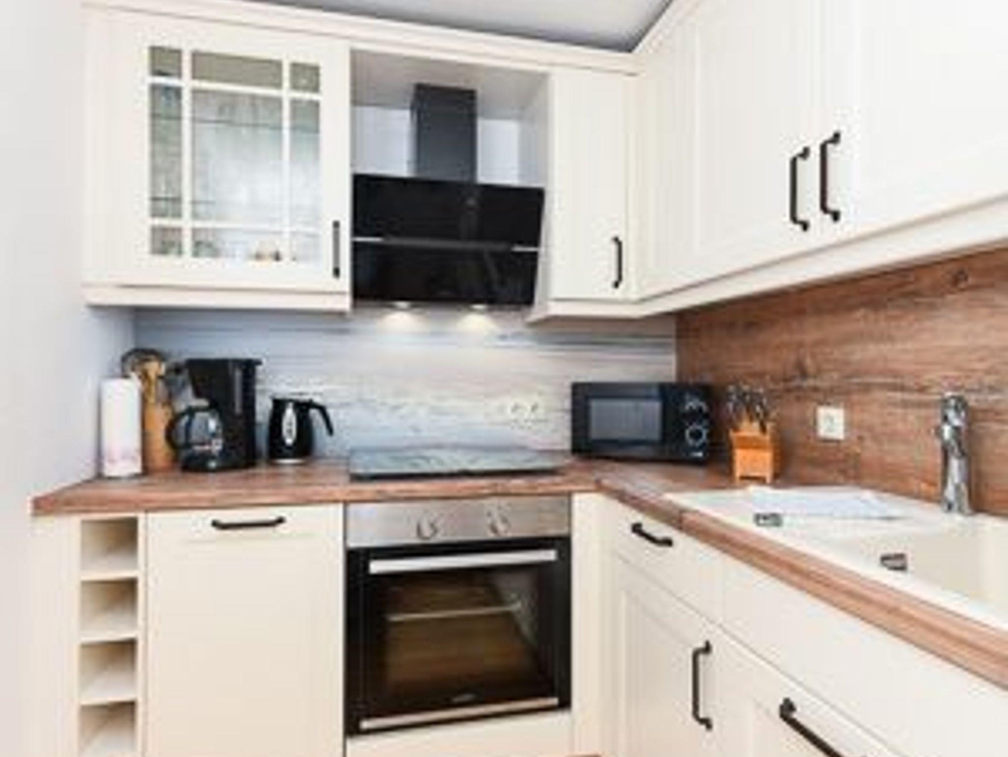 Die Ferienwohnungen sind geschmackvoll, hell und freundlich eingerichtet und technisch hochwertig ausgestattet. So gibt es zum Beispiel eine umfassend ausgestattete Küche und eine schöne Holzterrasse an der Wohnung „Kajüte“.