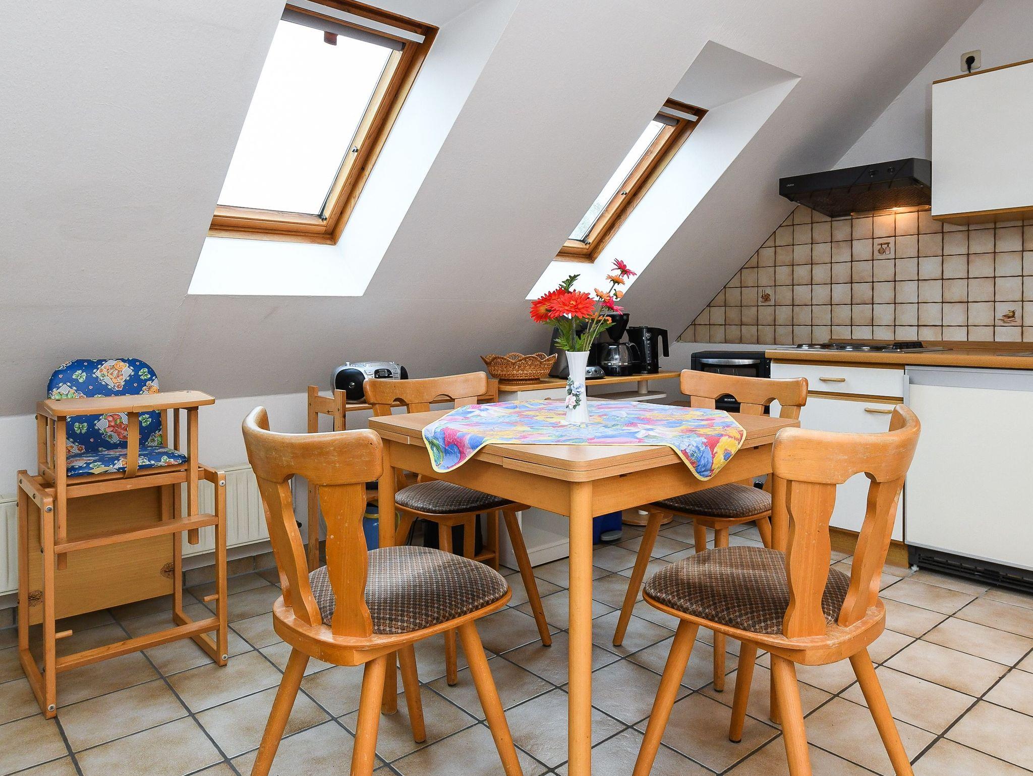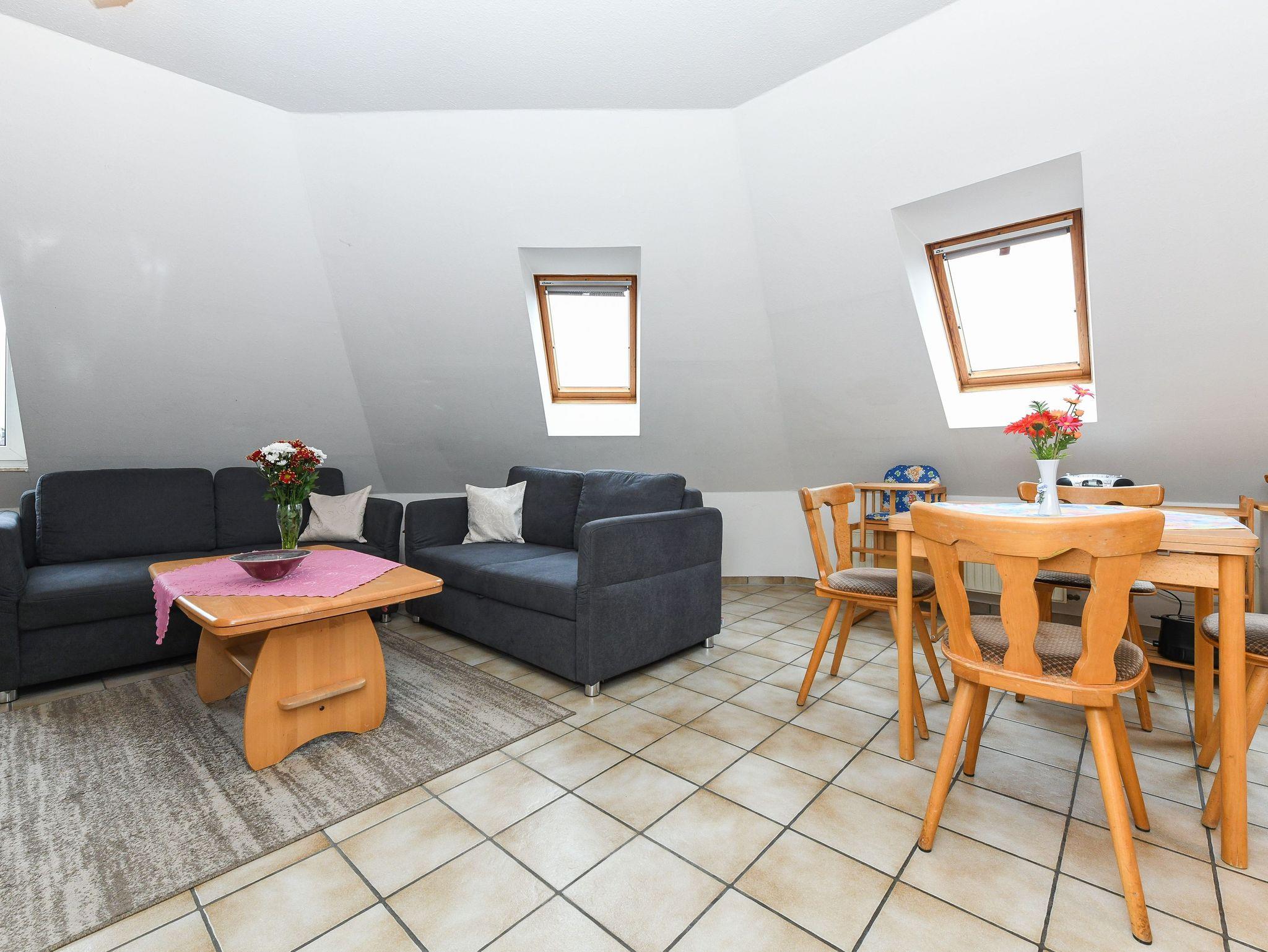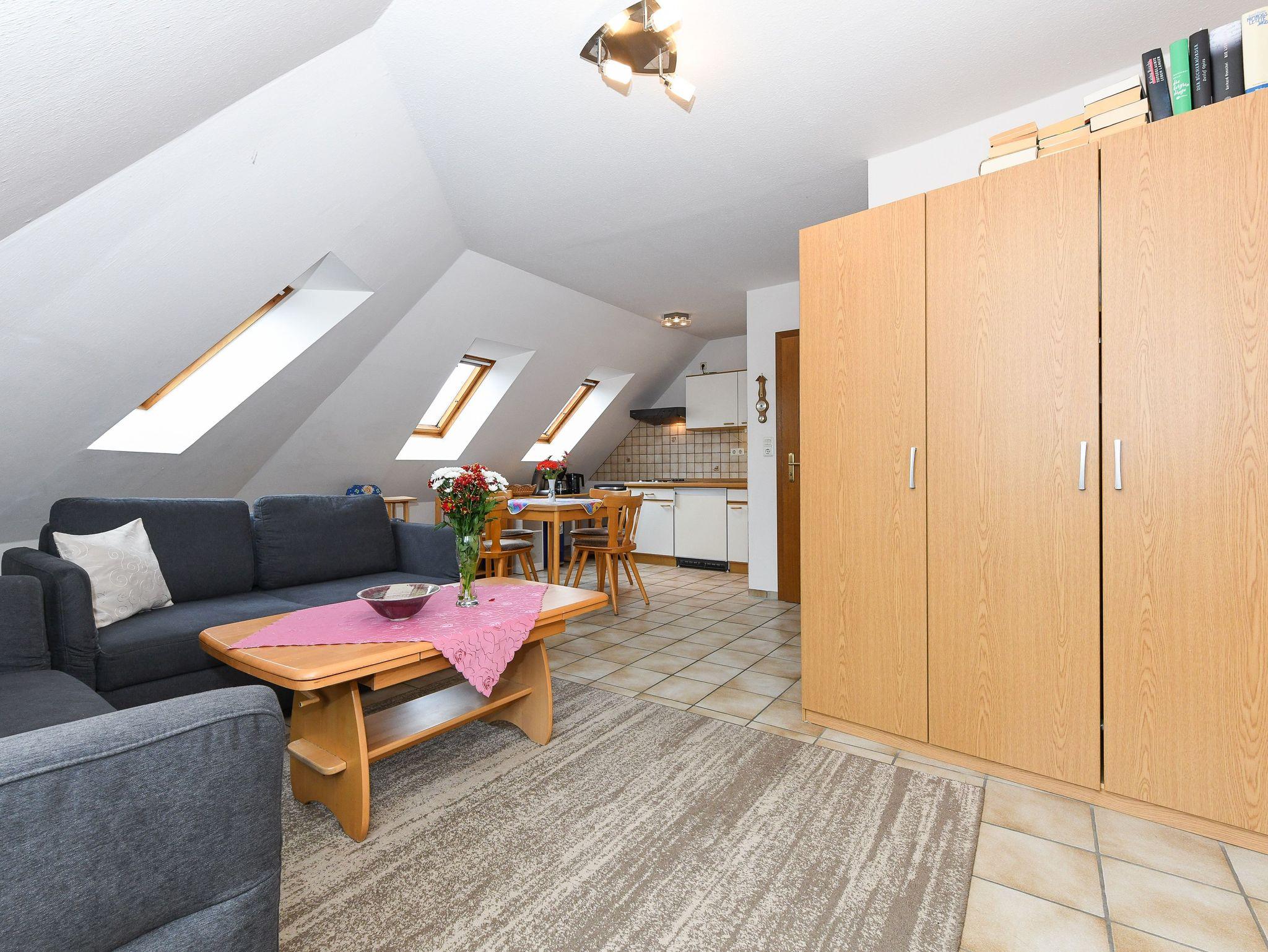 Größe ca. 40 Quadratmeter, mit integrierter Küche, Schlafzimmer, zweites separates Schlafzimmer, Badezimmer mit Dusche, Waschtisch und WC, Obergeschoss, ausschließlich für Nichtraucher, optimal für 2 bis 4 Personen und zusätzlich ein Kleinkind.