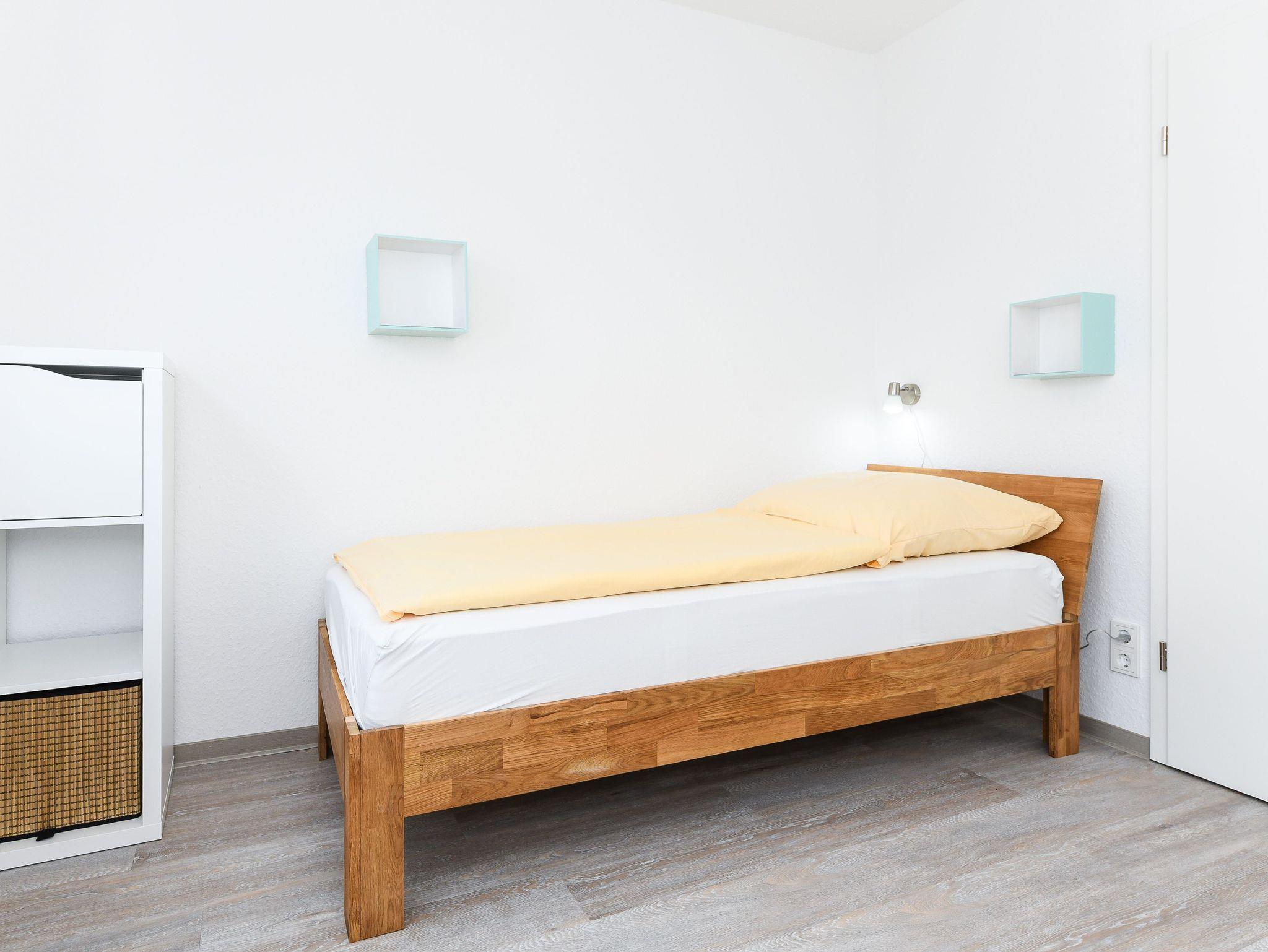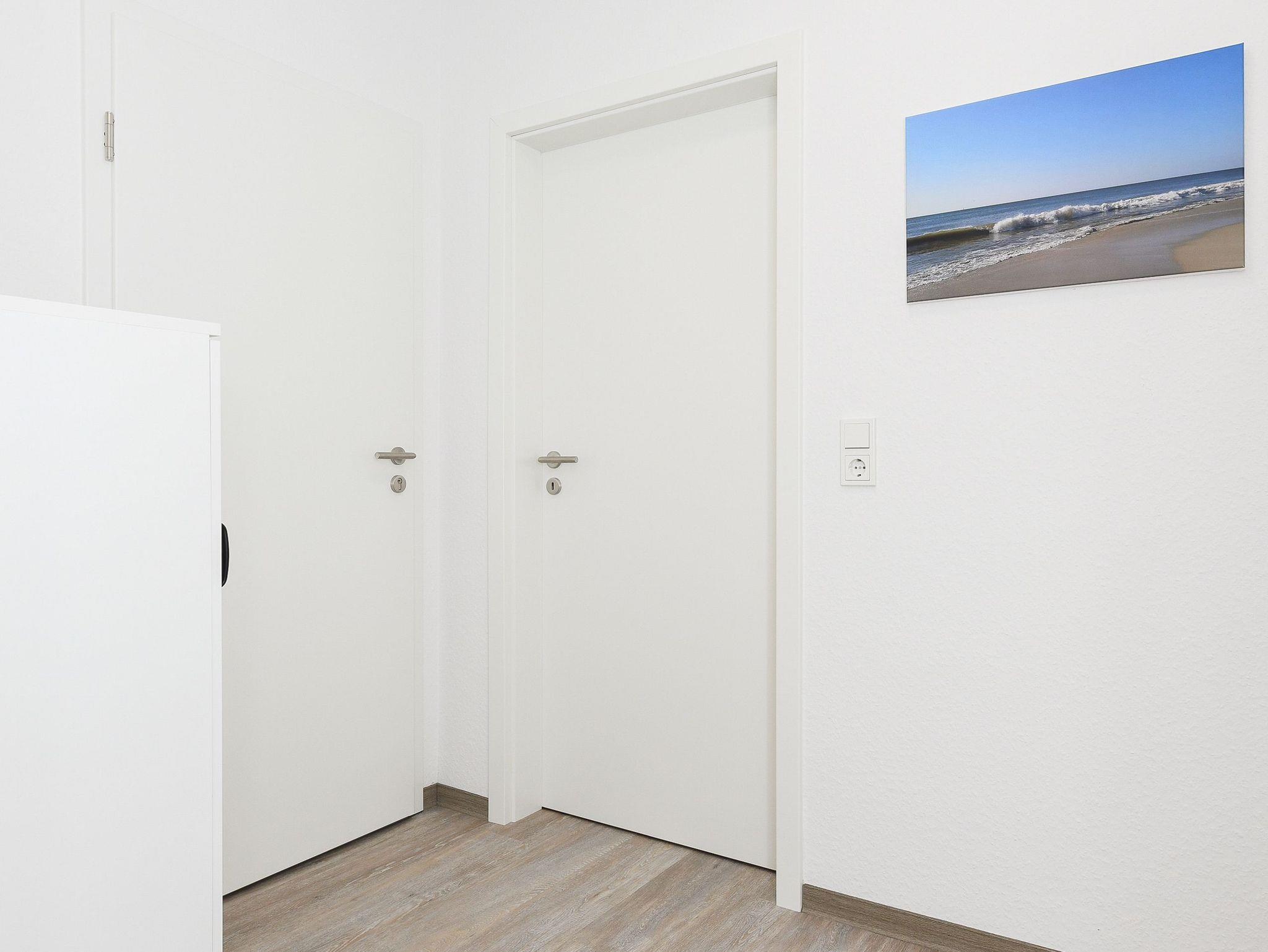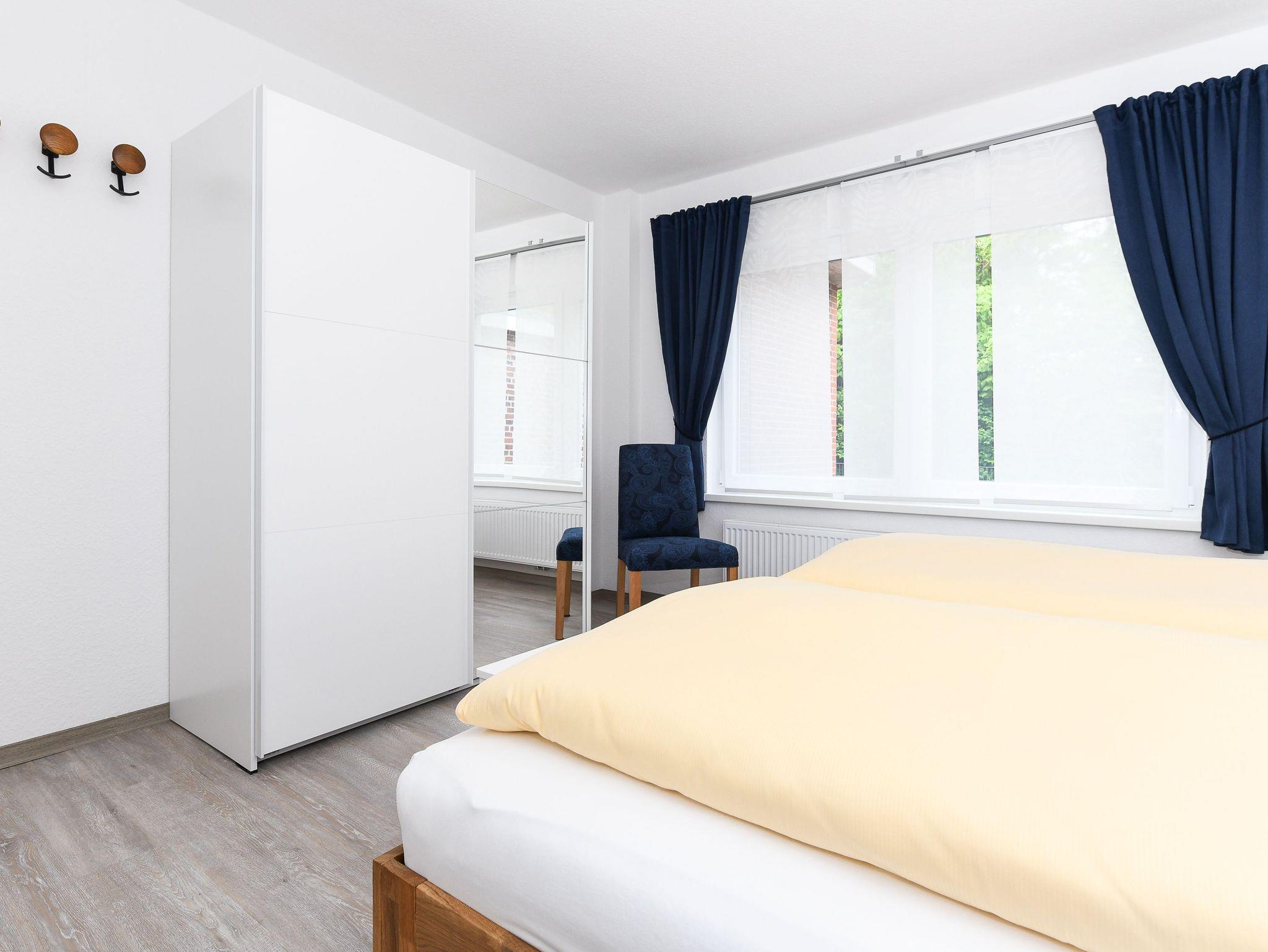 Die Erdgeschosswohnung (ca. 69 m²) hat eine Terrasse und bietet mit zwei Schlafzimmern (Eltern/Kinder) Platz für 4 Personen. Die Wohnung im Obergeschoss für 2 Personen (ca. 52 m²) hat einen sonnigen Balkon mit Blick auf den Park und den Deich. Der zweite Schlafraum ist mit einem separaten Zugang und liegt direkt neben der Wohnung.