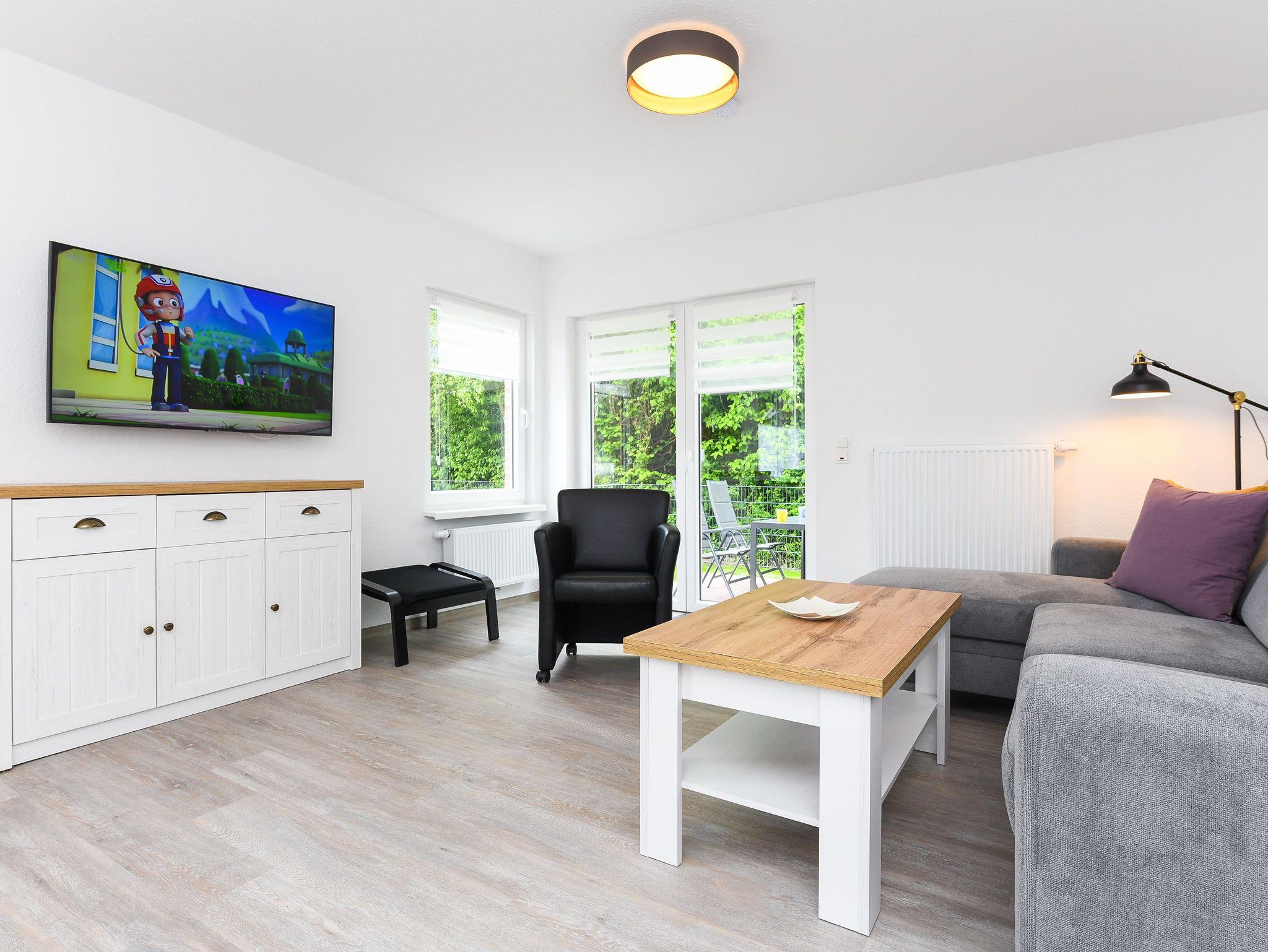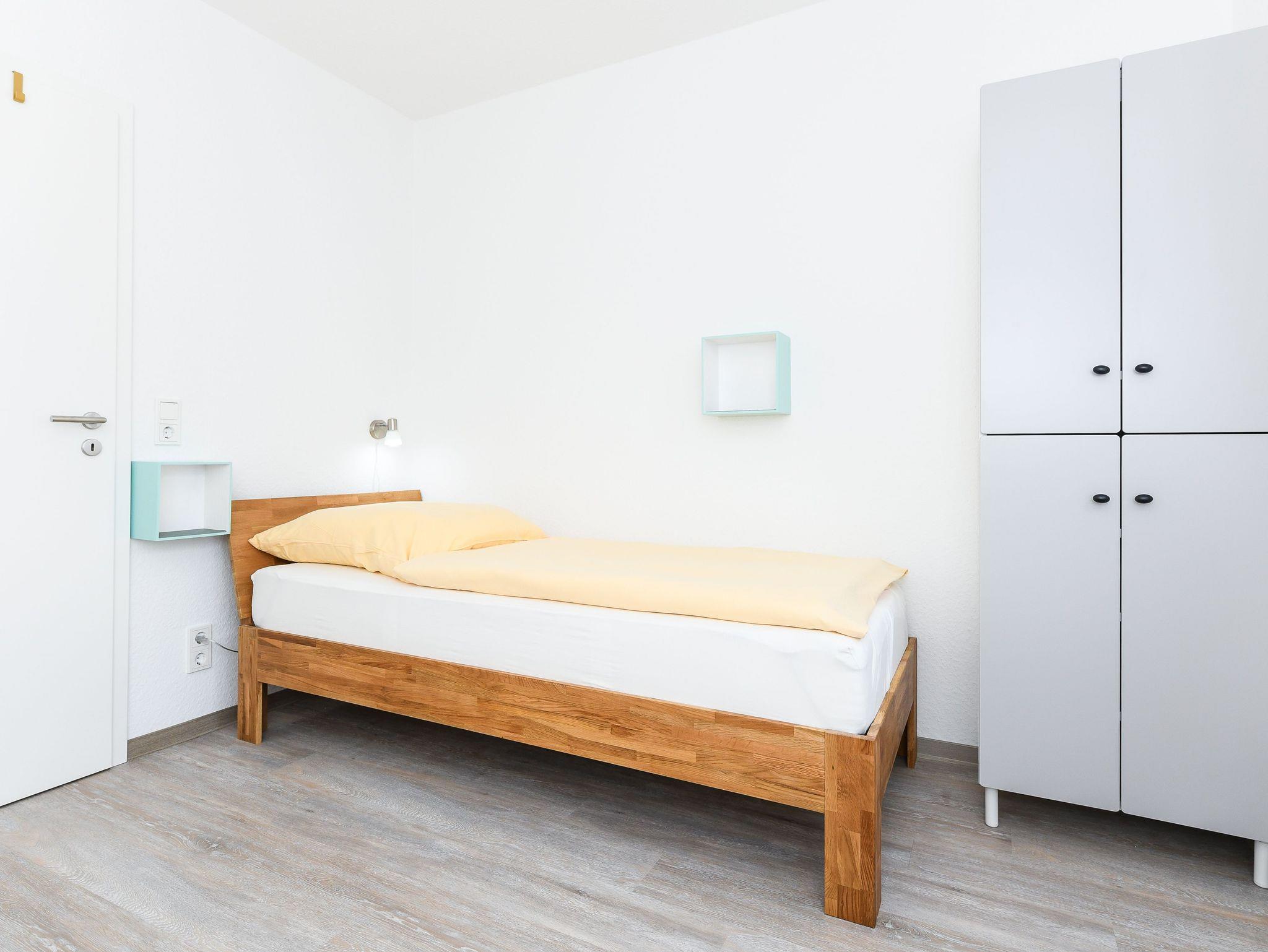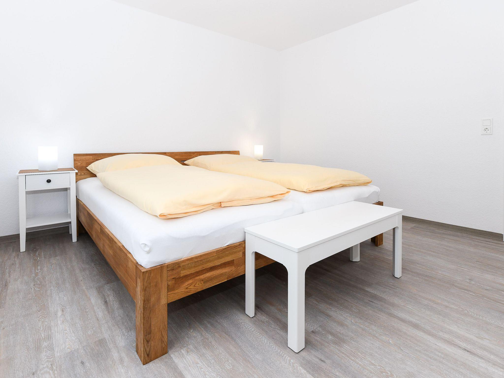 Die Erdgeschosswohnung (ca. 69 m²) hat eine Terrasse und bietet mit zwei Schlafzimmern (Eltern/Kinder) Platz für 4 Personen. Die Wohnung im Obergeschoss für 2 Personen (ca. 52 m²) hat einen sonnigen Balkon mit Blick auf den Park und den Deich. Der zweite Schlafraum ist mit einem separaten Zugang und liegt direkt neben der Wohnung.