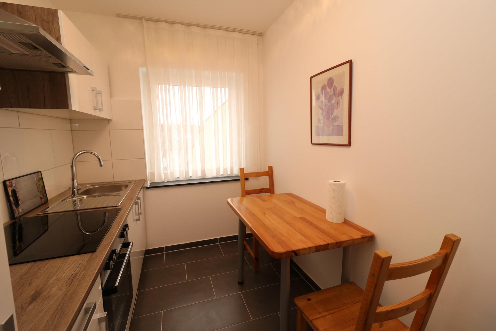 Denne indbydende ferielejlighed i Essen er skræddersyet til 3 gæster, hvilket gør den ideel til messegæster eller byopdagere. Hjemmet har et smukt dekoreret interiør, et komfortabelt soveværelse og en indbydende stue med tv, spisebord og loungesæt - perfekt til at slappe af efter en dag ude. Træd ind på den private terrasse for at nyde måltider eller drinks i det fri. Det veludstyrede køkken omfatter komfur, kaffemaskine, ovn, opvaskemaskine og køleskab, så gæsterne nemt kan tilberede lækre måltider. Essentials såsom butikker og restauranter ligger kun 200 m væk, mens Essen-messen ligger bekvemt 5 km fra lejligheden. Byens centrum er også i nærheden, og byder på muligheder for shopping, restauranter og sightseeing. En hyggelig 2-værelses lejlighed med balkon, køkken og WiFi - perfekt til et behageligt ophold i Essen.