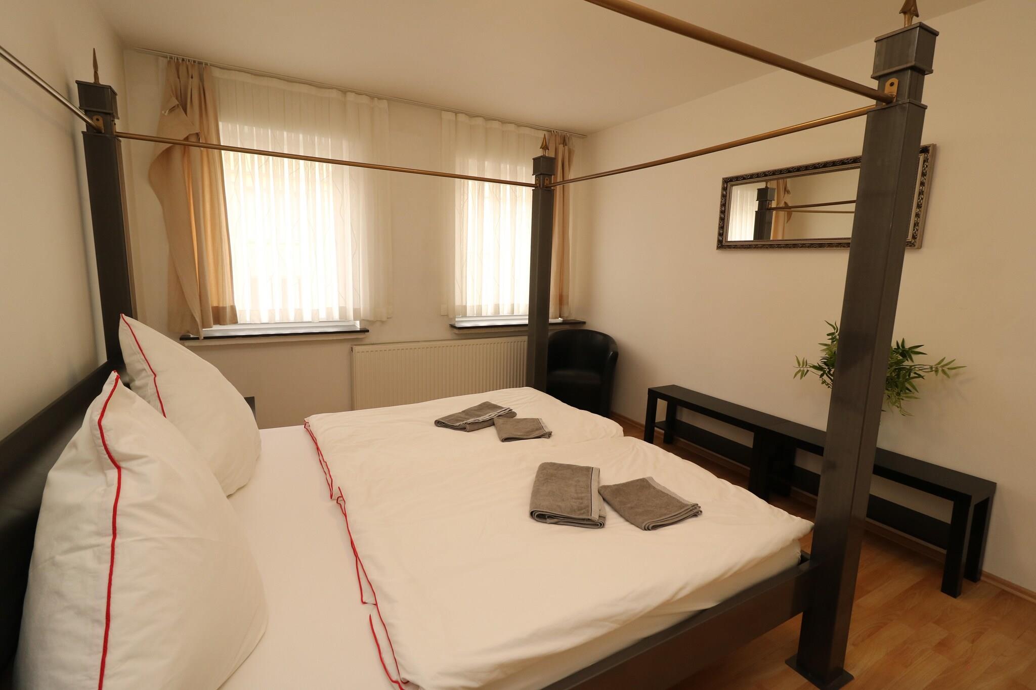 Denne velindrettede lejlighed på 2. sal i Essens Frohnhausen-distrikt er ideel til 3 gæster, der søger komfort og bekvemmelighed. Layoutet omfatter et opholds-/soveområde med to enkeltsenge, et tv og et siddehjørne samt et andet soveværelse med yderligere to enkeltsenge. Badeværelset har bruser, håndvask og toilet, mens tekøkkenet er udstyret med kaffemaskine og elkedel til let madlavning. Gæsterne kan slappe af på balkonen, nyde måltider på terrassen med havemøbler eller slappe af i loungesættet. Yderligere faciliteter omfatter en tørretumbler, vaskemaskine mod betaling og parkering på stedet. Essentials såsom butikker og restauranter ligger kun 200 m væk, og byens centrum og Essen HBF ligger kun 3 km fra ejendommen. Messe Essen er en kort 5 km kørsel, med nem adgang til Düsseldorf (40 km) og Dortmund (50 km) lufthavne. Denne lejlighed blander fredeligt liv med tilgængelighed i byen.
