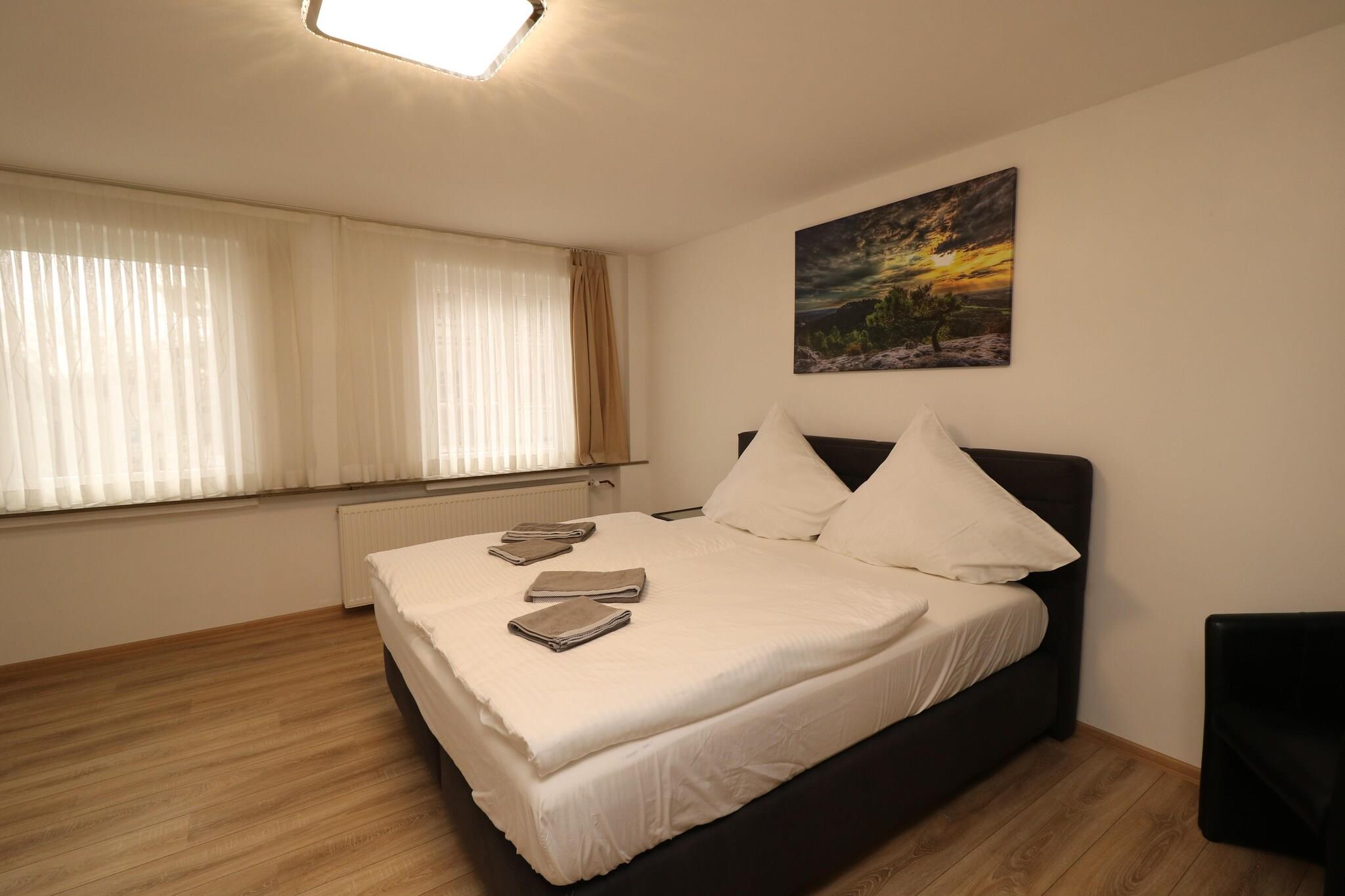 Denne indbydende lejlighed i stueetagen i Essens Frohnhausen-distrikt er perfekt til 2-3 gæster, der søger et fredeligt tilflugtssted i byen. Opholds-/soveområdet har dobbeltseng, tv, spisebord og radio, mens tekøkkenet har kaffemaskine og elkedel til nem tilberedning af måltider. Badeværelset er udstyret med bruser, toilet, håndvask og hårtørrer, hvilket sikrer et behageligt ophold. Gæsterne kan nyde både en balkon og en fælles terrasse med havemøbler og et loungesæt, som er ideelt til at slappe af udendørs. Yderligere faciliteter omfatter parkering på stedet og adgang til fælles spiseplads og siddepladser. Essentials såsom butikker og restauranter ligger kun 200 m væk, mens byens centrum og Essen HBF kun ligger 3 km fra ejendommen. Messe Essen er en kort 5 km kørsel, og både Düsseldorf (40 km) og Dortmund (50 km) lufthavne er let tilgængelige.