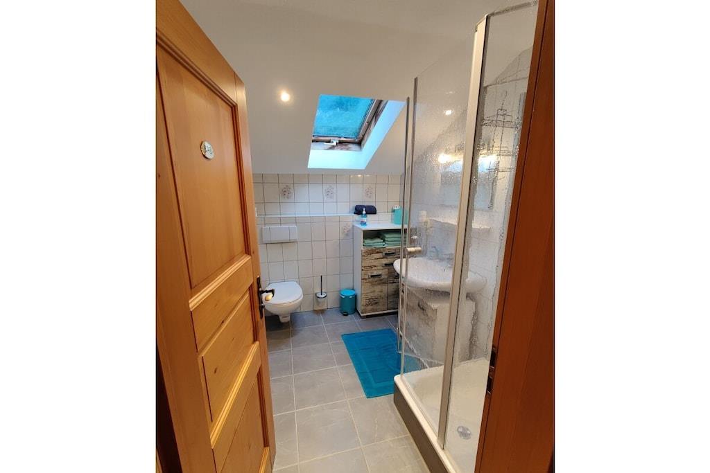 På 1. etage: (åbent køkken(Fjernsyn, komfur, ovn, køleskab), soveværelse(, dobbeltseng), badeværelse(, toilet, bruser, håndvask)) , , , Internetadgang, balkon(, havemøbler), varme, parkering
