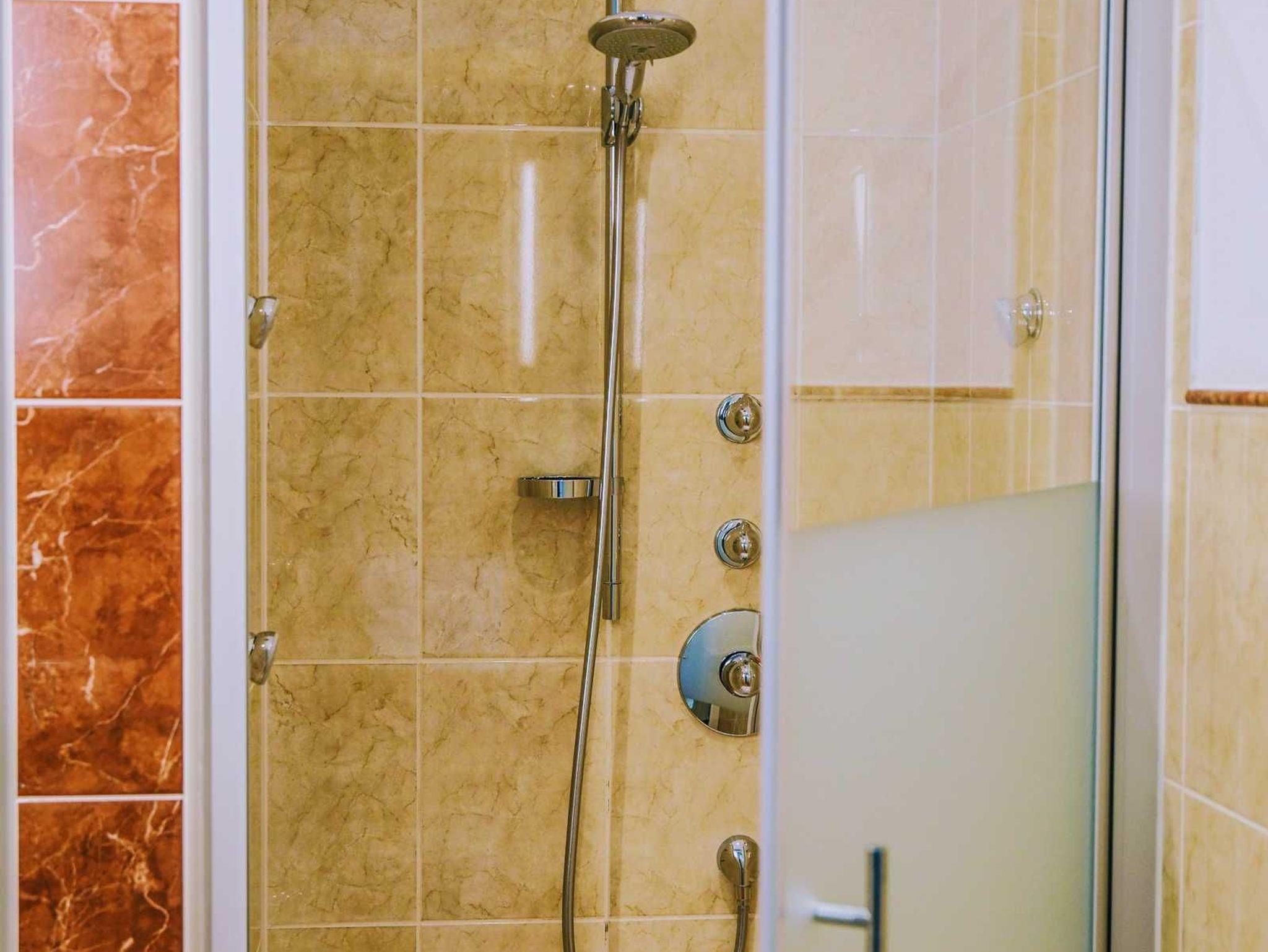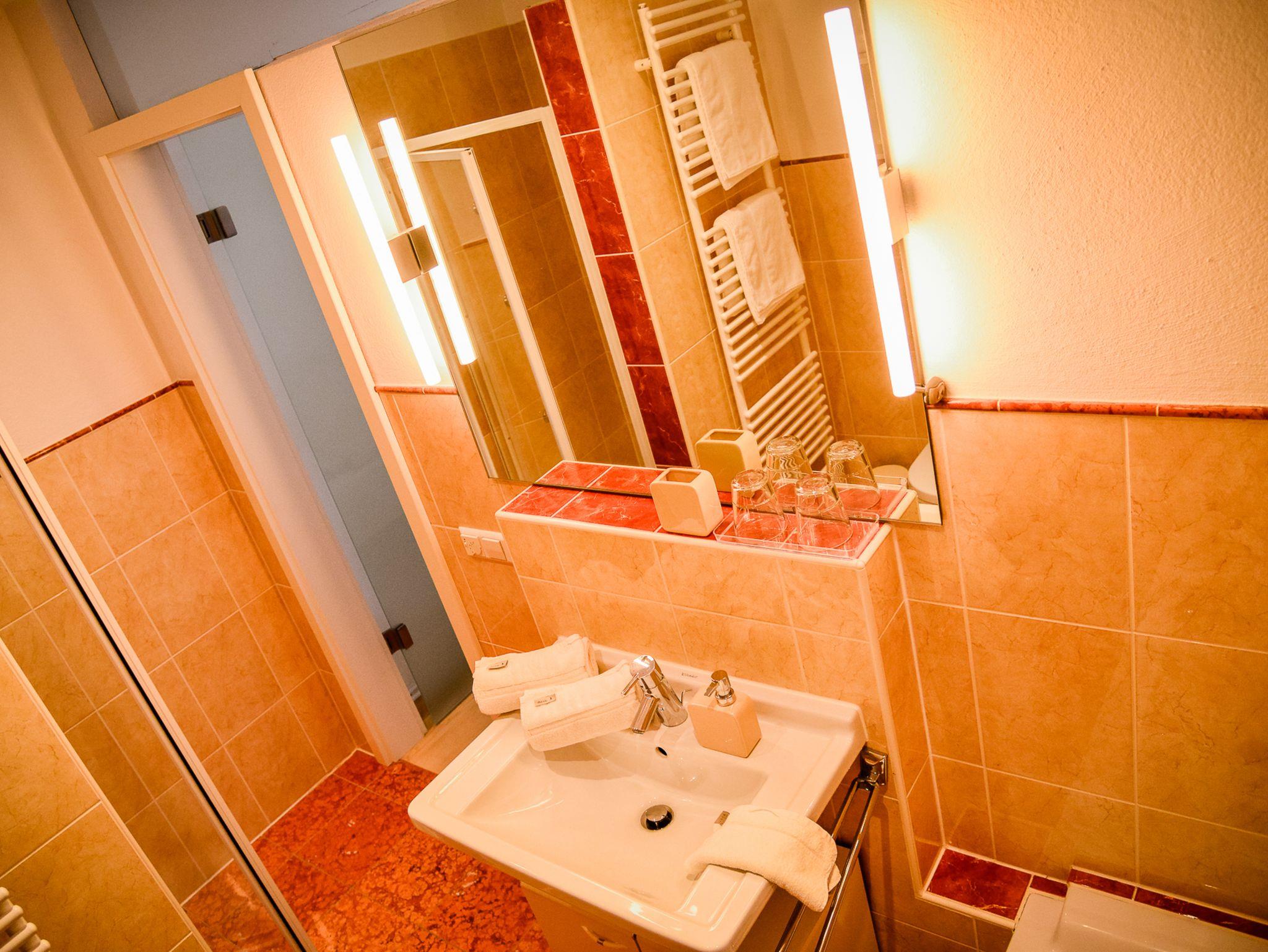 Luxuriöses Bad en Suite mit Badewanne, WC und toller Massagedusche.