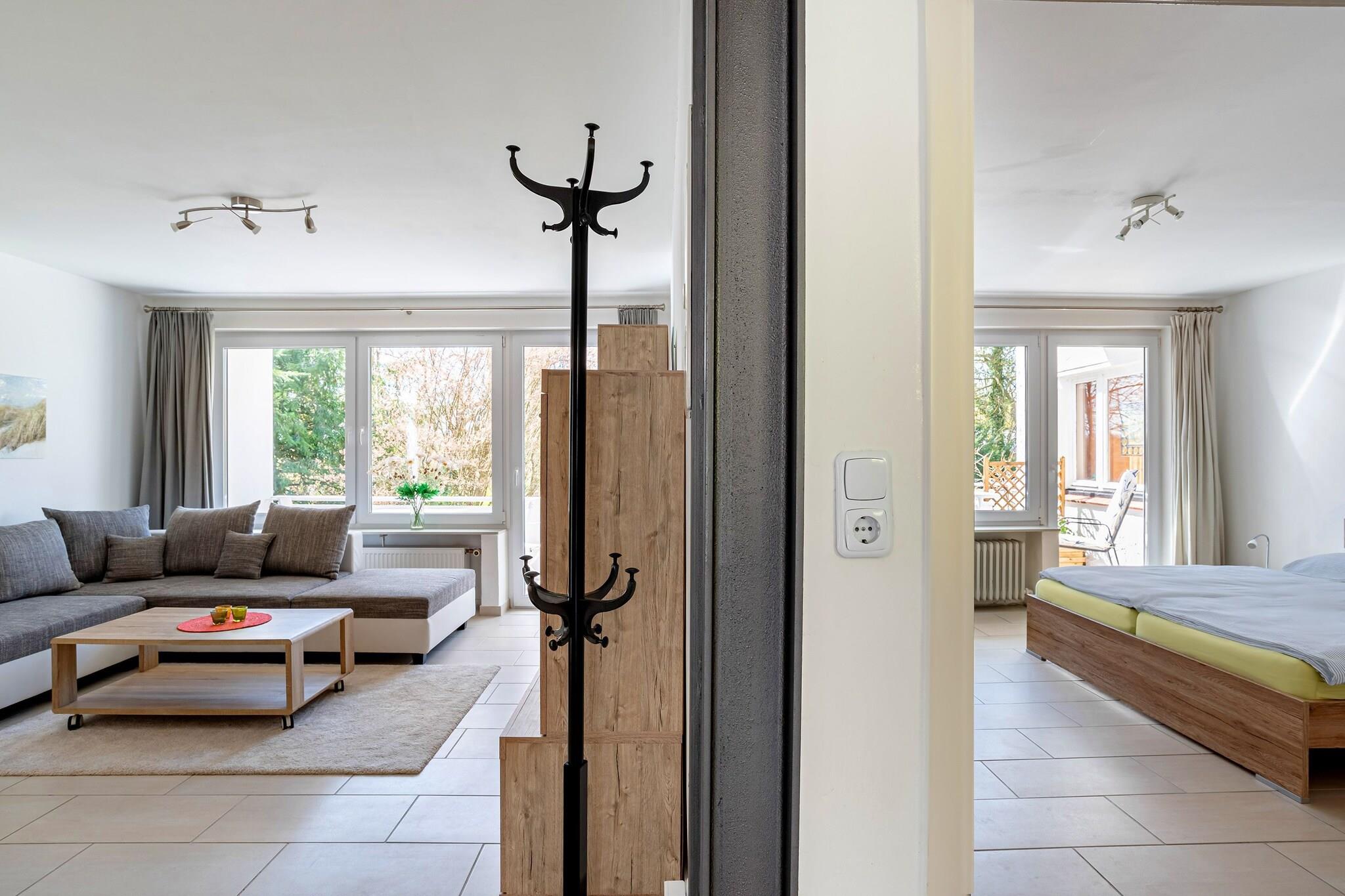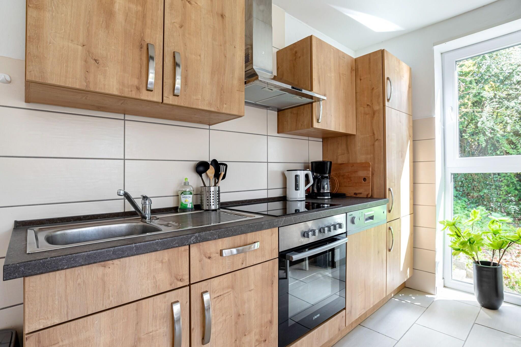 Kun 50 meter fra søen og fiskevandene tilbyder denne lejlighed i stueetagen i Eutin et fredeligt tilflugtssted med nem adgang til naturen og byens faciliteter. Den hyggelige stue omfatter en enkelt sovesofa, tv, spisebord og opholdsområde, mens det åbne køkken er fuldt udstyret med kaffemaskine, ovn, opvaskemaskine og køleskab - ideel til afslappet selvforplejning. Soveværelset har en komfortabel dobbeltseng, og badeværelset har bruser, toilet og håndvask til hverdagens bekvemmelighed. Træd ud på den private balkon eller nyd havemøblerne udendørs, perfekt til morgenkaffen eller aftenens afslapning. Parkering på stedet gør dit ophold lettere. Med byens centrum, restauranter, togstation og almindelige forsyninger kun 1 km væk, og Østersøstranden kan nås inden for 16 km, denne beliggenhed blander ro ved søen med praktisk adgang.
